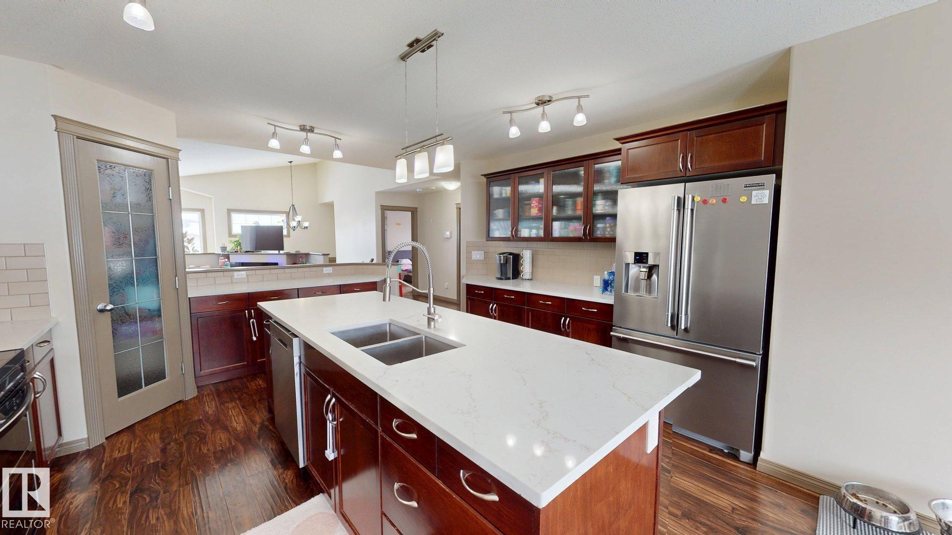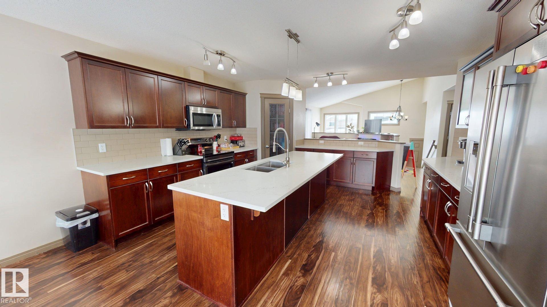Well maintained bi-level in the highly sought-after neighbourhood of Aspenview, offering the perfect blend of style, comfort, and relaxation. From the moment you step inside, you?re welcomed by a bright, expansive entryway and staircase that sets the tone for the home. Oversized windows bathe the interior in natural light, enhancing the airy, modern feel throughout. The kitchen is designed to impress, showcasing stainless steel appliances, a massive statement island, abundant cabinetry, a walk-in pantry, new quartz countertops, and an updated faucet. The main level features three spacious bedrooms and two full bathrooms, including a serene primary retreat complete with a private four-piece ensuite. The fully developed basement offers a generous family room anchored by a cozy gas fireplace, creating an inviting space for relaxing or hosting guests. Two additional bedrooms, four-piece bathroom, and a utility room with a newer furnace complete the basement. Enjoy year round comfort with central air as well!