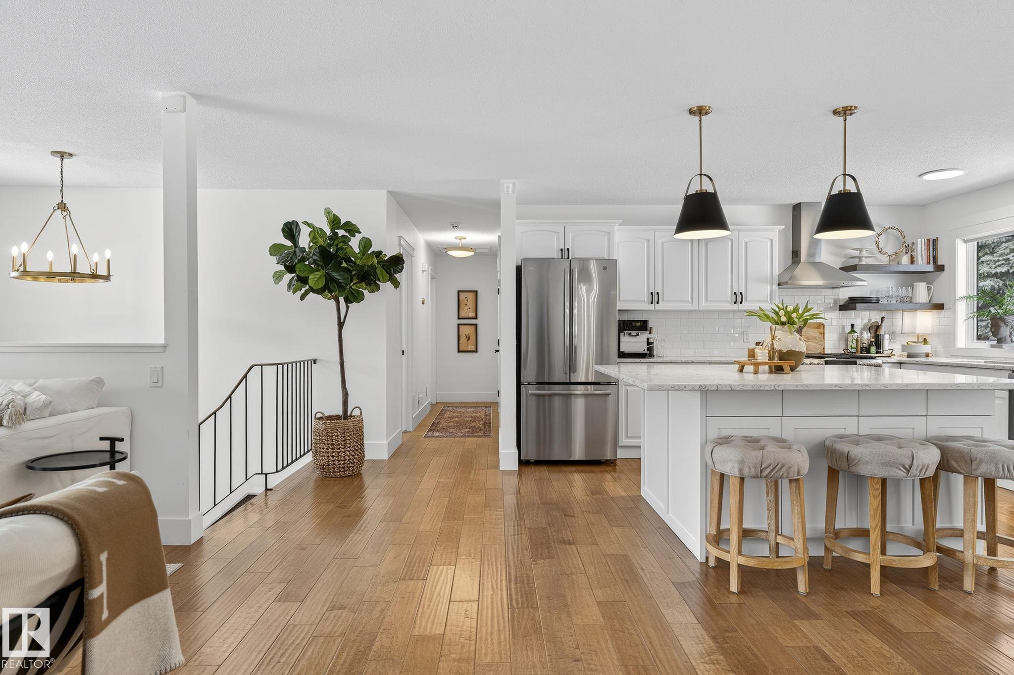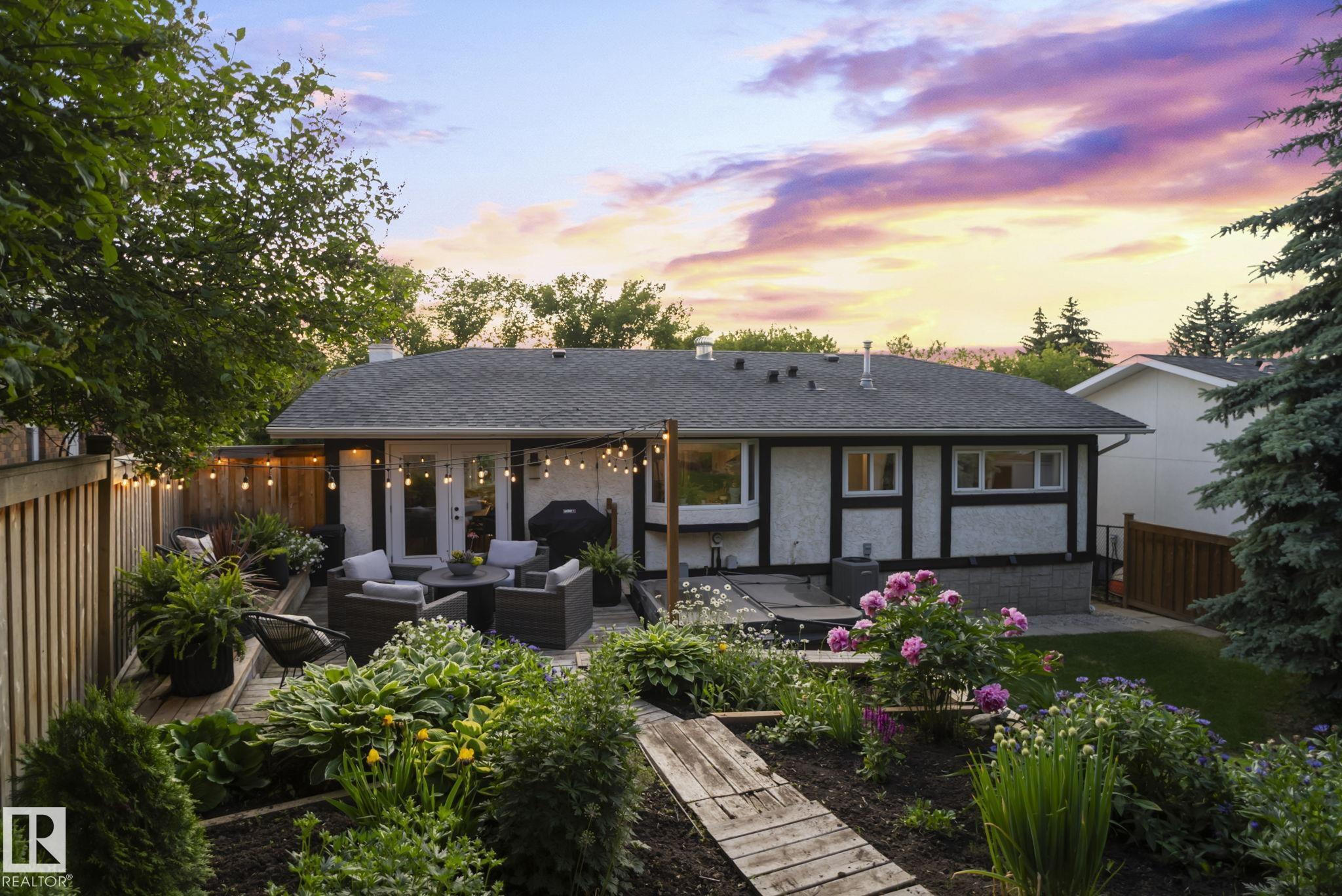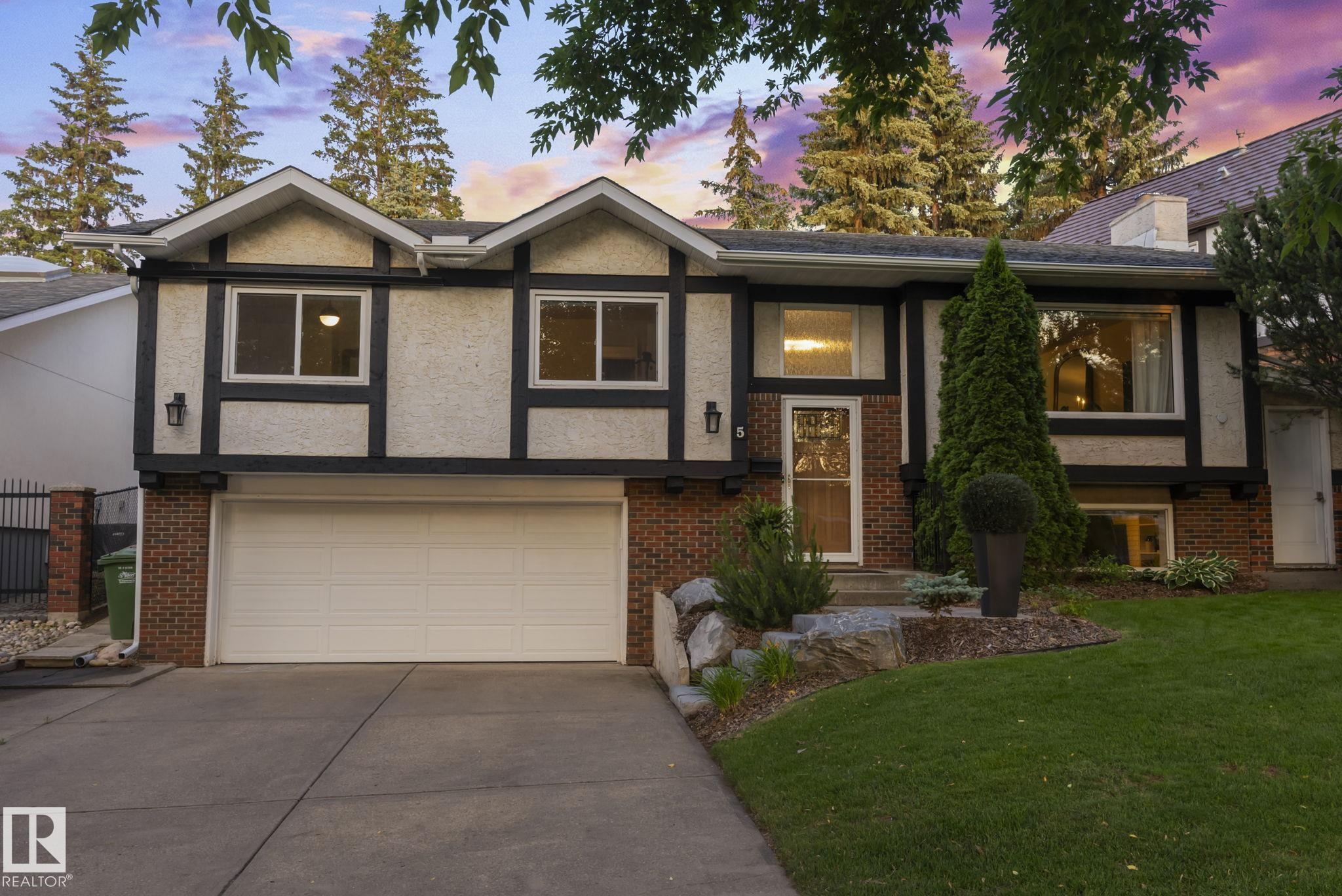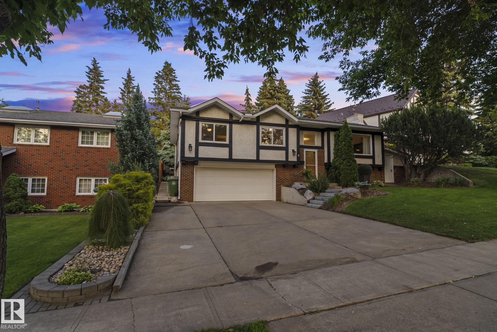 Set on a quiet, tree-lined street in the desirable Gardens neighbourhood of St. Albert, this meticulously renovated bi-level offers 4 bedrooms, 2.1 bathrooms, and 1,402 sq ft of thoughtfully designed living space, complete with a heated oversized double attached garage w/ epoxy flooring. The sun-filled main floor features an open living and dining area, highlighted by rich hardwood flooring & refined contemporary finishes. The fully renovated kitchen showcases quartz countertops, stainless steel appliances, a central island, & a charming bay window overlooking the private backyard. The finished lower level offers additional living space with a bright family room centered around an electric fireplace, fourth bedroom, laundry, and convenient 2-piece bath?perfect for families or guests. Enjoy the beautifully landscaped backyard complete with a hot tub, ideal for entertaining or relaxing. New furnace/AC (2024), HWT & shingles (2020), newer windows. The perfect family home in the desirable Gardens community.