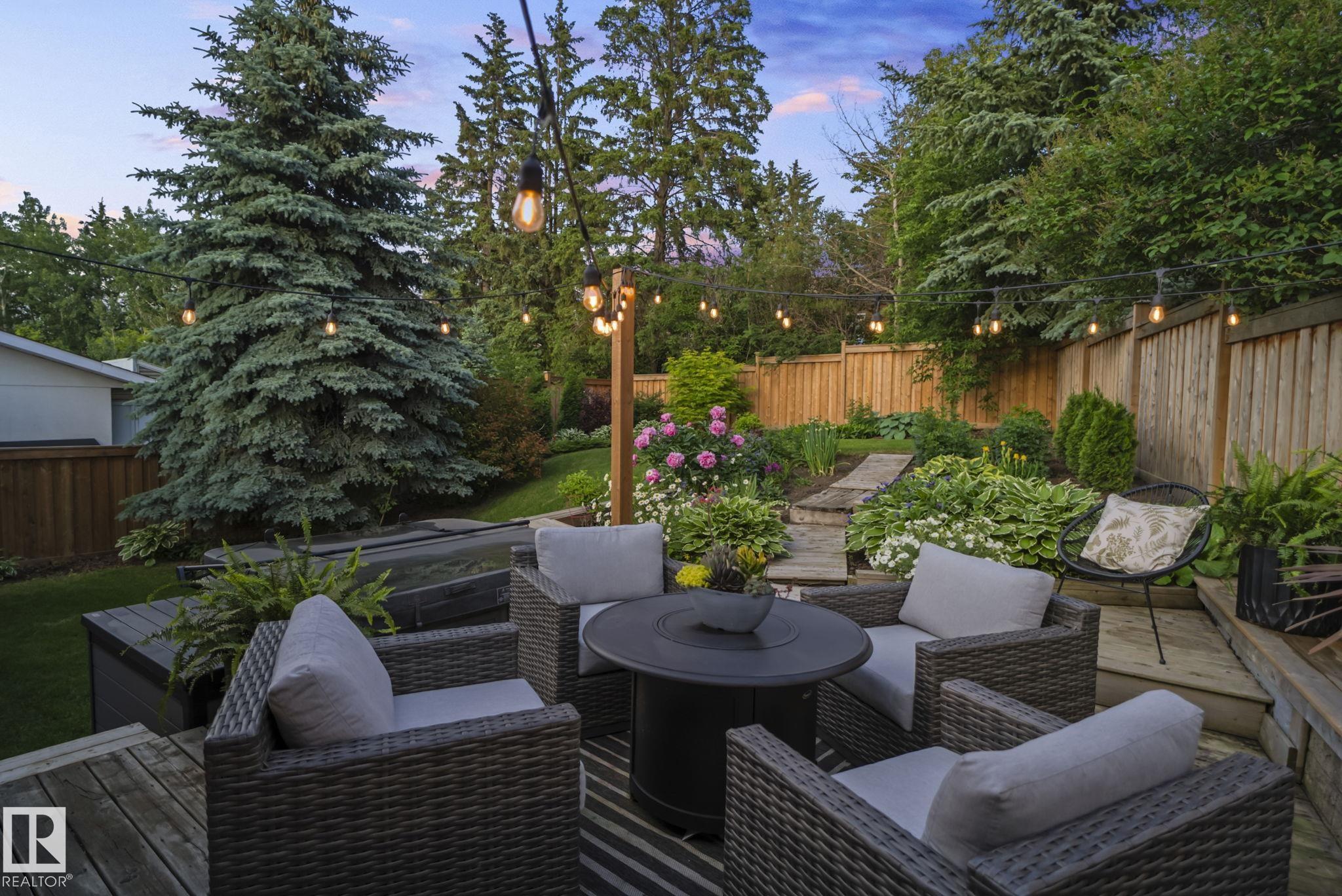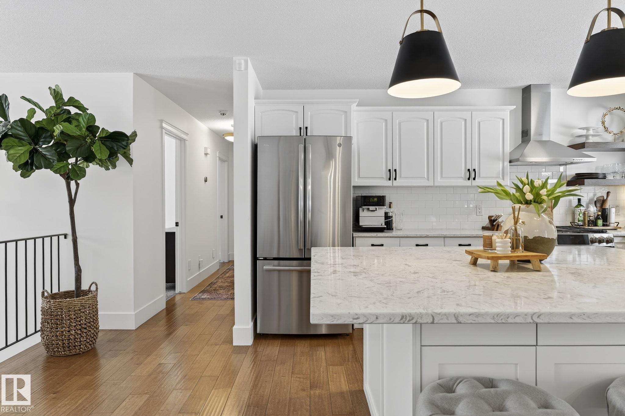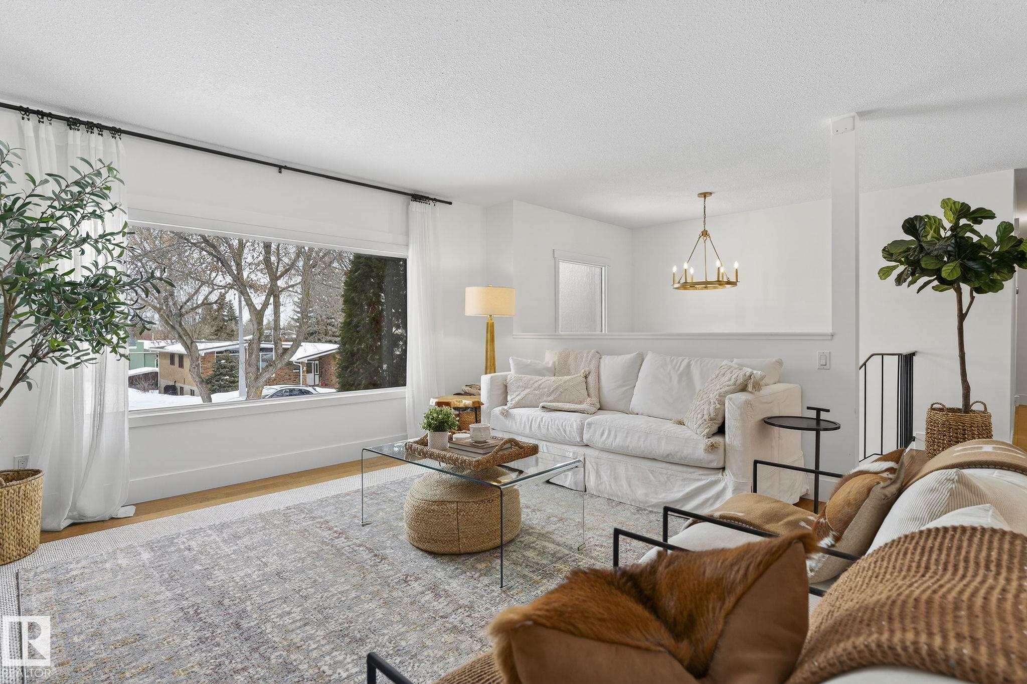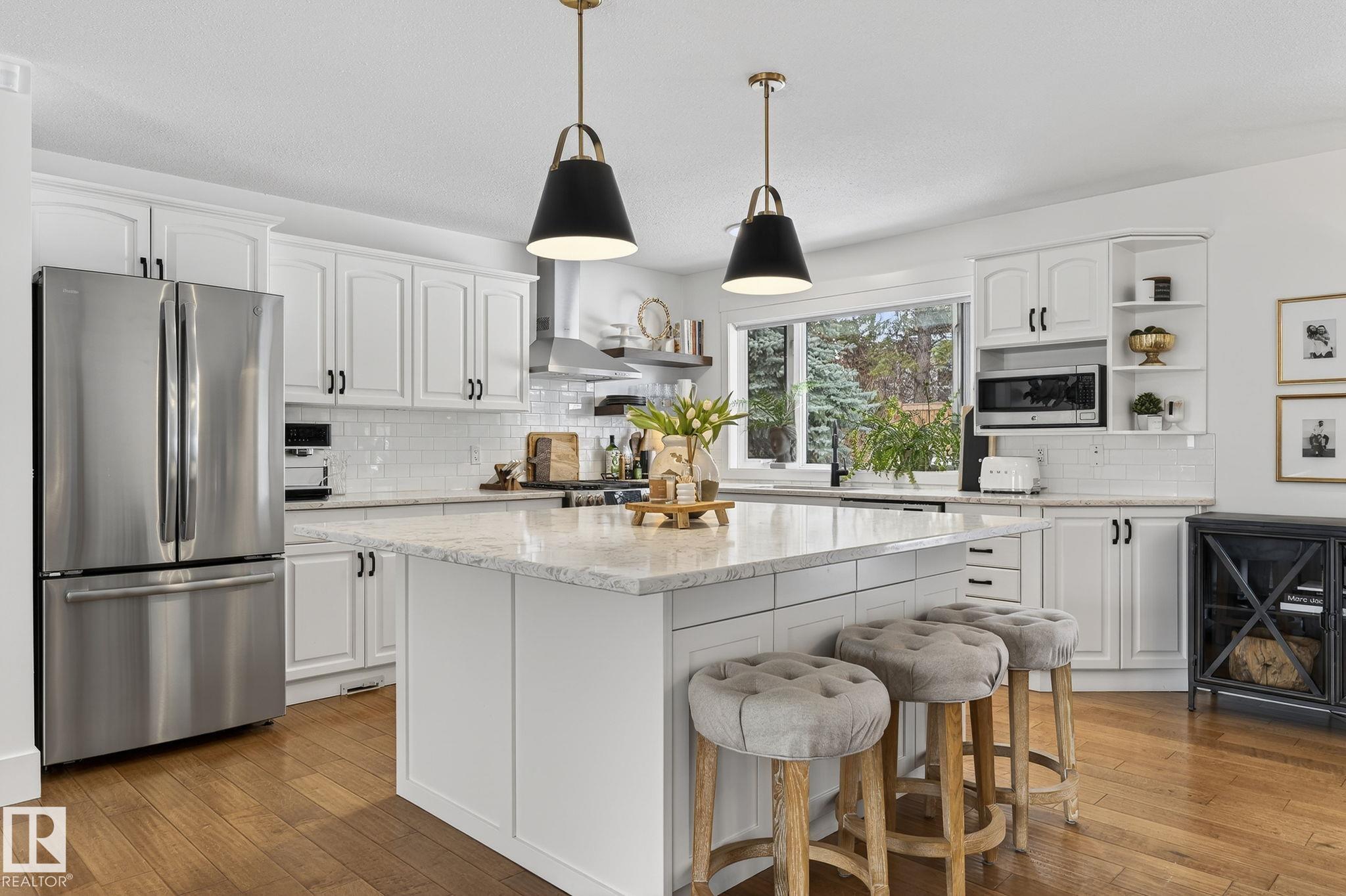 Set on a quiet, tree-lined street in the desirable Gardens neighbourhood of St. Albert, this meticulously renovated bi-level offers 4 bedrooms, 2.1 bathrooms, and 1,402 sq ft of thoughtfully designed living space, complete with a heated oversized double attached garage w/ epoxy flooring. The sun-filled main floor features an open living and dining area, highlighted by rich hardwood flooring & refined contemporary finishes. The fully renovated kitchen showcases quartz countertops, stainless steel appliances, a central island, & a charming bay window overlooking the private backyard. The finished lower level offers additional living space with a bright family room centered around an electric fireplace, fourth bedroom, laundry, and convenient 2-piece bath?perfect for families or guests. Enjoy the beautifully landscaped backyard complete with a hot tub, ideal for entertaining or relaxing. New furnace/AC (2024), HWT & shingles (2020), newer windows. The perfect family home in the desirable Gardens community.