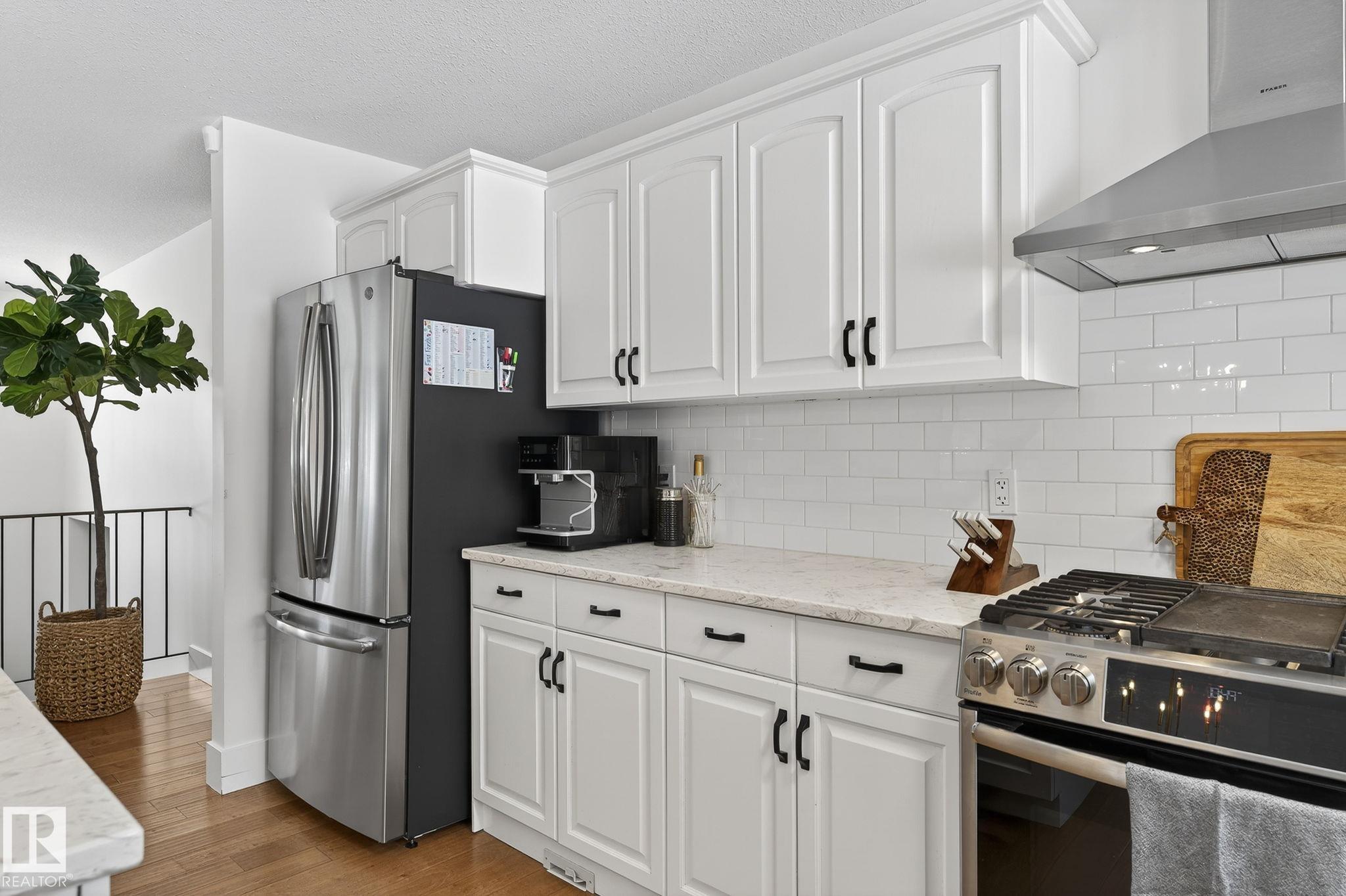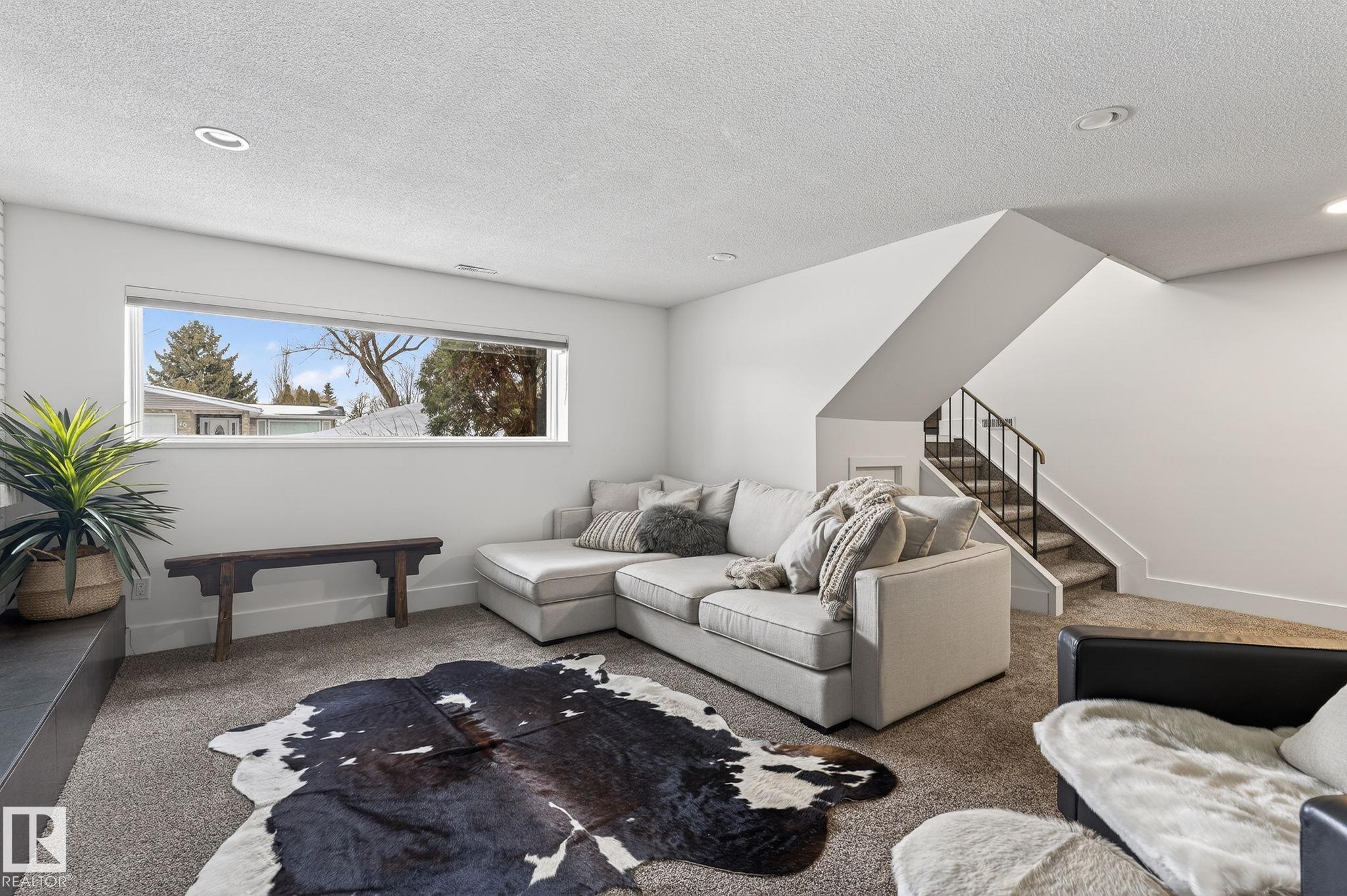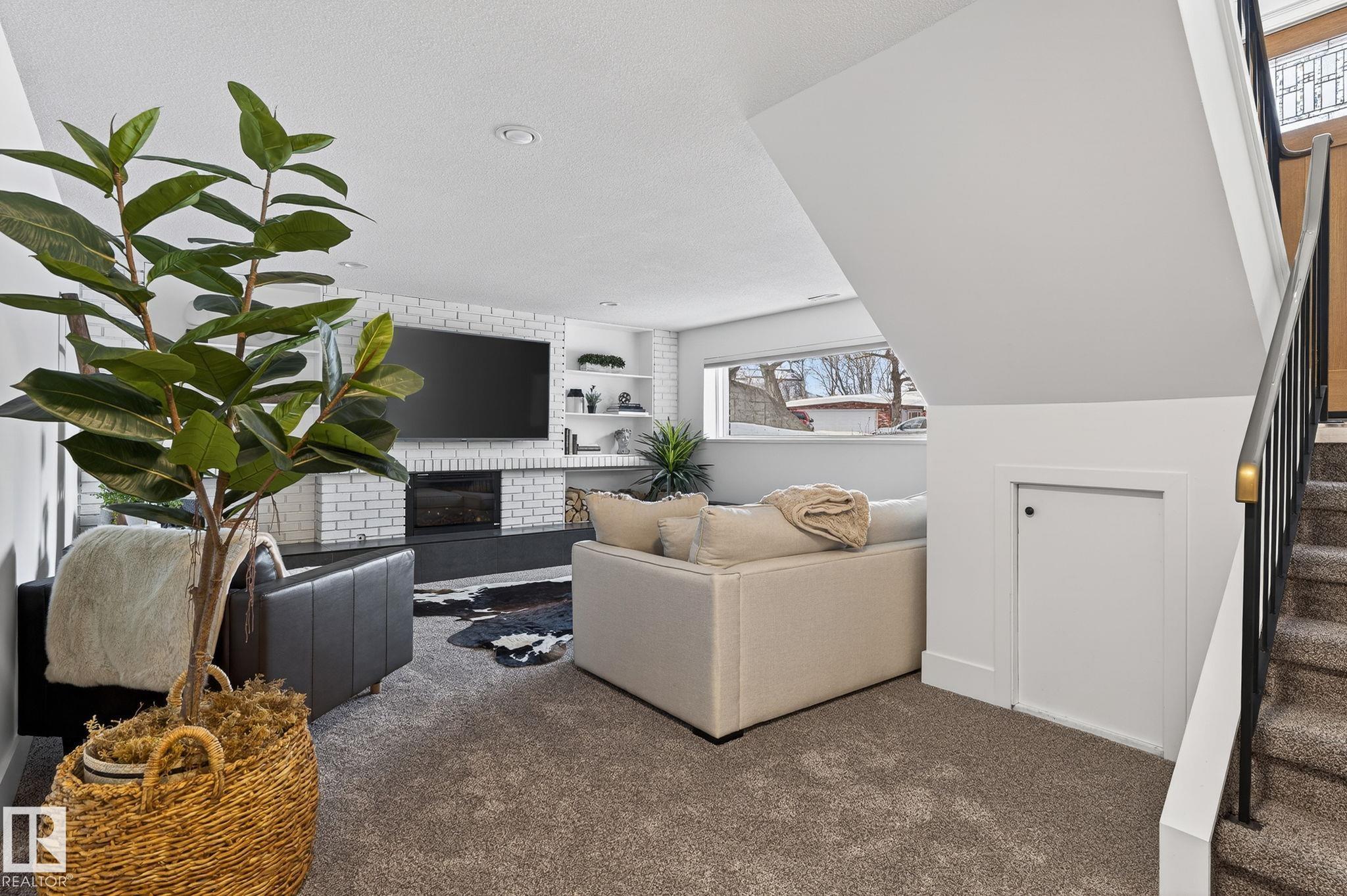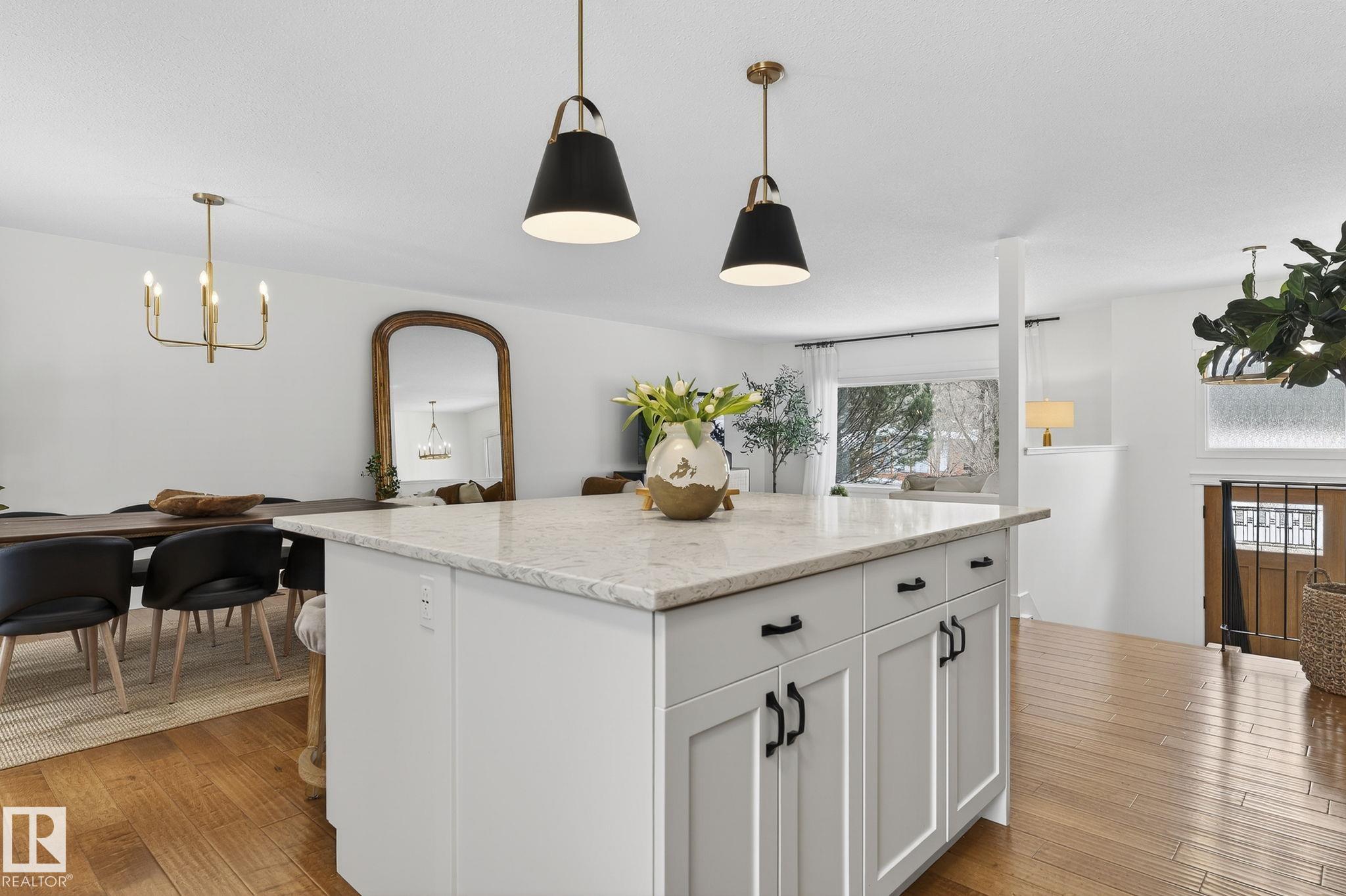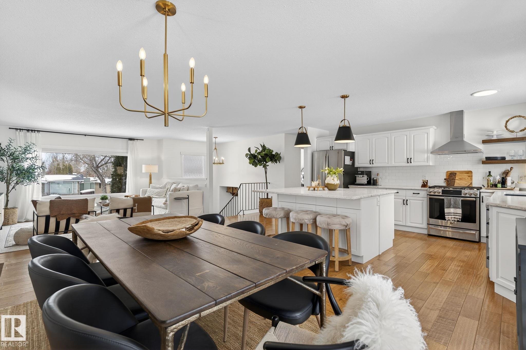 Set on a quiet, tree-lined street in the desirable Gardens neighbourhood of St. Albert, this meticulously renovated bi-level offers 4 bedrooms, 2.1 bathrooms, and 1,402 sq ft of thoughtfully designed living space, complete with a heated oversized double attached garage w/ epoxy flooring. The sun-filled main floor features an open living and dining area, highlighted by rich hardwood flooring & refined contemporary finishes. The fully renovated kitchen showcases quartz countertops, stainless steel appliances, a central island, & a charming bay window overlooking the private backyard. The finished lower level offers additional living space with a bright family room centered around an electric fireplace, fourth bedroom, laundry, and convenient 2-piece bath?perfect for families or guests. Enjoy the beautifully landscaped backyard complete with a hot tub, ideal for entertaining or relaxing. New furnace/AC (2024), HWT & shingles (2020), newer windows. The perfect family home in the desirable Gardens community.