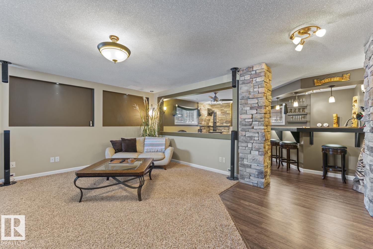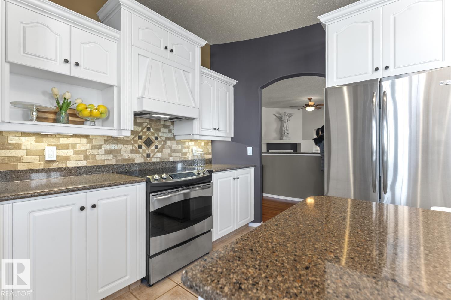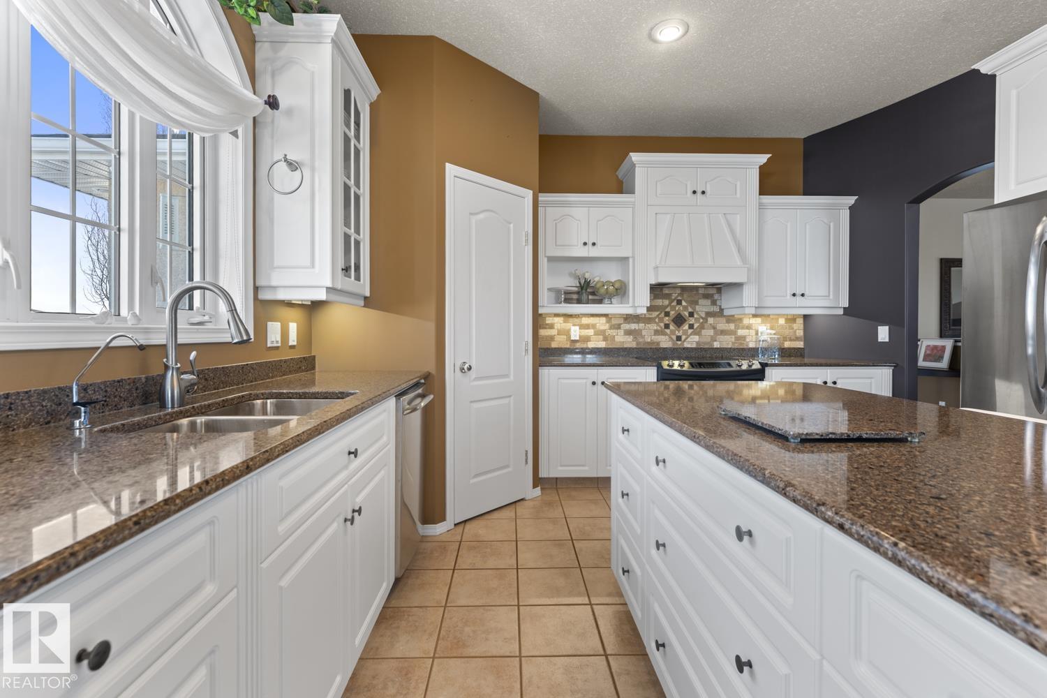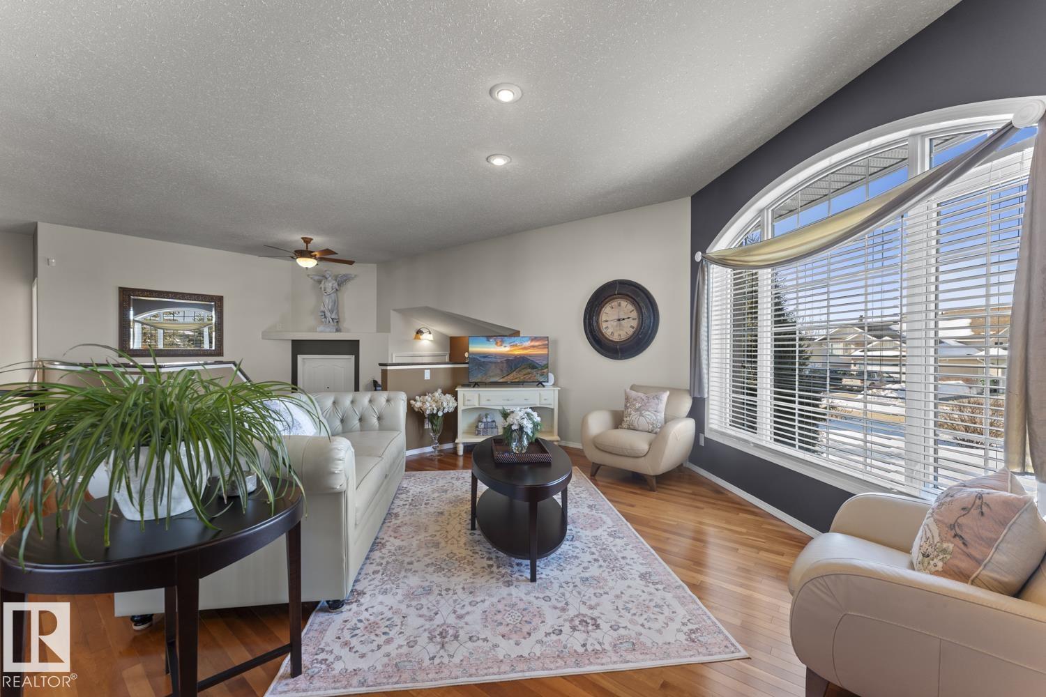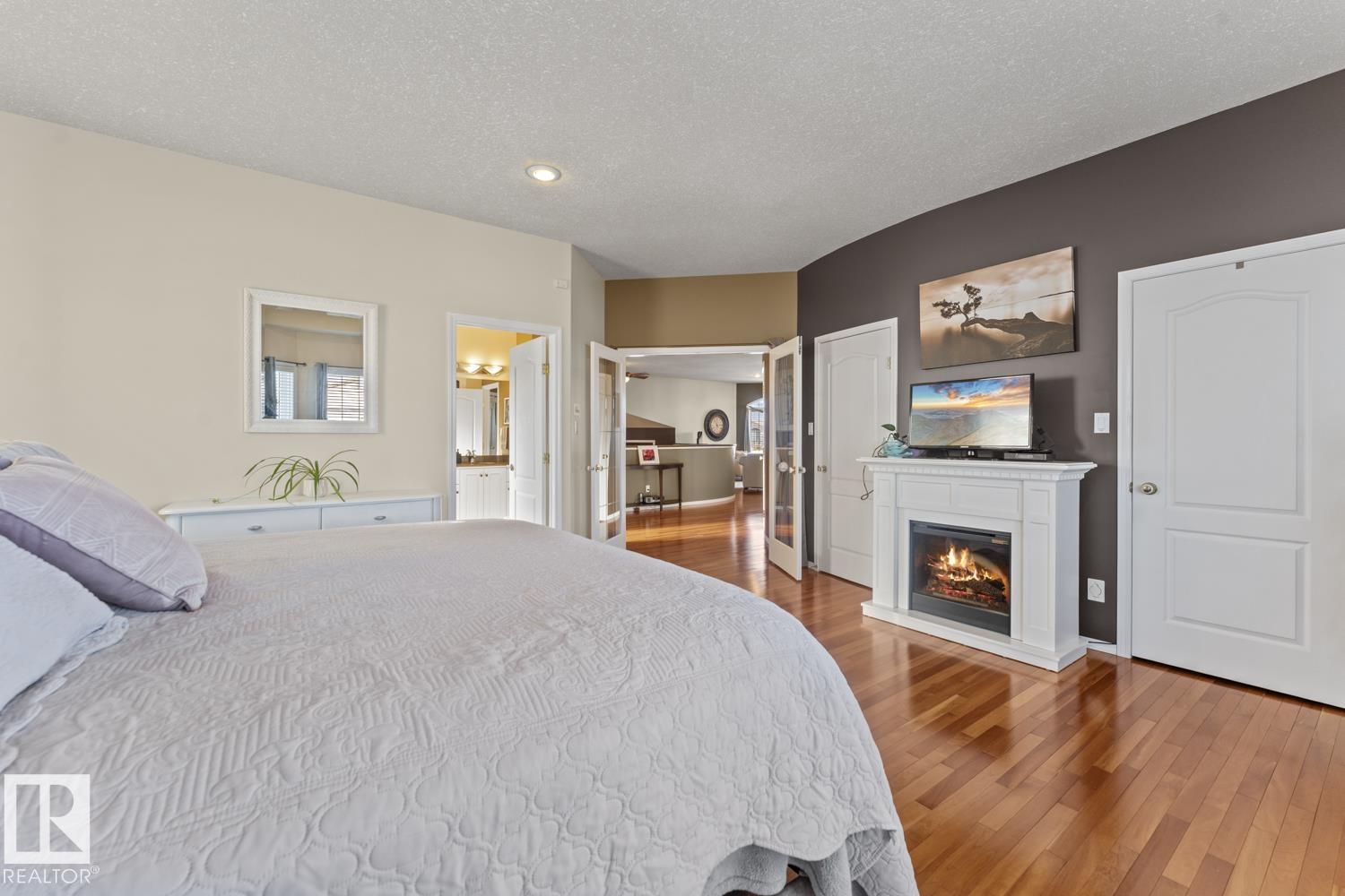 This custom-built home sits on two landscaped lots and offers exceptional space inside and out. The main floor features a modern kitchen with quartz countertops, stainless steel appliances, and a bright, open living area with a fireplace. The primary bedroom includes a 4-piece ensuite with jacuzzi tub, separate 4-ft shower, and his-and-hers walk-in closets. A second bedroom can function as a home office. The lower level has in-floor heating, a large family/games room with wood stove, full wet bar, a spacious third bedroom with access to a 3-piece bathroom, plus dedicated laundry and storage areas. An oversized heated double attached garage and an additional heated double detached garage provide ample parking and workspace. Professionally landscaped yard with underground sprinklers and mature trees completes this one-of-a-kind property.