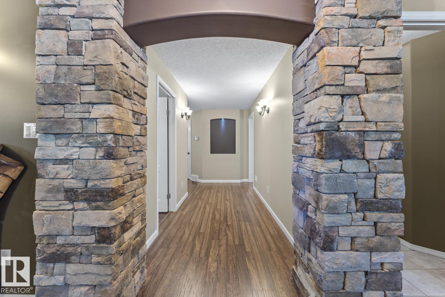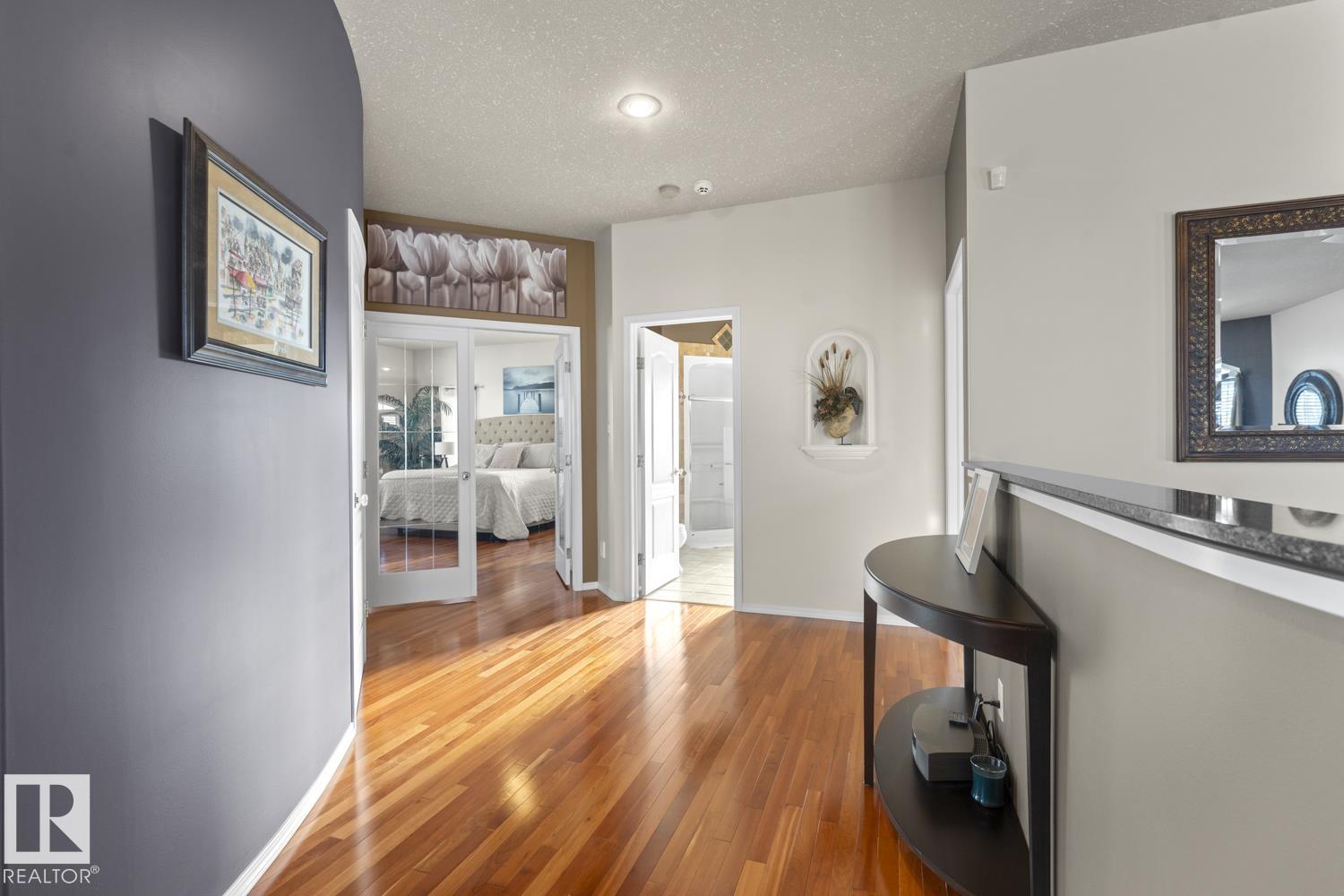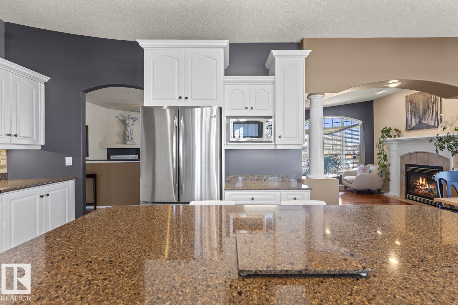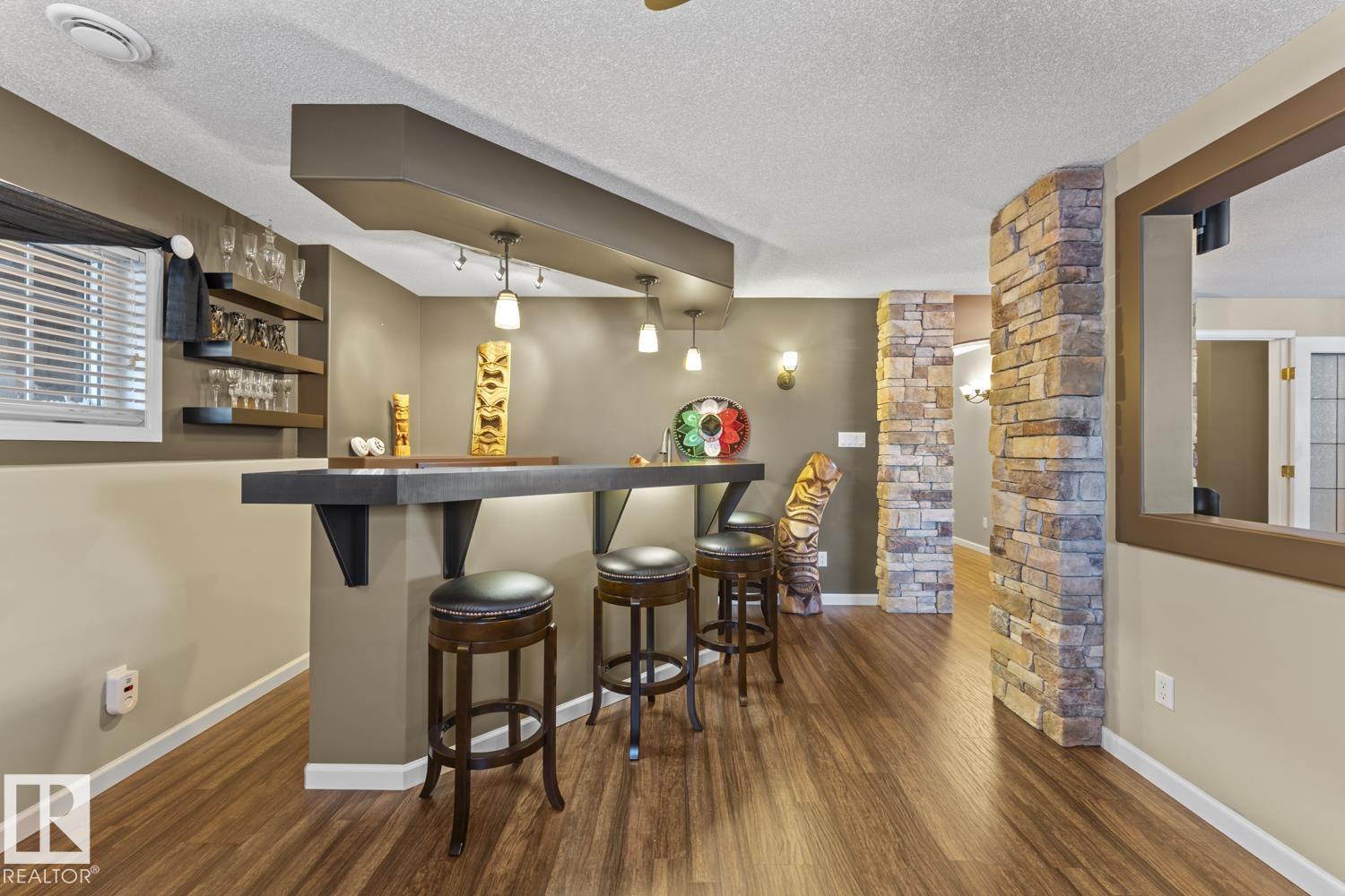 This custom-built home sits on two landscaped lots and offers exceptional space inside and out. The main floor features a modern kitchen with quartz countertops, stainless steel appliances, and a bright, open living area with a fireplace. The primary bedroom includes a 4-piece ensuite with jacuzzi tub, separate 4-ft shower, and his-and-hers walk-in closets. A second bedroom can function as a home office. The lower level has in-floor heating, a large family/games room with wood stove, full wet bar, a spacious third bedroom with access to a 3-piece bathroom, plus dedicated laundry and storage areas. An oversized heated double attached garage and an additional heated double detached garage provide ample parking and workspace. Professionally landscaped yard with underground sprinklers and mature trees completes this one-of-a-kind property.