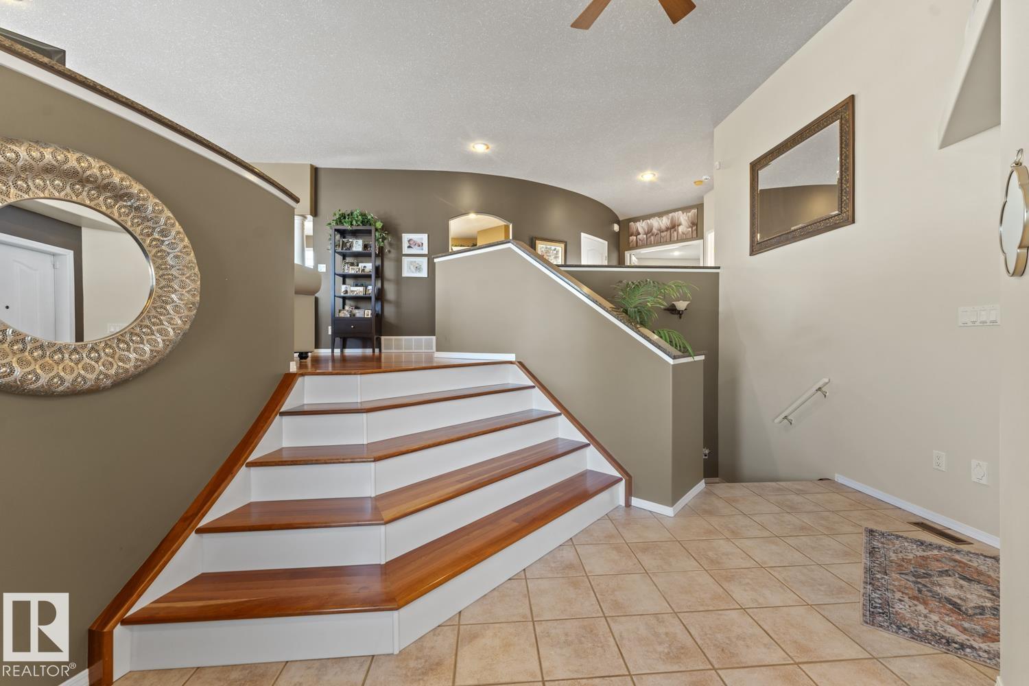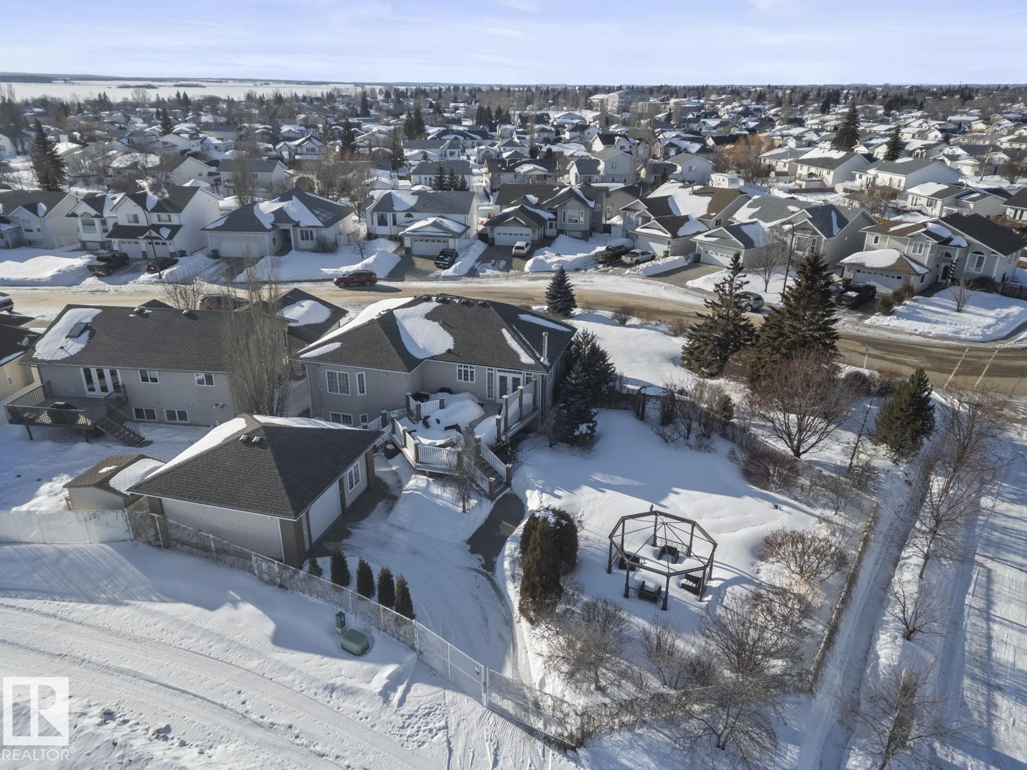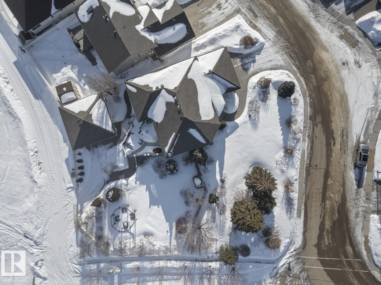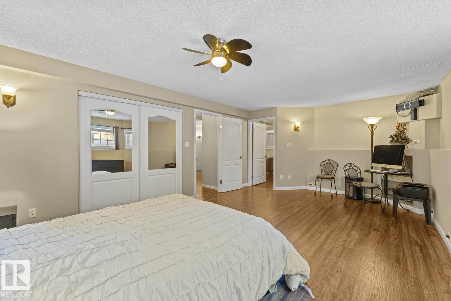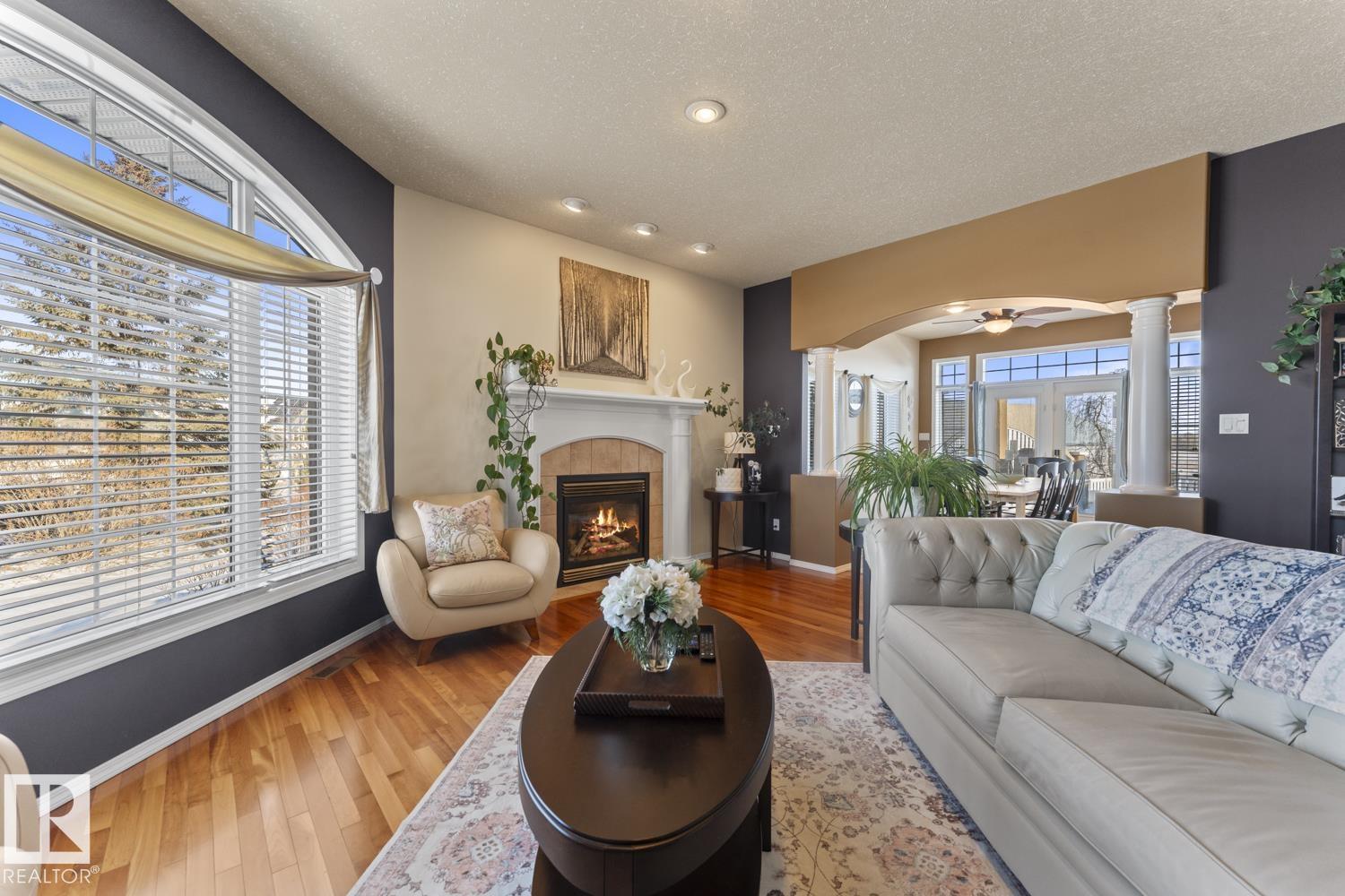 This custom-built home sits on two landscaped lots and offers exceptional space inside and out. The main floor features a modern kitchen with quartz countertops, stainless steel appliances, and a bright, open living area with a fireplace. The primary bedroom includes a 4-piece ensuite with jacuzzi tub, separate 4-ft shower, and his-and-hers walk-in closets. A second bedroom can function as a home office. The lower level has in-floor heating, a large family/games room with wood stove, full wet bar, a spacious third bedroom with access to a 3-piece bathroom, plus dedicated laundry and storage areas. An oversized heated double attached garage and an additional heated double detached garage provide ample parking and workspace. Professionally landscaped yard with underground sprinklers and mature trees completes this one-of-a-kind property.