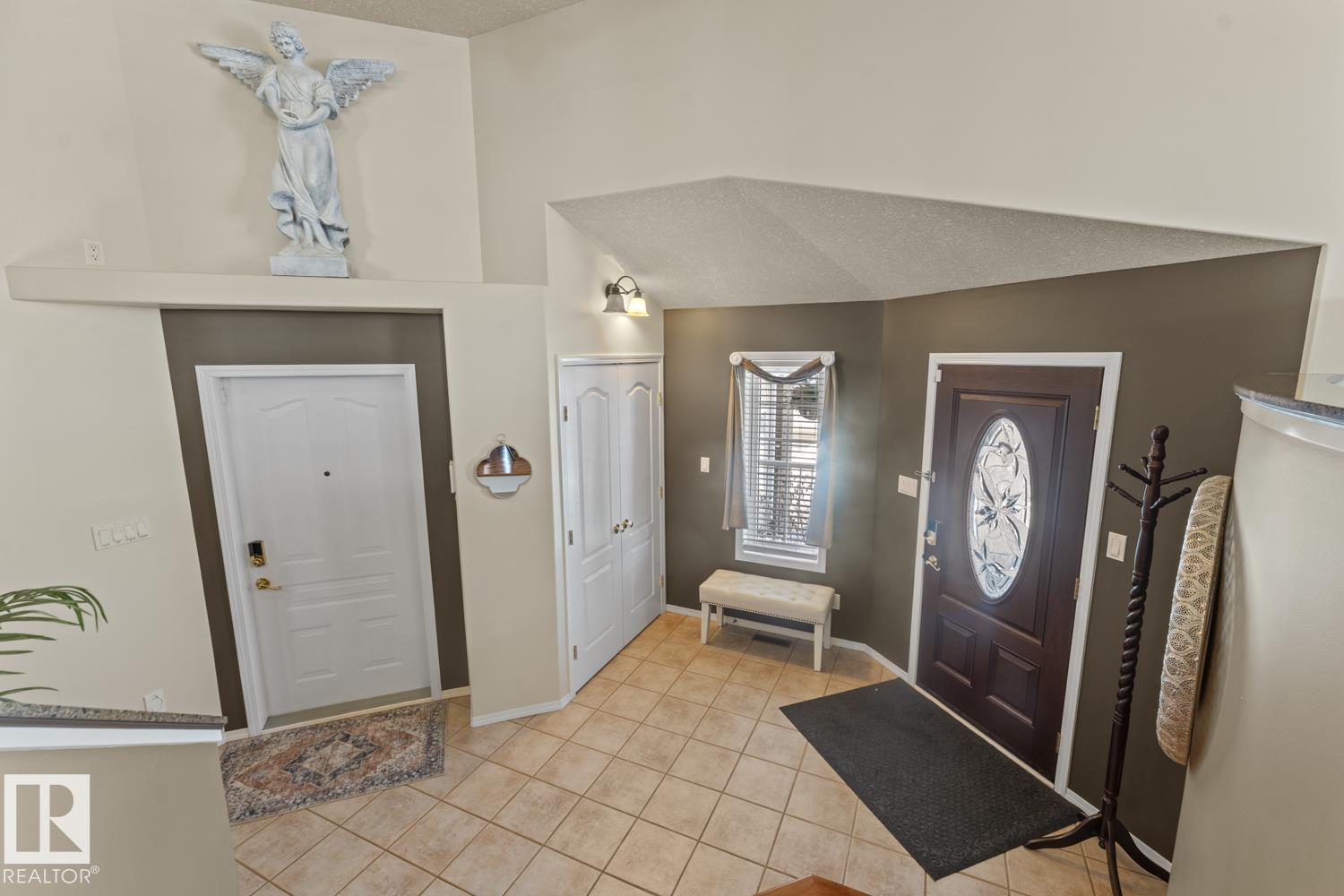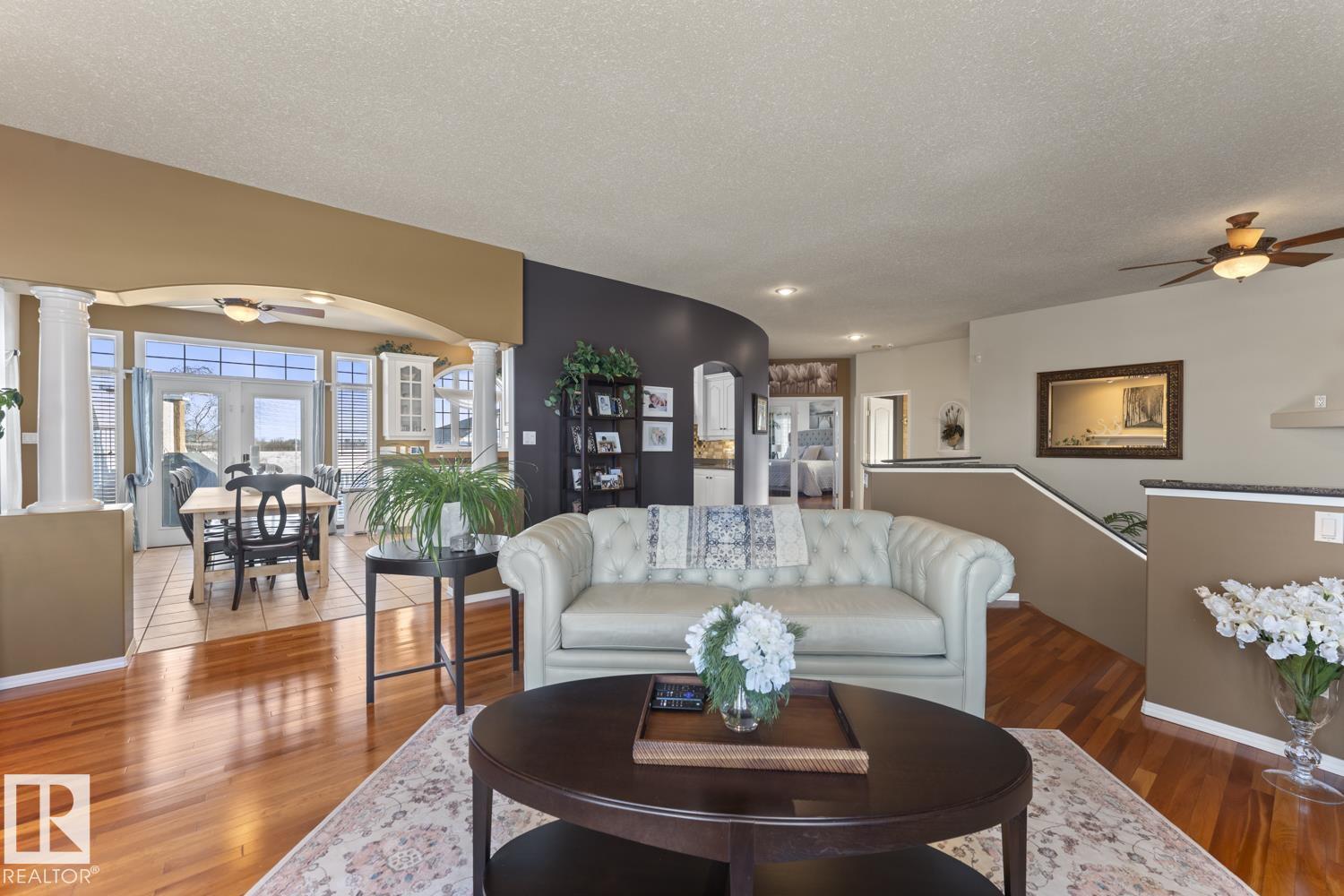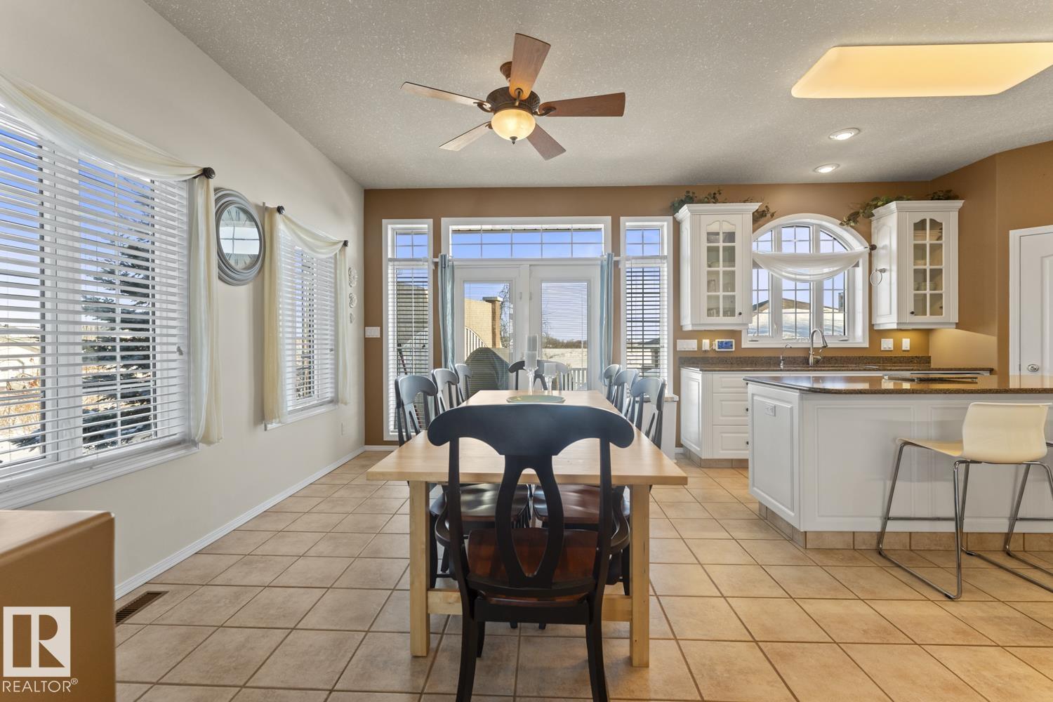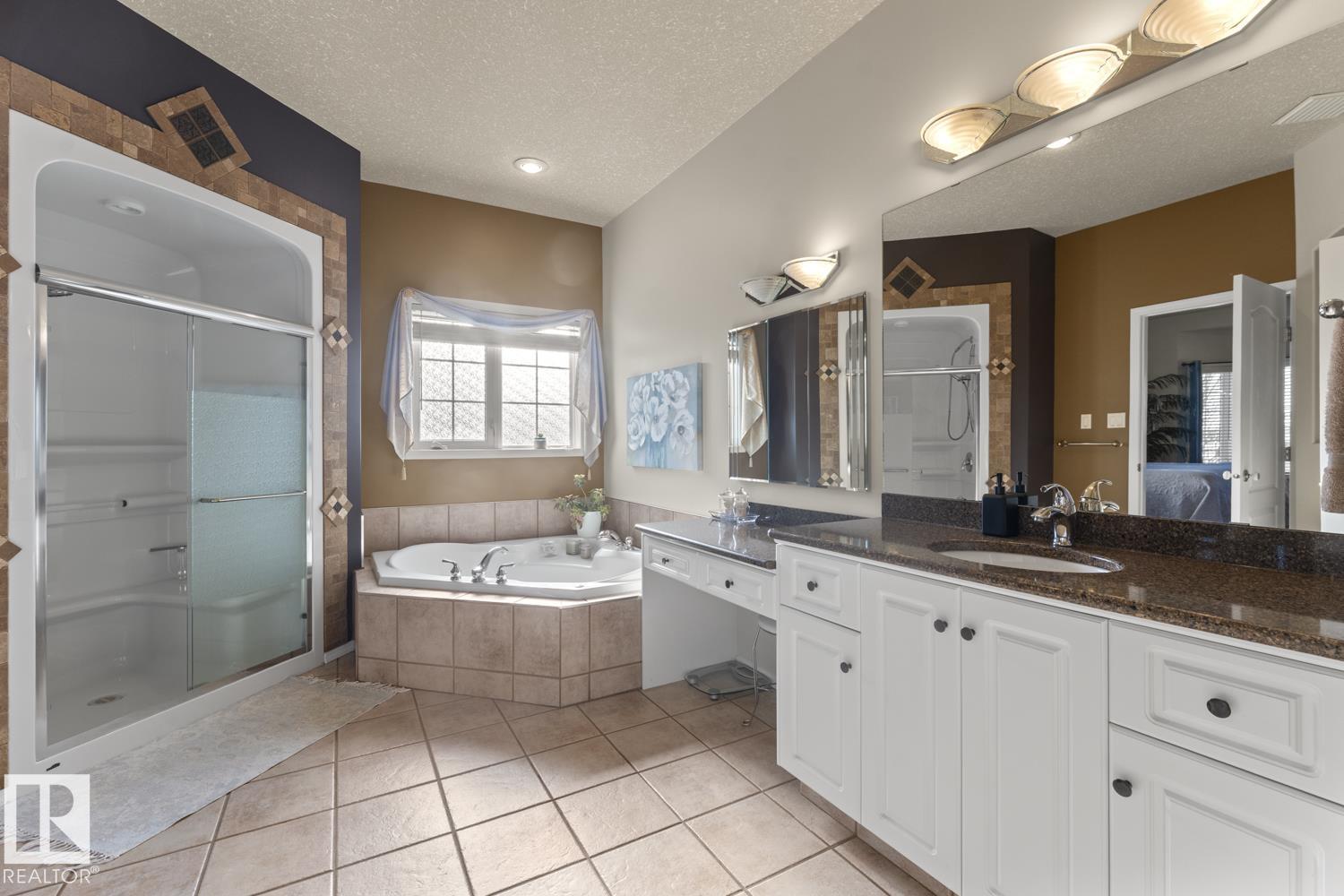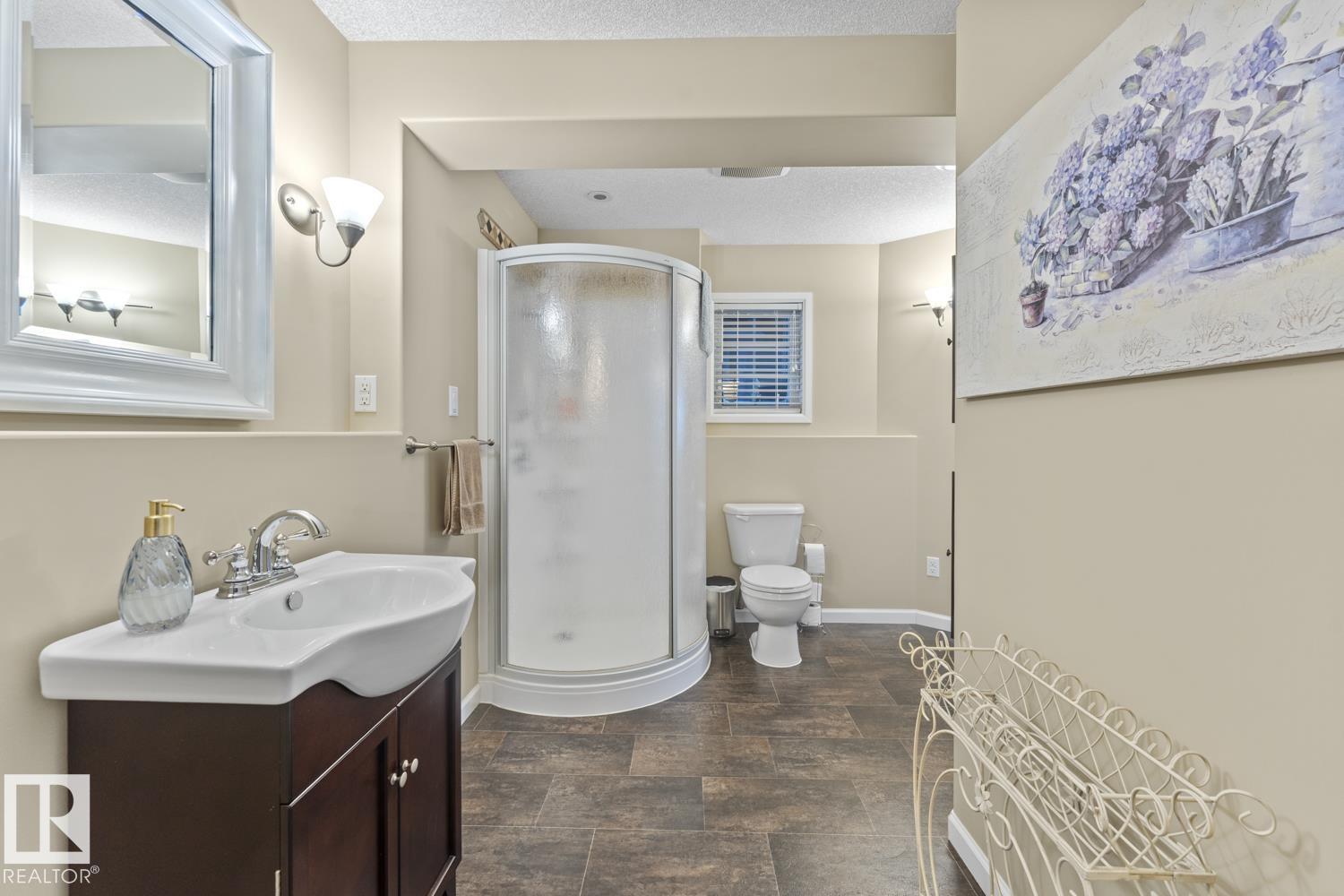 This custom-built home sits on two landscaped lots and offers exceptional space inside and out. The main floor features a modern kitchen with quartz countertops, stainless steel appliances, and a bright, open living area with a fireplace. The primary bedroom includes a 4-piece ensuite with jacuzzi tub, separate 4-ft shower, and his-and-hers walk-in closets. A second bedroom can function as a home office. The lower level has in-floor heating, a large family/games room with wood stove, full wet bar, a spacious third bedroom with access to a 3-piece bathroom, plus dedicated laundry and storage areas. An oversized heated double attached garage and an additional heated double detached garage provide ample parking and workspace. Professionally landscaped yard with underground sprinklers and mature trees completes this one-of-a-kind property.
