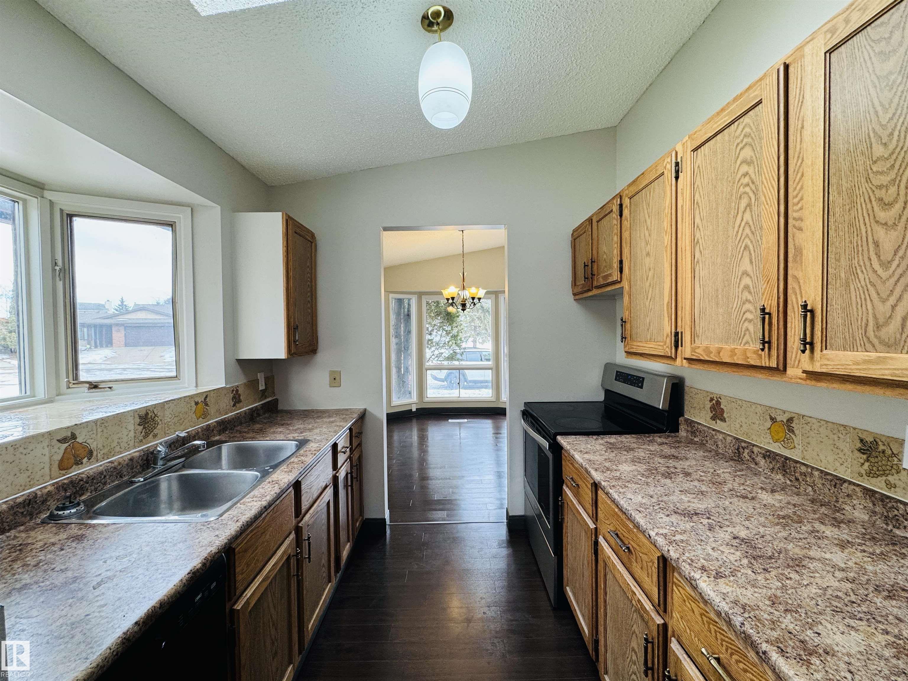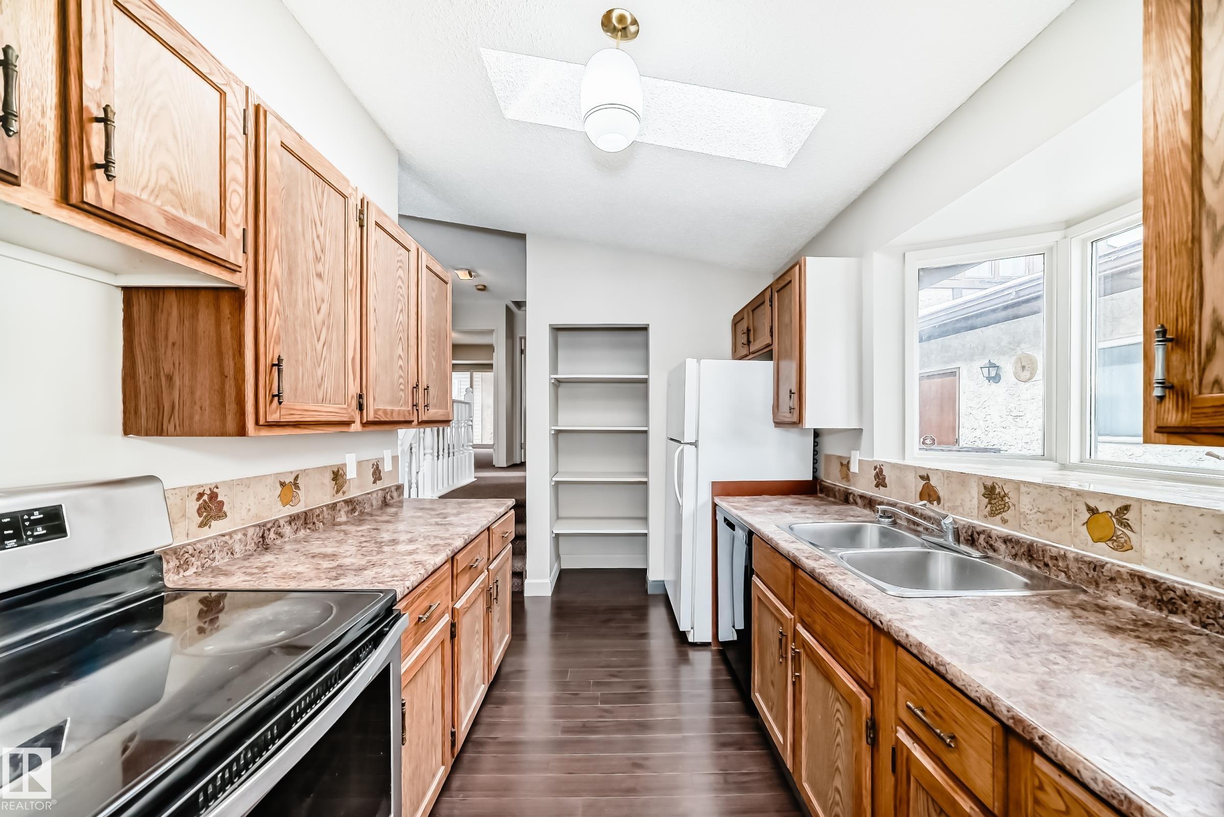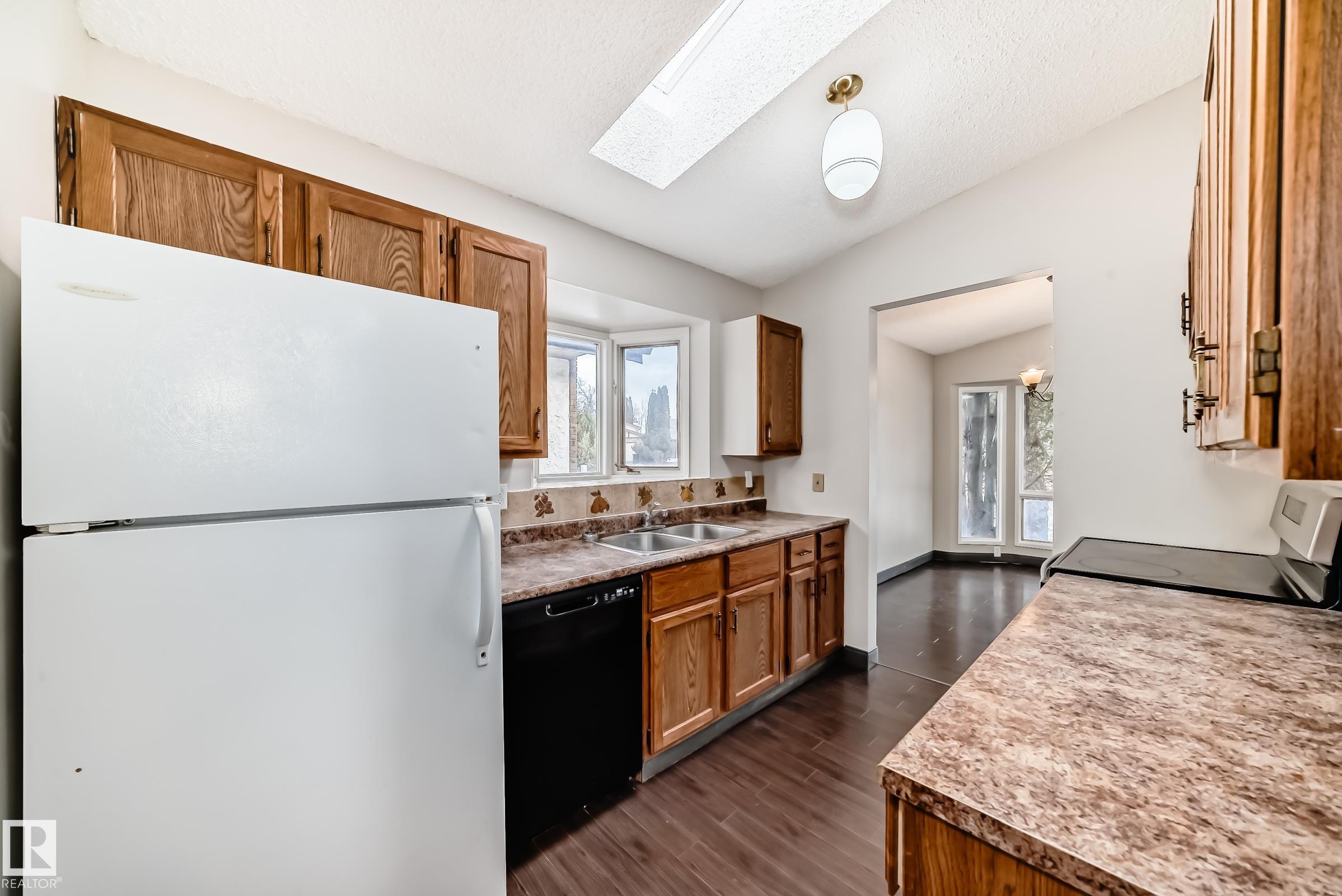 PRICE ADJUSTED $30,000!!! SELLER motivated to sell this UPGRADED Fully finished 3 Bdrm, 2 Bath, 4 Level Split presents: New flooring to include vinyl plank and carpeting, freshly painted throughout, a gorgeous size Livingroom with a vaulted ceiling and the wall of windows for lots of natural light plus the wood burning fireplace. You will also find a galley Kitchen with 3 appliances and the full size dinning room to complete the main level. The upper level presents 3 Bedrooms and the 4 Pc Bath with the lower level hosting an oversized family room and 3 Pc Bath and the 4th level partly finished to include carpet, ceiling & boasts a newer furnace, hwt and you'll also find the laundry area with a washer, dryer and laundry tub. This home also features Skylights, 2 year old shingles, a Heated drywall and insulated Double Detached Garage and is located close to schools, parks, amenities, shopping, WEM and minutes to the Anthony Henday. This is a must to see!