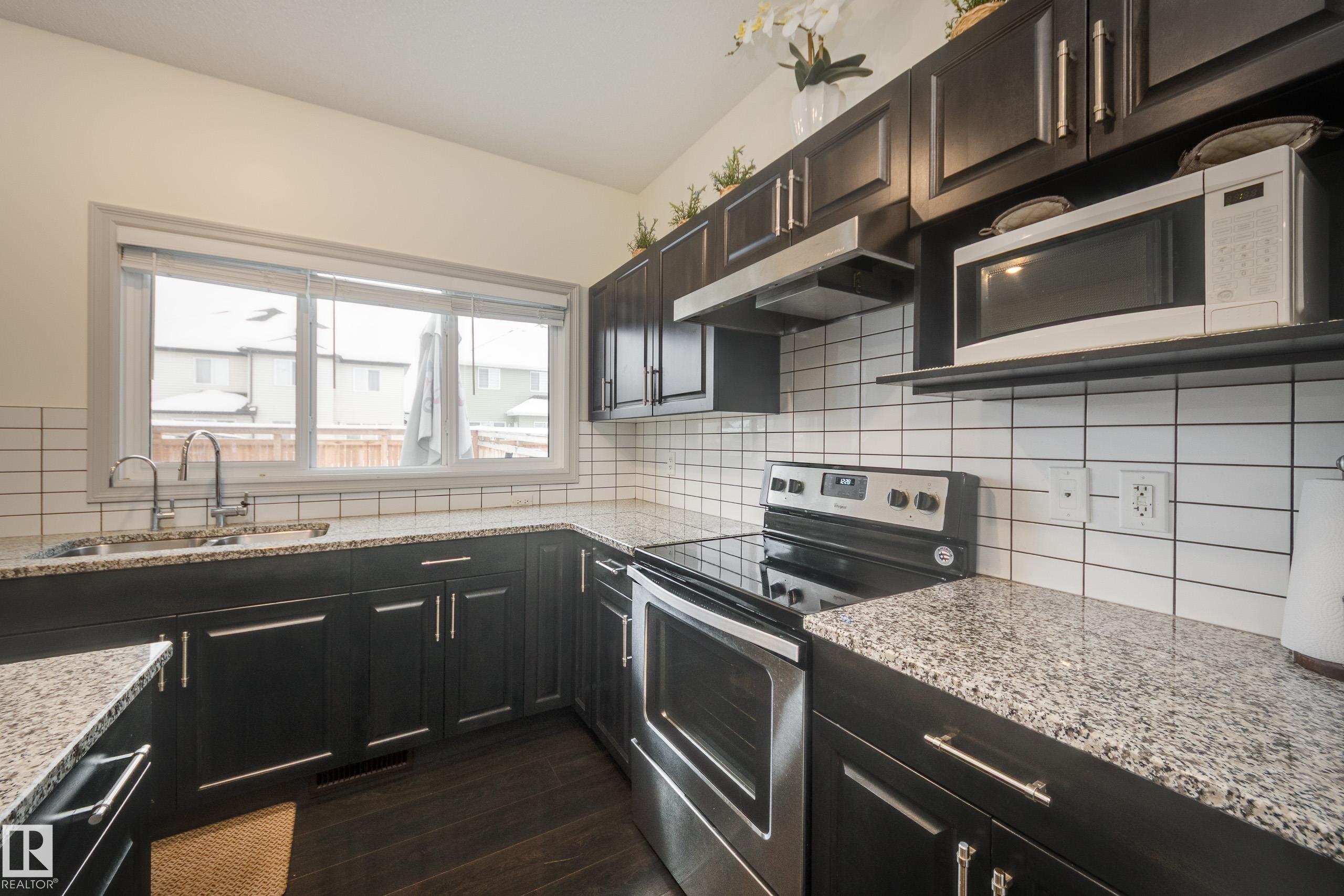 Located in the family-friendly community of DesRochers, this well-designed half duplex sits just steps from the K?9 school and nearby parks, with quick access to the high school, shopping, restaurants, and everyday amenities. Offering over 1,540 sq.ft. of thoughtfully planned living space, the home features a double attached garage and a fully fenced backyard with a deck for outdoor enjoyment. A spacious foyer welcomes you in, with a convenient half bath near the garage entry. The open main floor flows easily from the comfortable living room into the dining area, where a garden door leads to the deck. The kitchen is both stylish and functional with granite countertops, an island, corner pantry, and included appliances. Upstairs, the primary suite includes a walk-in closet and full ensuite, while two additional bedrooms, a second full bath, and a dedicated laundry room complete the upper level.