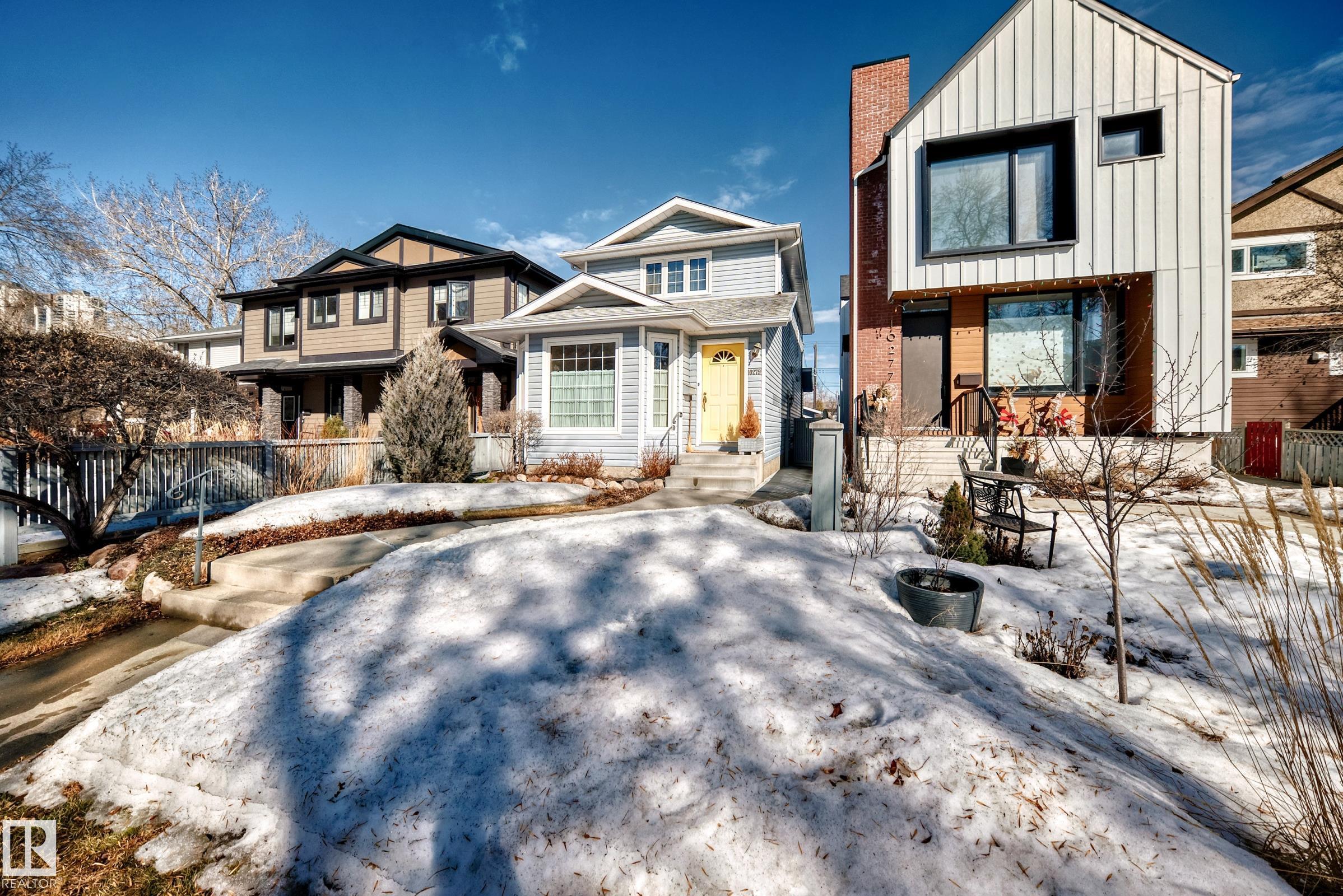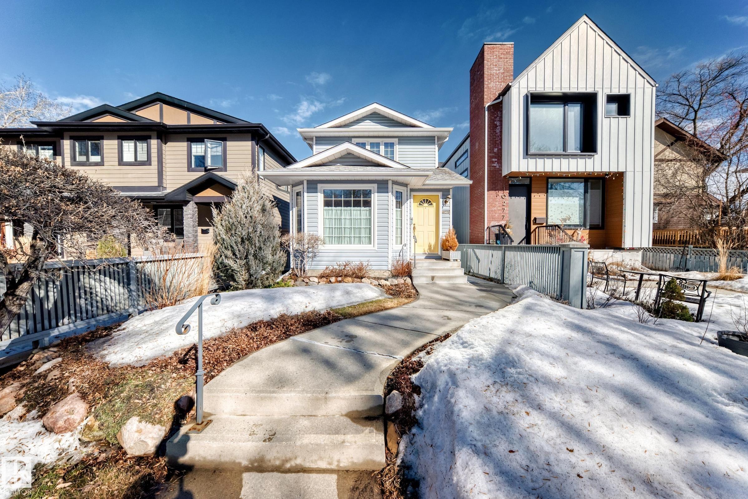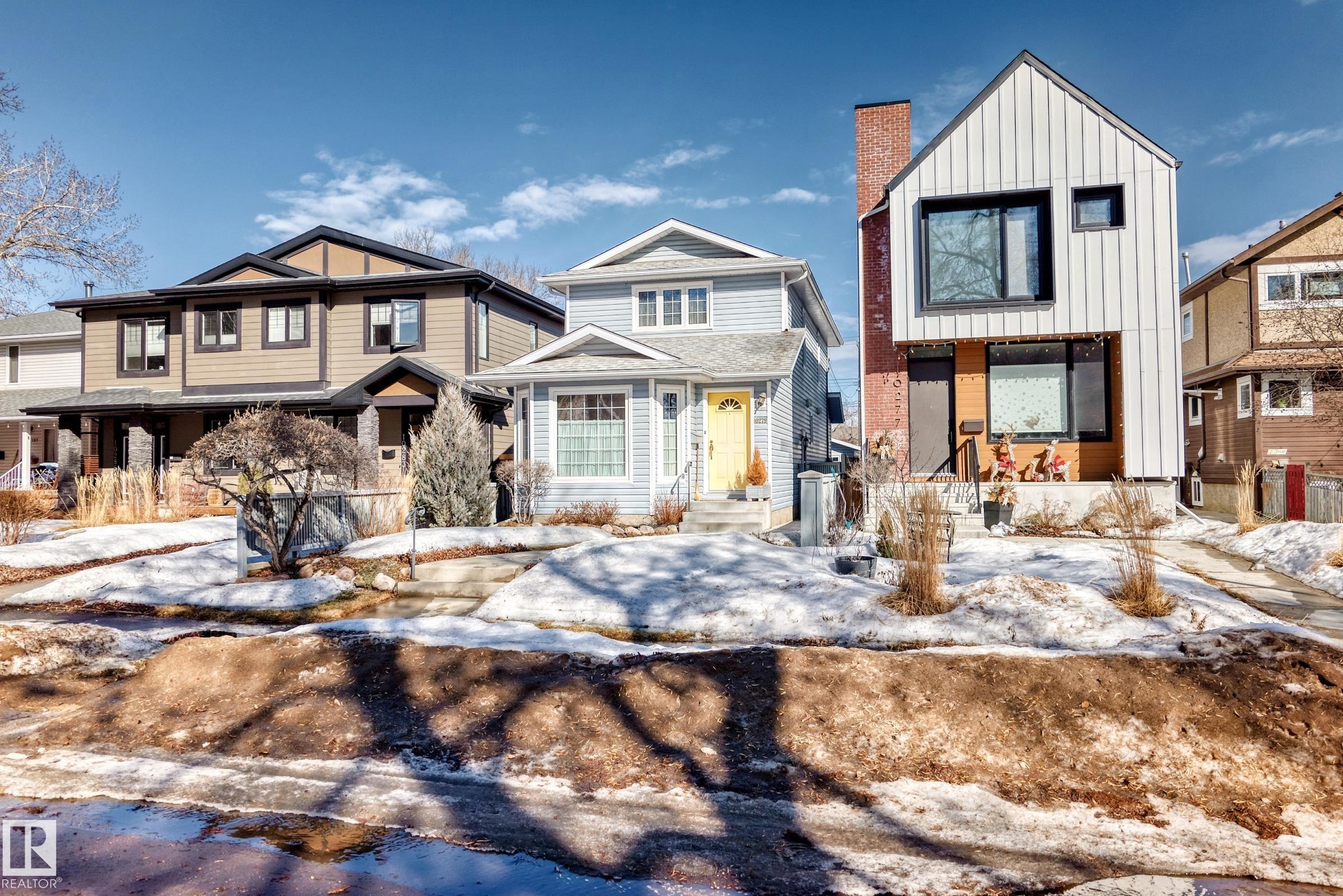 Riverdale?one of Edmonton?s most sought-after communities! 1/2 block from the river ideally located just mins. from downtown & steps to Riverdale Park, scenic river valley trails, & Riverside Golf Course, this home offers the perfect blend of urban convenience & natural beauty. This solidly built residence features high ceilings, large windows that flood the space with natural light, rich hardwood flooring, & a cozy gas fireplace?all within a functional, family-friendly layout. The kitchen is ideal for entertaining, seamlessly opening to the second living area & complemented by a bright dinette. Upstairs, you?ll find continued hardwood flooring throughout, a spacious primary bedroom, 2 additional generously sized bedrooms?perfect for a growing family or a work-from-home setup. The unfinished basement offers impressive 9-foot ceilings & a separate side entrance, presenting excellent potential for future use. Step outside to a private backyard filled w/ beautiful perennials, a beautiful space.