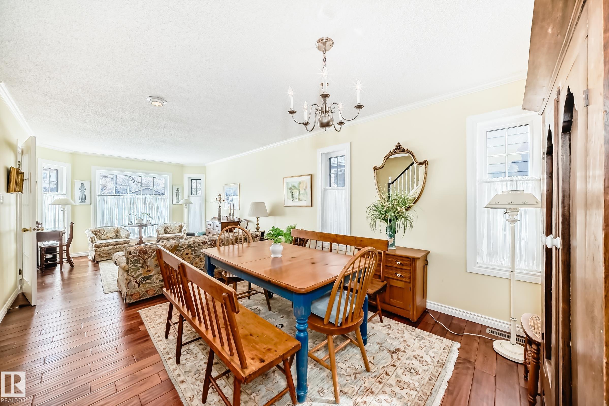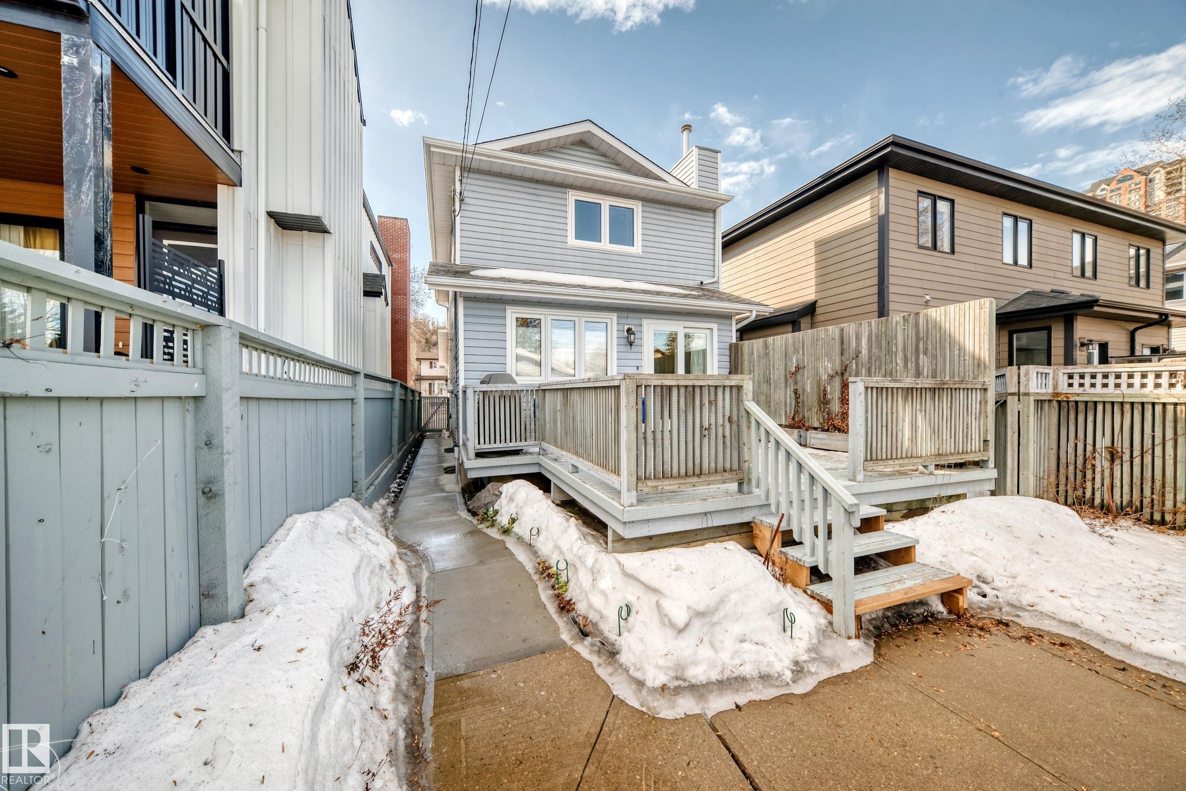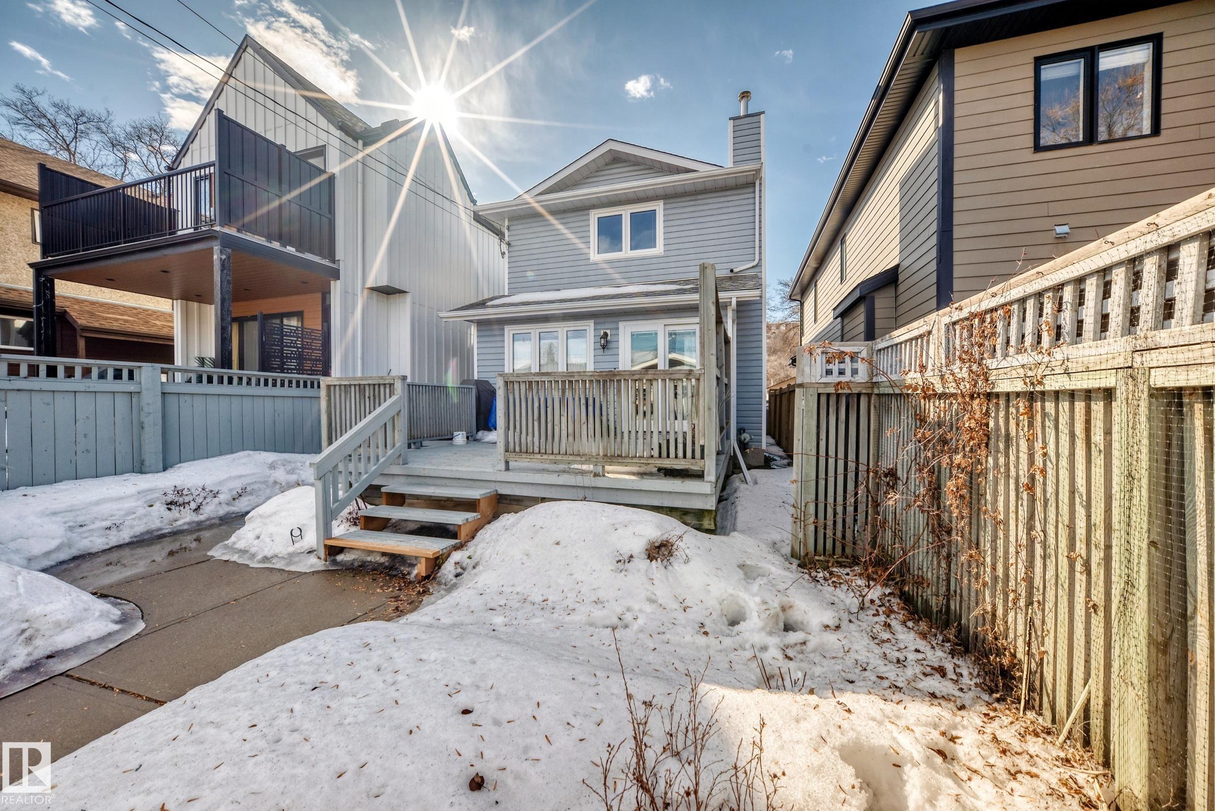 Riverdale?one of Edmonton?s most sought-after communities! 1/2 block from the river ideally located just mins. from downtown & steps to Riverdale Park, scenic river valley trails, & Riverside Golf Course, this home offers the perfect blend of urban convenience & natural beauty. This solidly built residence features high ceilings, large windows that flood the space with natural light, rich hardwood flooring, & a cozy gas fireplace?all within a functional, family-friendly layout. The kitchen is ideal for entertaining, seamlessly opening to the second living area & complemented by a bright dinette. Upstairs, you?ll find continued hardwood flooring throughout, a spacious primary bedroom, 2 additional generously sized bedrooms?perfect for a growing family or a work-from-home setup. The unfinished basement offers impressive 9-foot ceilings & a separate side entrance, presenting excellent potential for future use. Step outside to a private backyard filled w/ beautiful perennials, a beautiful space.
