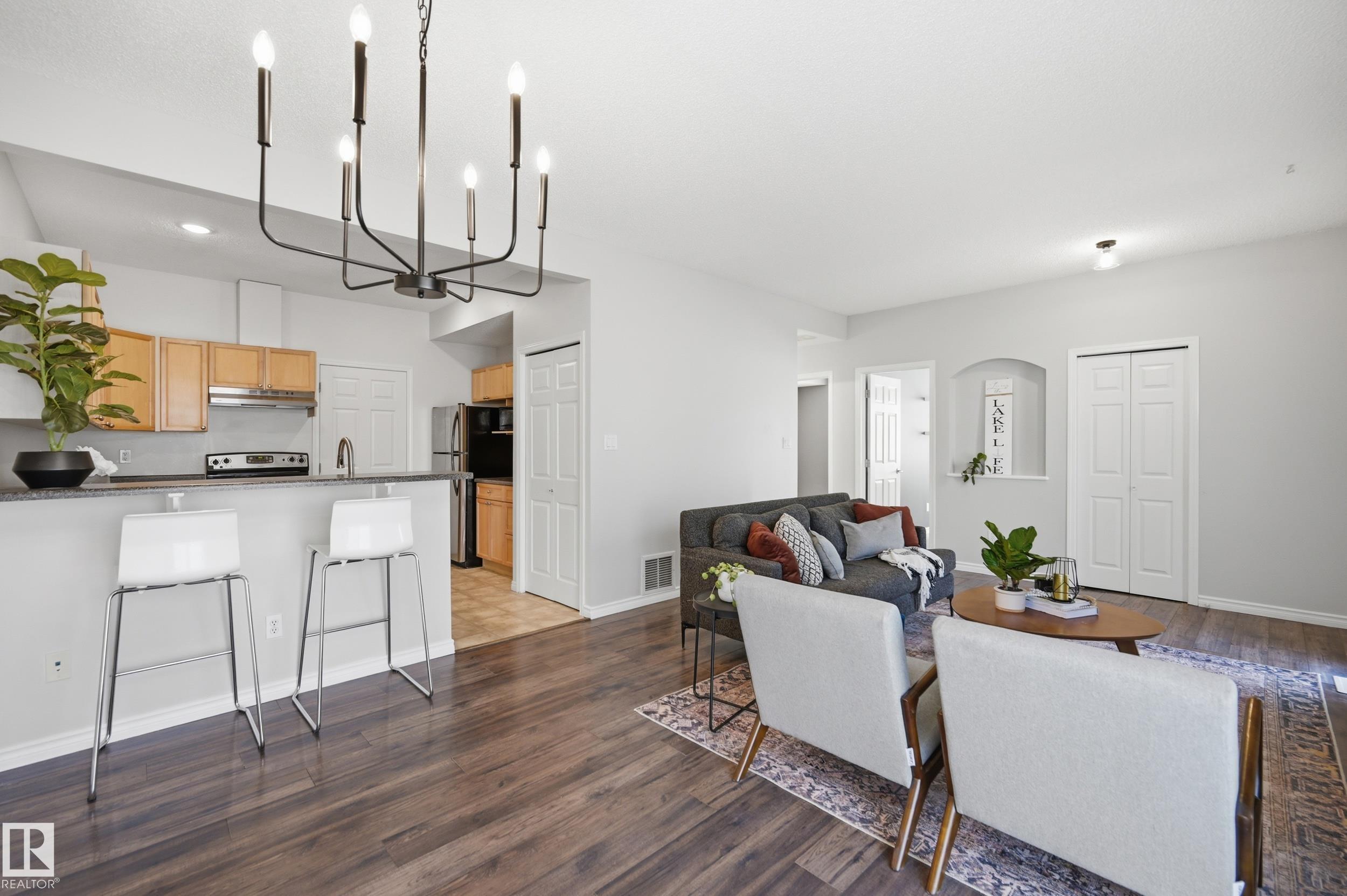 Located in the private Lake Community of Summerside - this 2 Bedroom + 1 Bathroom condo is sure to impress! The open concept main living space welcomes you as you walk in. Plenty of space to watch TV, and a quaint dining area. The kitchen features plenty of counter space, and stainless steel appliances. Down the hall is a 4 piece bathroom, 2 bedrooms including the Primary Bedroom w/ dual closets, one being a large walk-in closet. Completing this unit is the mechanical room w/ newer laundry pair, and a crawl space under the unit for additional storage! One single outdoor stall is located right outside the unit, and plenty of visitor parking. All the Summerside amenities, including exclusive beach and clubhouse access to use throughout the winter & summer long!