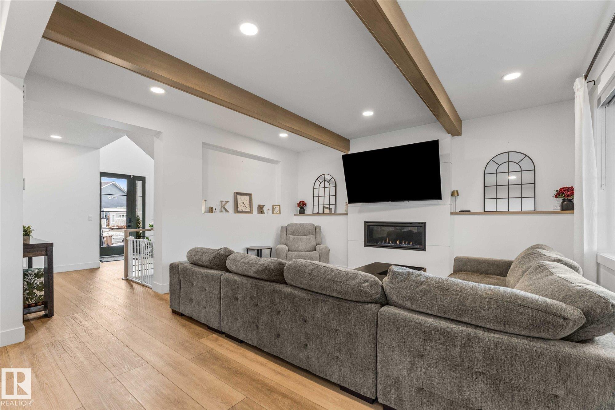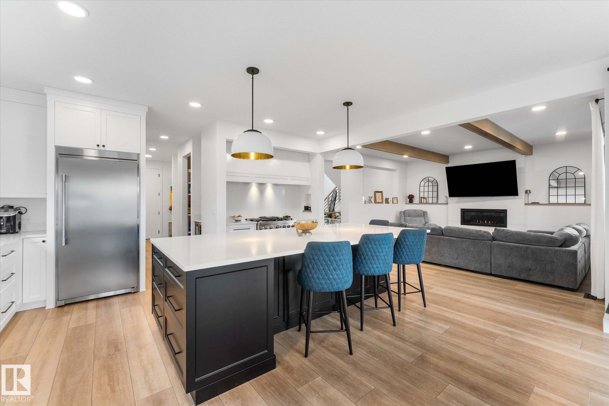 Indulge in resort-style living in this exceptional luxury residence in Jensen Lakes, St Albert's exclusive private beach community. Spanning nearly 3000 sqft, this architecturally refined custom 2story home offers 4 bedrooms, 4.5 bathrooms and a level of finish that speaks to the most discerning buyer. The chef-inspired kitchen is a true showpiece, featuring premium appliances, oversized island & walk-through pantry, flowing seamlessly into a sophisticated living space anchored by a statement fireplace. Upstairs, the primary retreat rivals a high-end spa with a lavish ensuite, heated floors & a boutique style walk-in closet with island, with direct access to the laundry room. Each upstairs bedroom boasts its own private ensuite, delivering ultimate comfort and privacy. A fully finished basement adds cozy vibes & versatility, while the triple garage (with 200Amp plug in) completes the package. Steps to the private beach, school, shopping, movie theatre - this is more than just a home, its a lifestyle.