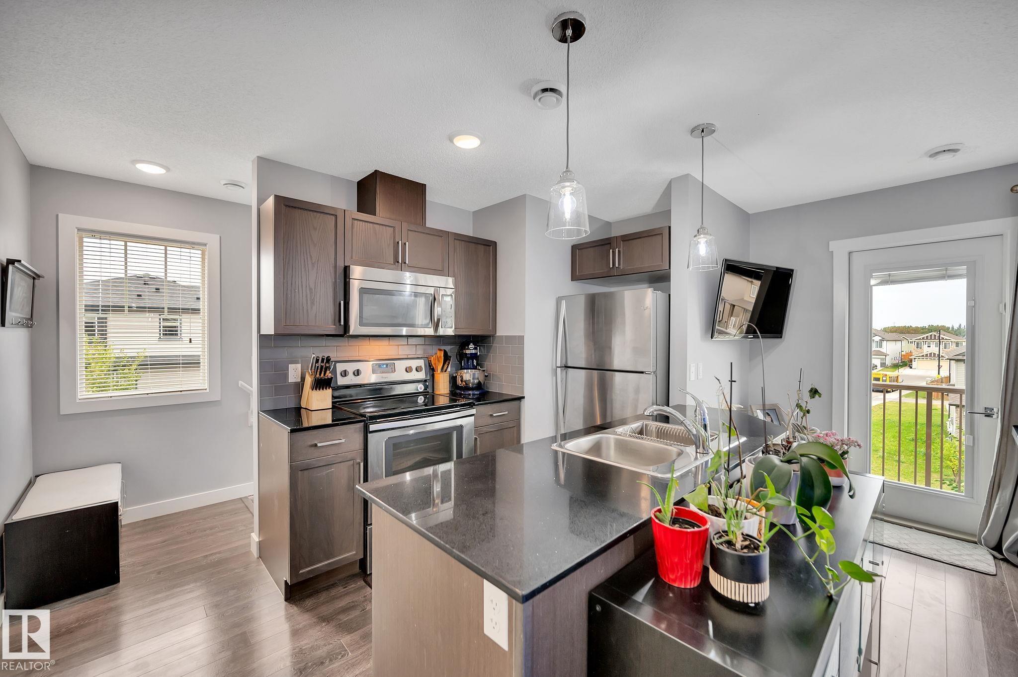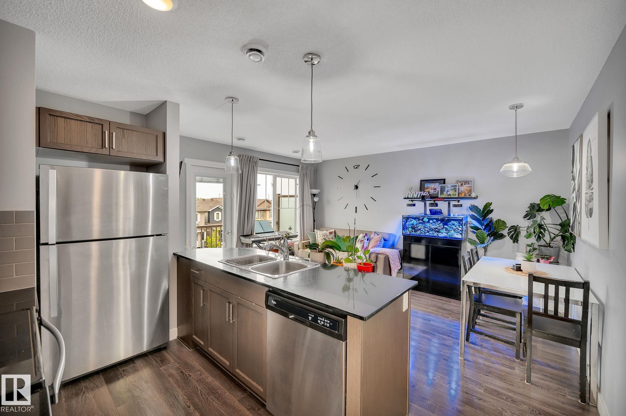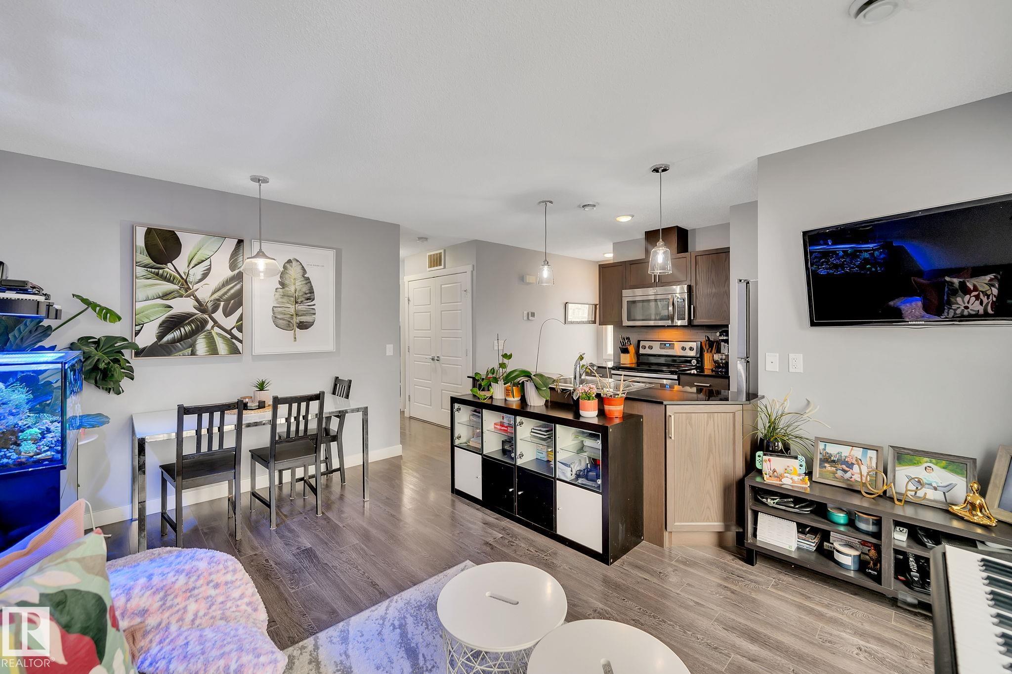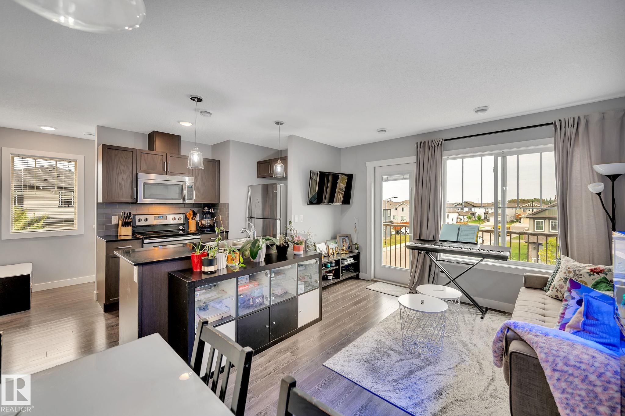 LOW CONDO FEES! Welcome to Altius Tamarack, a well-maintained complex built by Streetside Developments. This top-floor, end-unit corner condo offers 731 sq ft of bright and functional living space, featuring 2 bedrooms and 1 full bathroom. Surrounded by large windows, the unit is filled with natural light and showcases durable laminate flooring throughout. The open layout includes a convenient in-suite laundry closet and a modern, efficient design perfect for everyday living. Enjoy the added benefit of a single attached garage for secure parking and storage. Ideally located with quick access to major roadways, public transit, and Anthony Henday Drive, commuting is a breeze. Close to schools, shopping, and the Meadows Rec Centre, this property is perfect for first-time buyers, downsizers, or investors looking for excellent value in a growing community.
