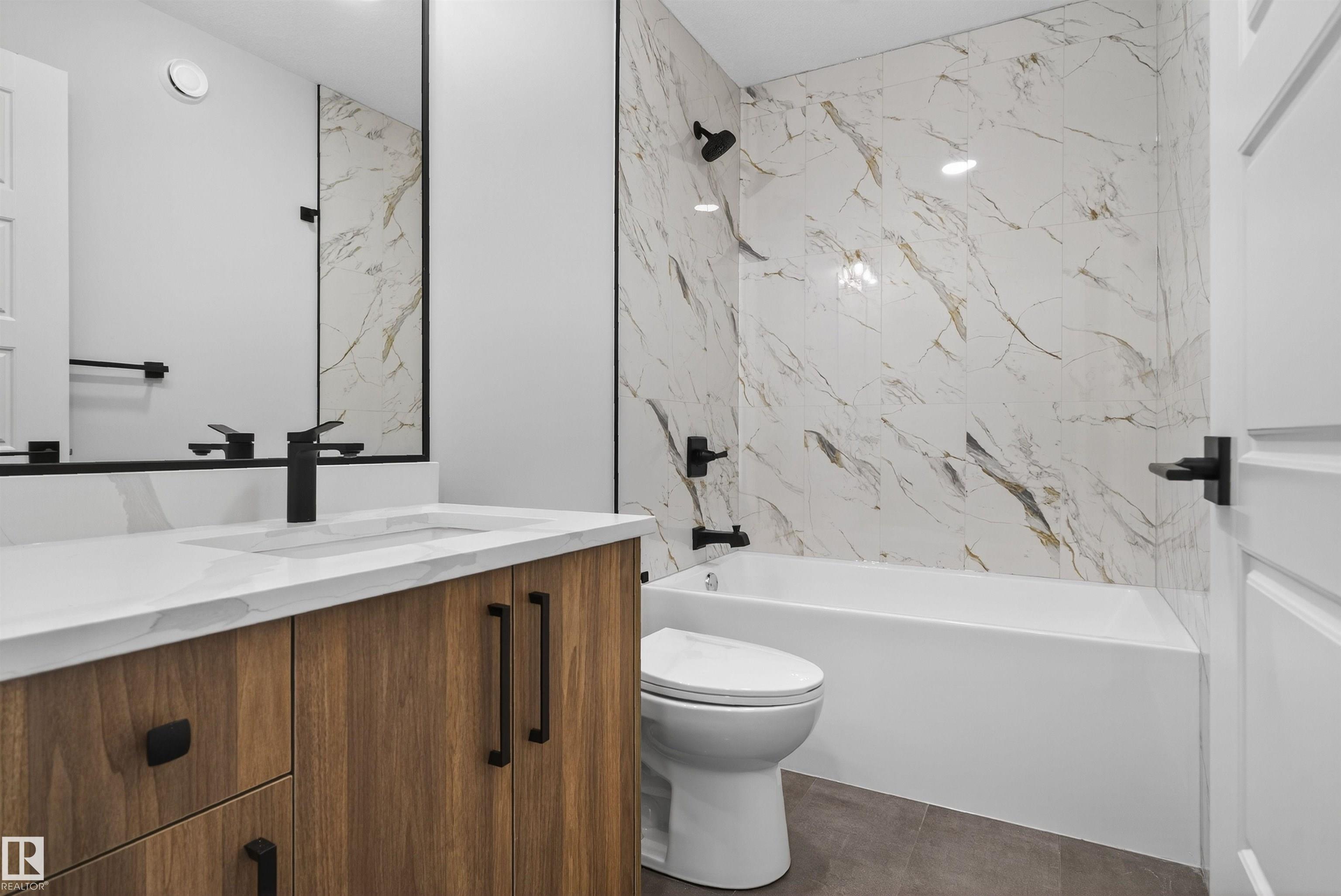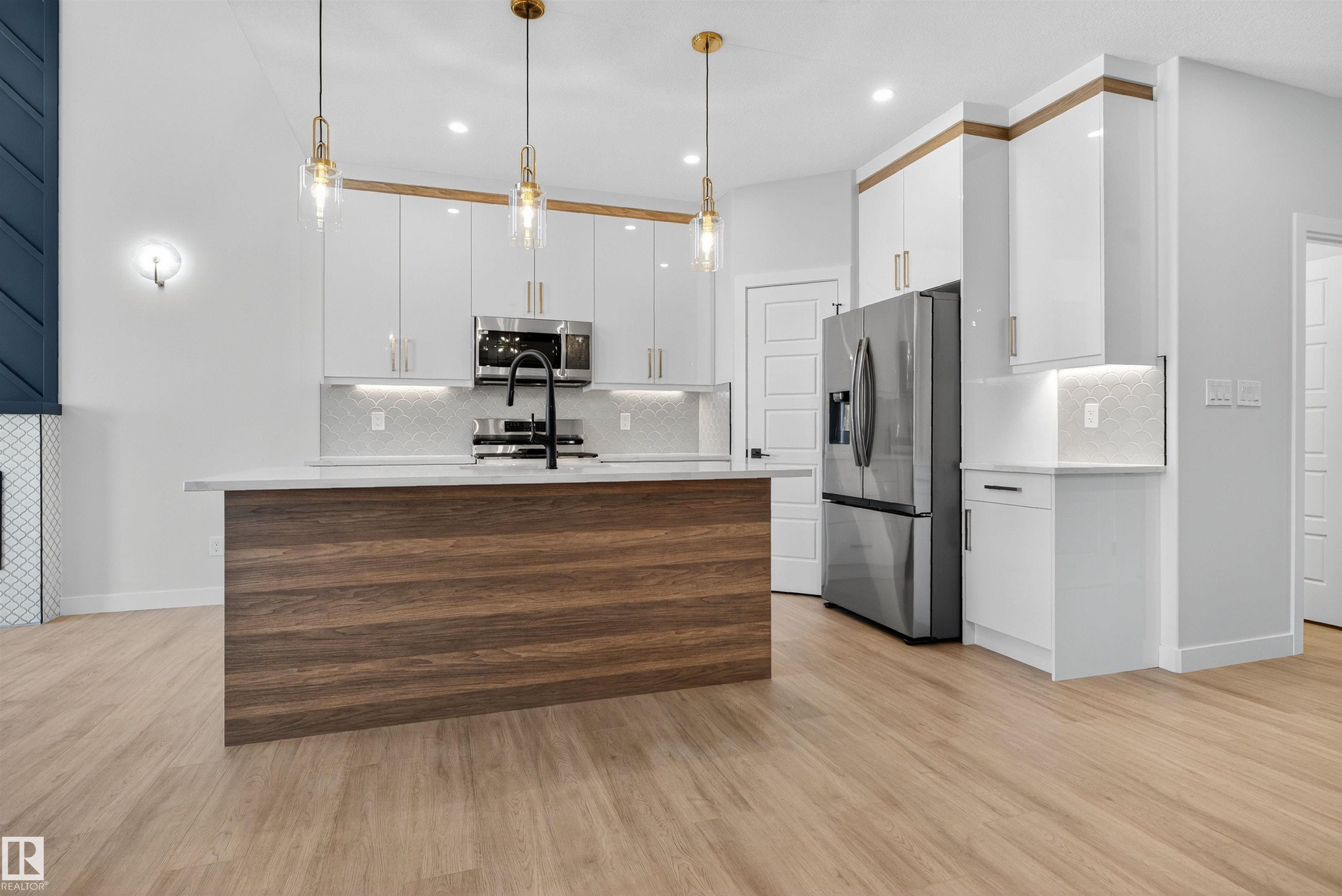RARE FIND! This half duplex with dbl attached garage offers the space and feel of a detached single-family home. Built by Sunnyview Homes- Only two of its kind in the area. The main floor features a bedroom and a full bath. The open to below living room boasts an electric fireplace with feature wall. The upgraded kitchen with a central island, quartz countertops, 2-toned ceiling-height cabinetry with built in organizers, water line to the refrigerator, a gas line to the stove and a corner WI pantry and a good sized dining area. Going upstairs you'll find glass railing with maple handrail and step lighting, a bonus room, WI laundry room with sink. The primary bedroom features a WIC, coffered ceiling, accent wall, a luxurious 5-pc ensuite including a 6-jet Jacuzzi tub. This level has 2 additional good sized bedrooms sharing a 4 piece bathroom. Situated on a generous lot, this home offers a SEPARATE SIDE entrance to the bsmt. The garage is equipped with a gas line and floor drain. All Appliances included!