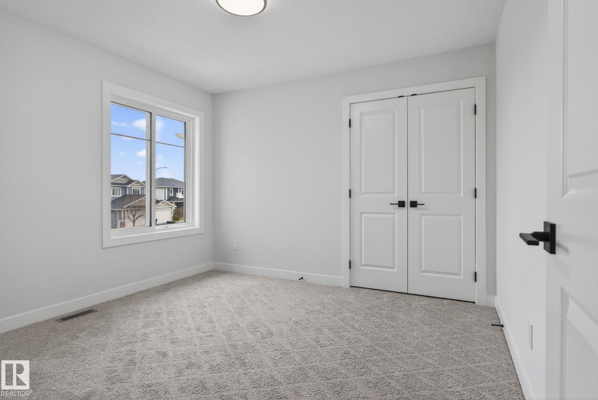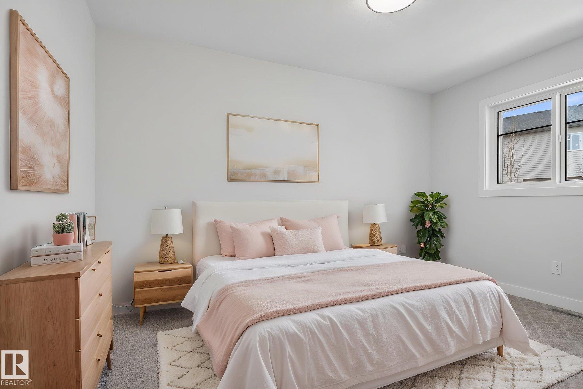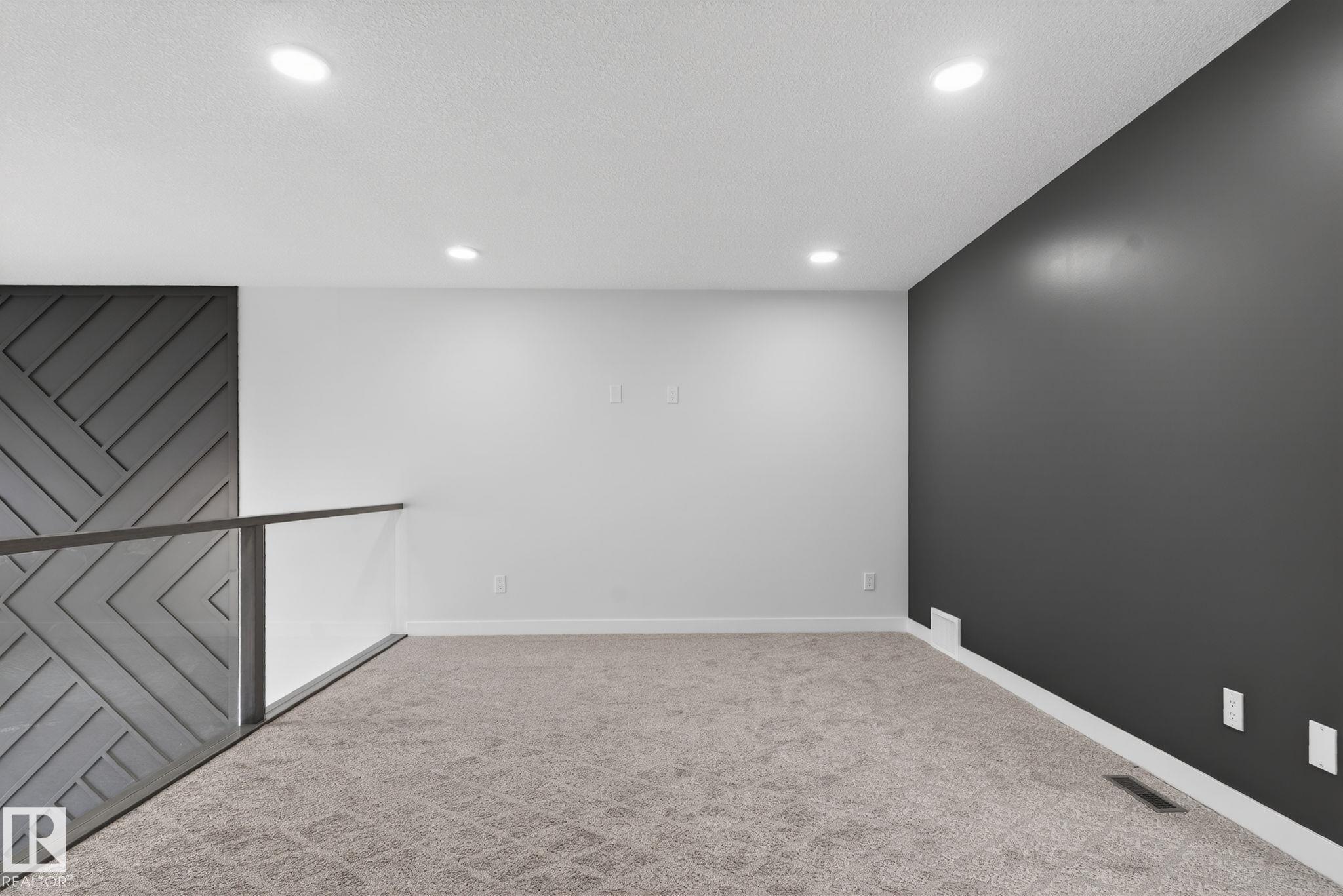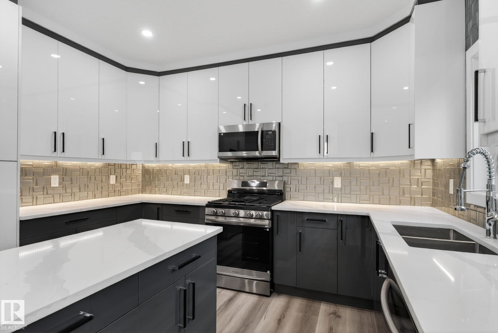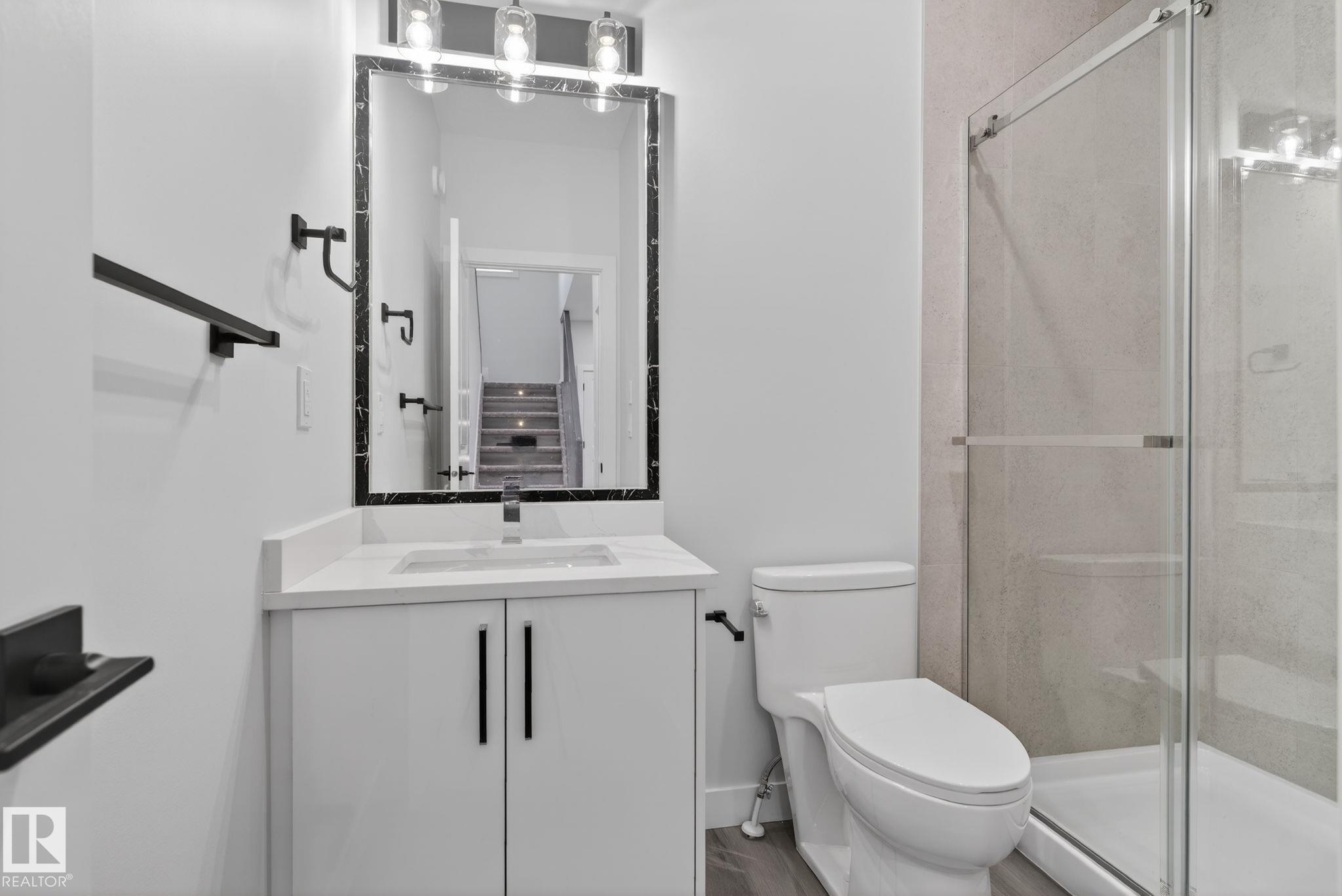RARE FIND! Built by Sunnyview Homes this half duplex boasts over 2100sqft. OVERSIZED double attached garage with a HUGE 4 car driveway. Main floor den/bedroom with a 3-piece bathroom. The U-shaped kitchen features, upgraded ceiling height cabinets with quartz countertops. The open to below living space has a feature wall with an electric fireplace. The glass railing with step lights leads upstairs to a good sized bonus room over looking the living room. Primary bedroom features a WIC and 5-piece ensuite with double vanity, jacuzzi and custom shower w/bench for added convenience. Additionally there are 2 good sized bedrooms that share a 4-piece bathroom. Features upper level laundry, a separate side entrance to the basement, large backyard, 3 gas lines, garage drain, plush carpet, premium lighting package, MDF shelving and much more. Plenty of large windows throughout. Close to shopping, schools, and public transportation. The size and upgrades are a rare find for a duplex! Must see.