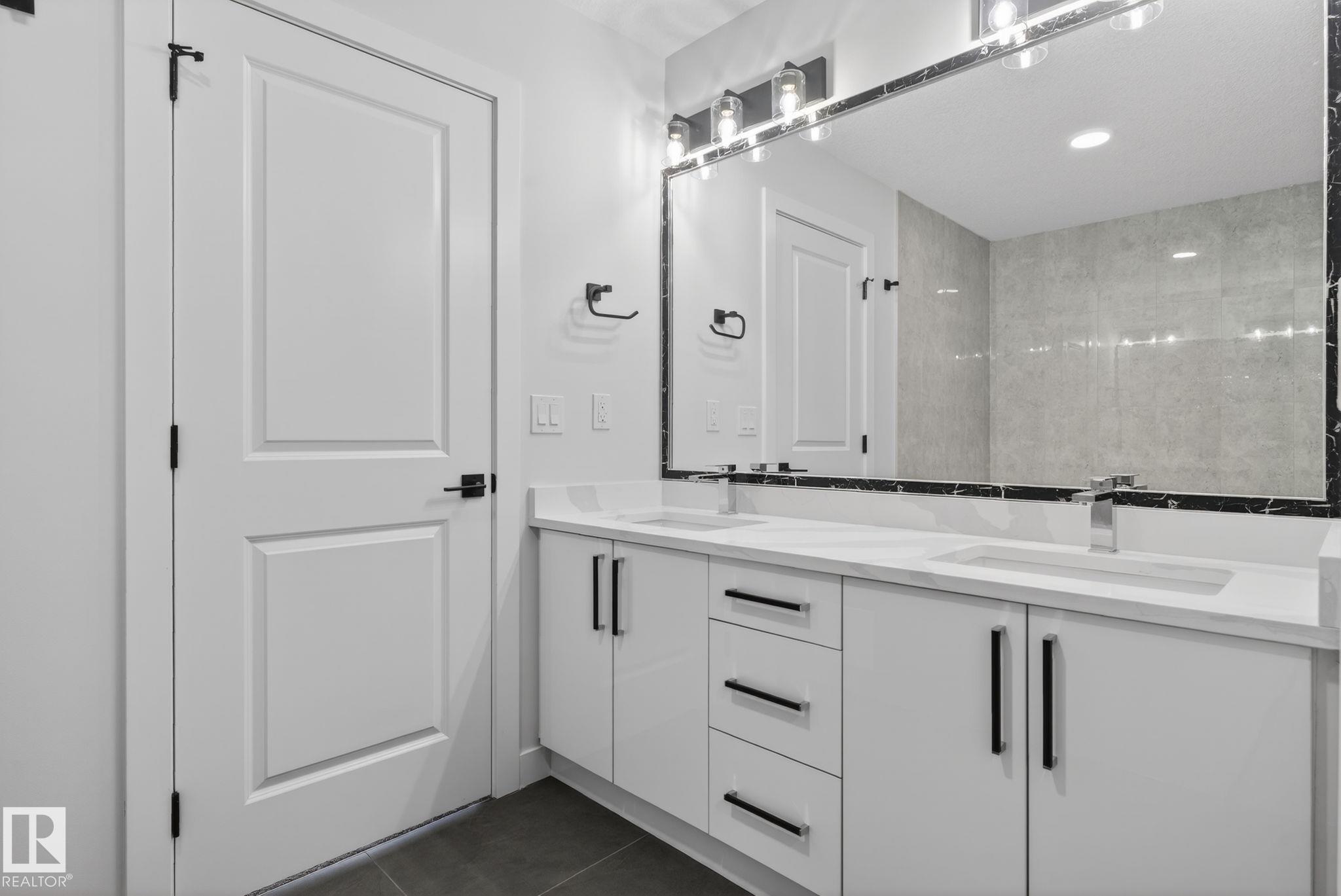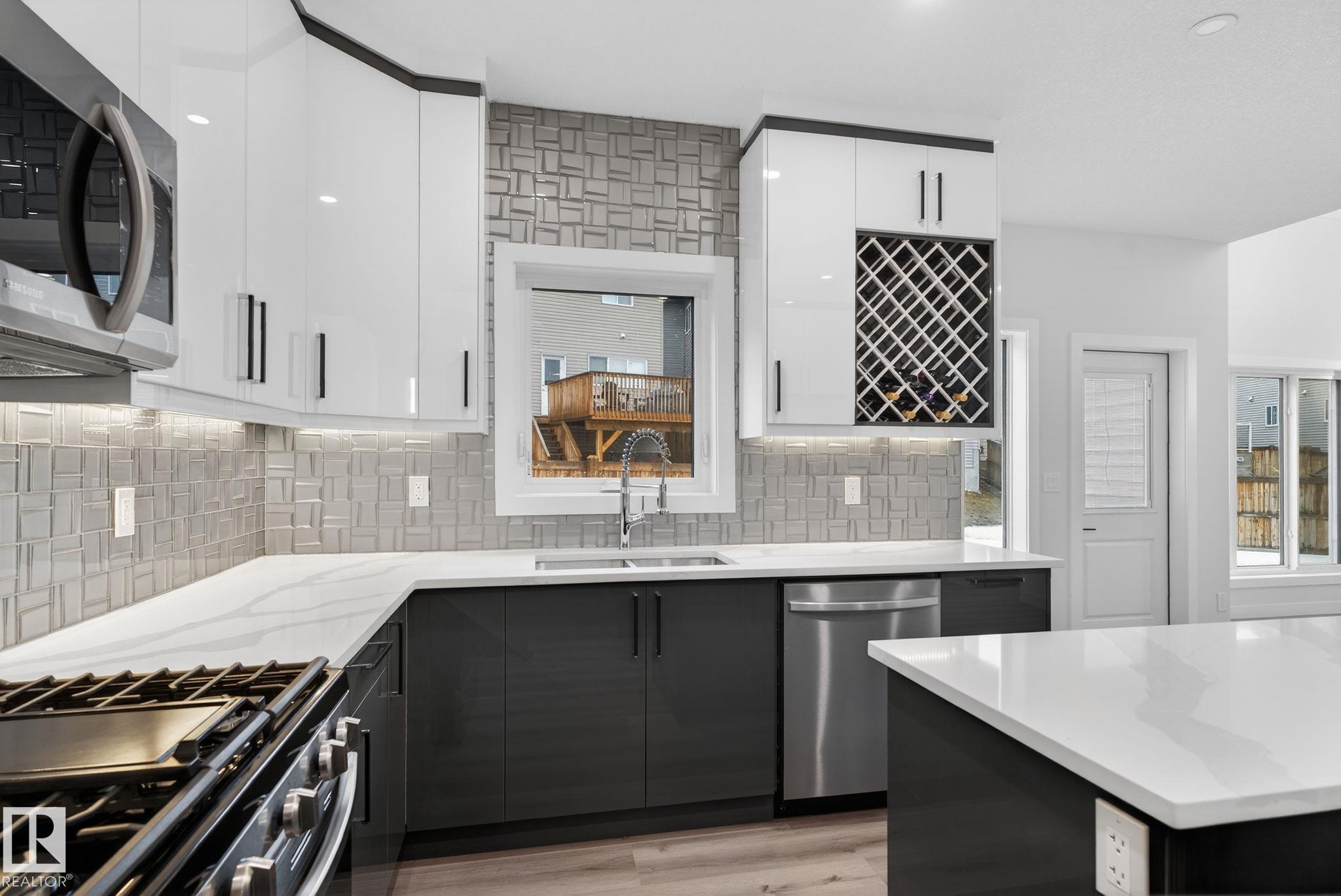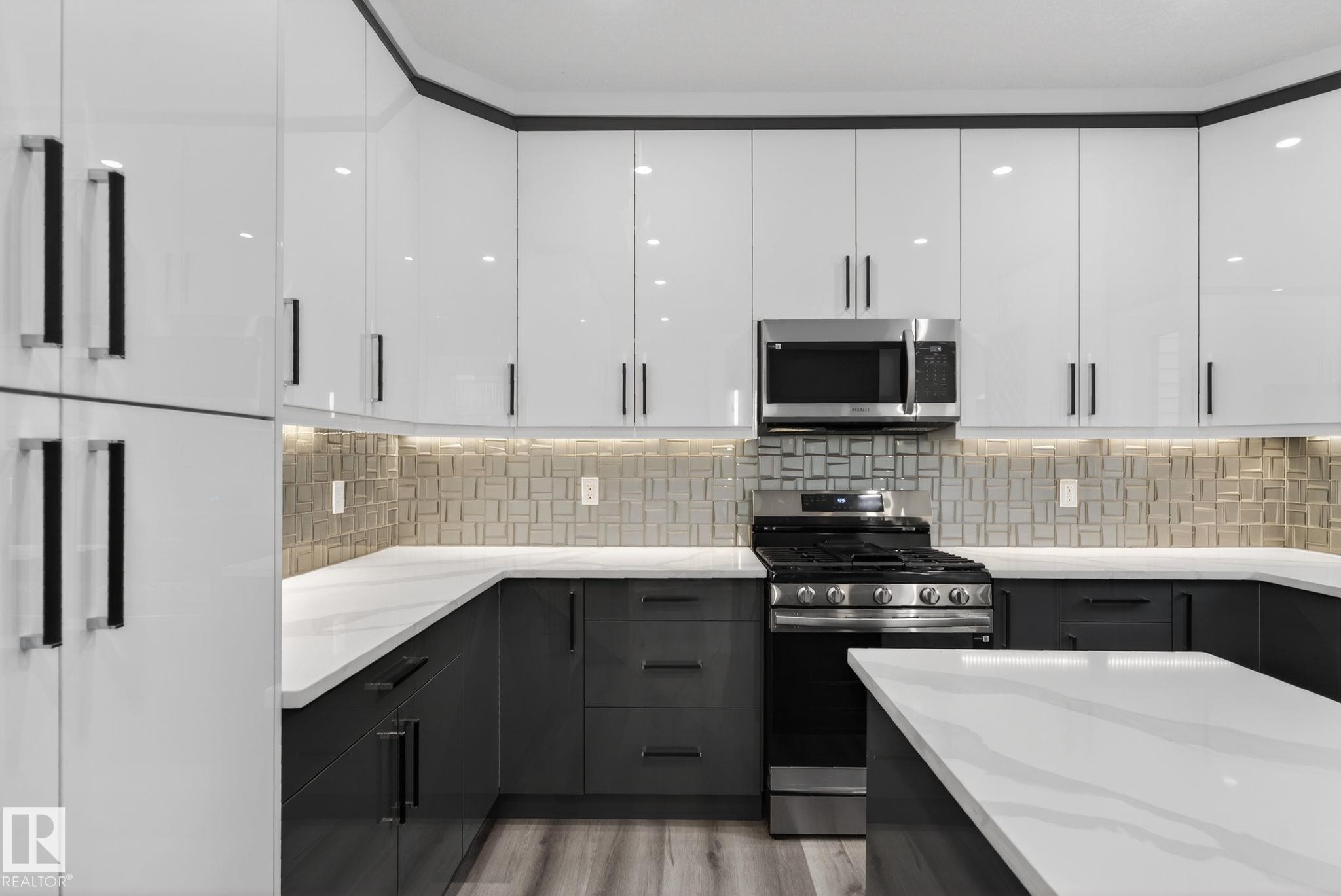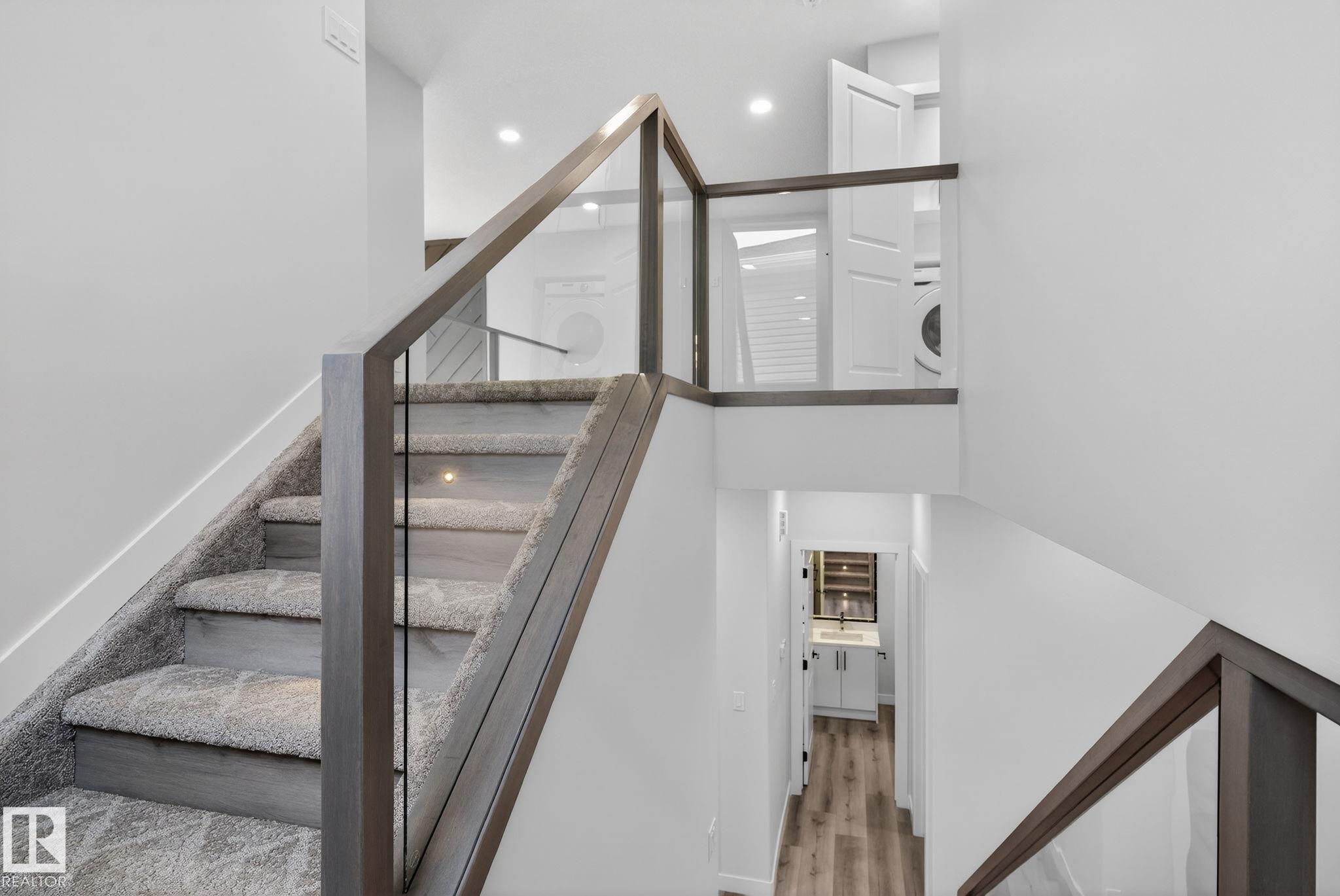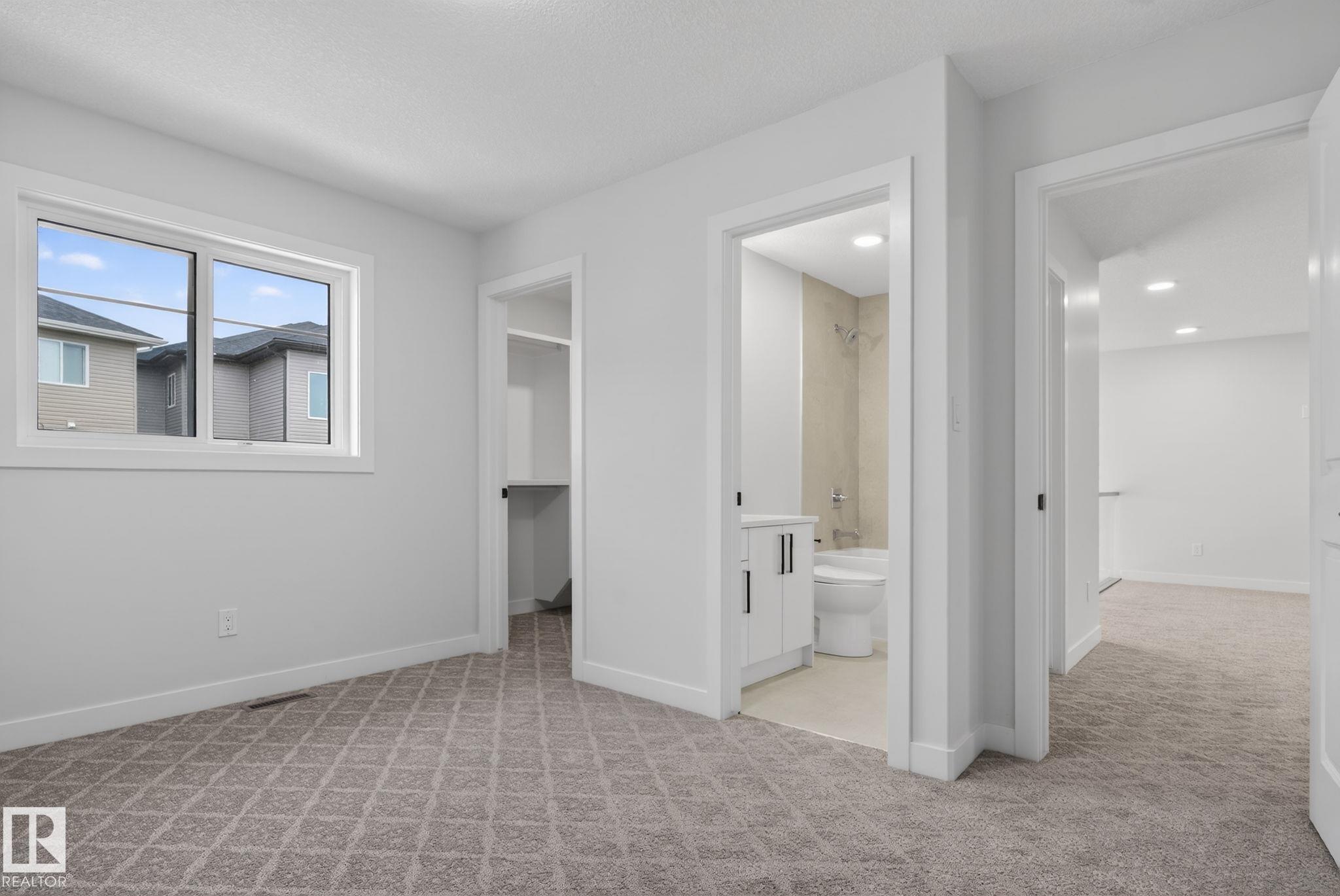RARE FIND! Built by Sunnyview Homes this half duplex boasts over 2100sqft. OVERSIZED double attached garage with a HUGE 4 car driveway. Main floor den/bedroom with a 3-piece bathroom. The U-shaped kitchen features, upgraded ceiling height cabinets with quartz countertops. The open to below living space has a feature wall with an electric fireplace. The glass railing with step lights leads upstairs to a good sized bonus room over looking the living room. Primary bedroom features a WIC and 5-piece ensuite with double vanity, jacuzzi and custom shower w/bench for added convenience. Additionally there are 2 good sized bedrooms that share a 4-piece bathroom. Features upper level laundry, a separate side entrance to the basement, large backyard, 3 gas lines, garage drain, plush carpet, premium lighting package, MDF shelving and much more. Plenty of large windows throughout. Close to shopping, schools, and public transportation. The size and upgrades are a rare find for a duplex! Must see.