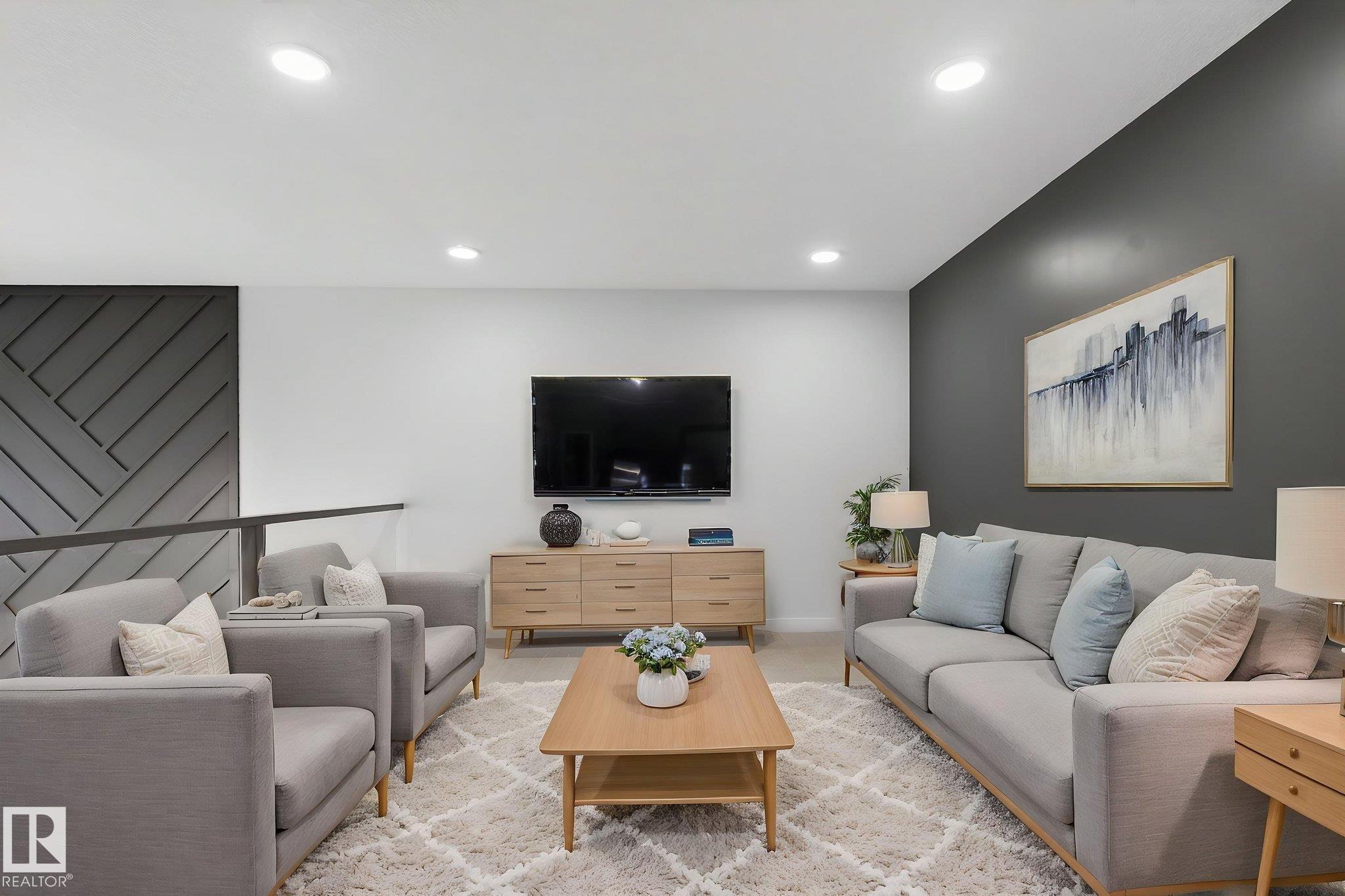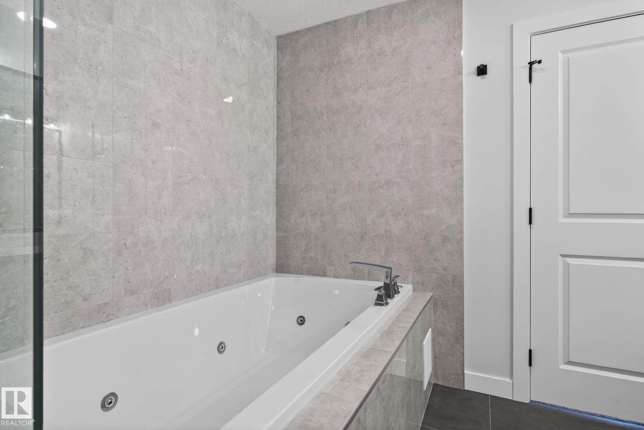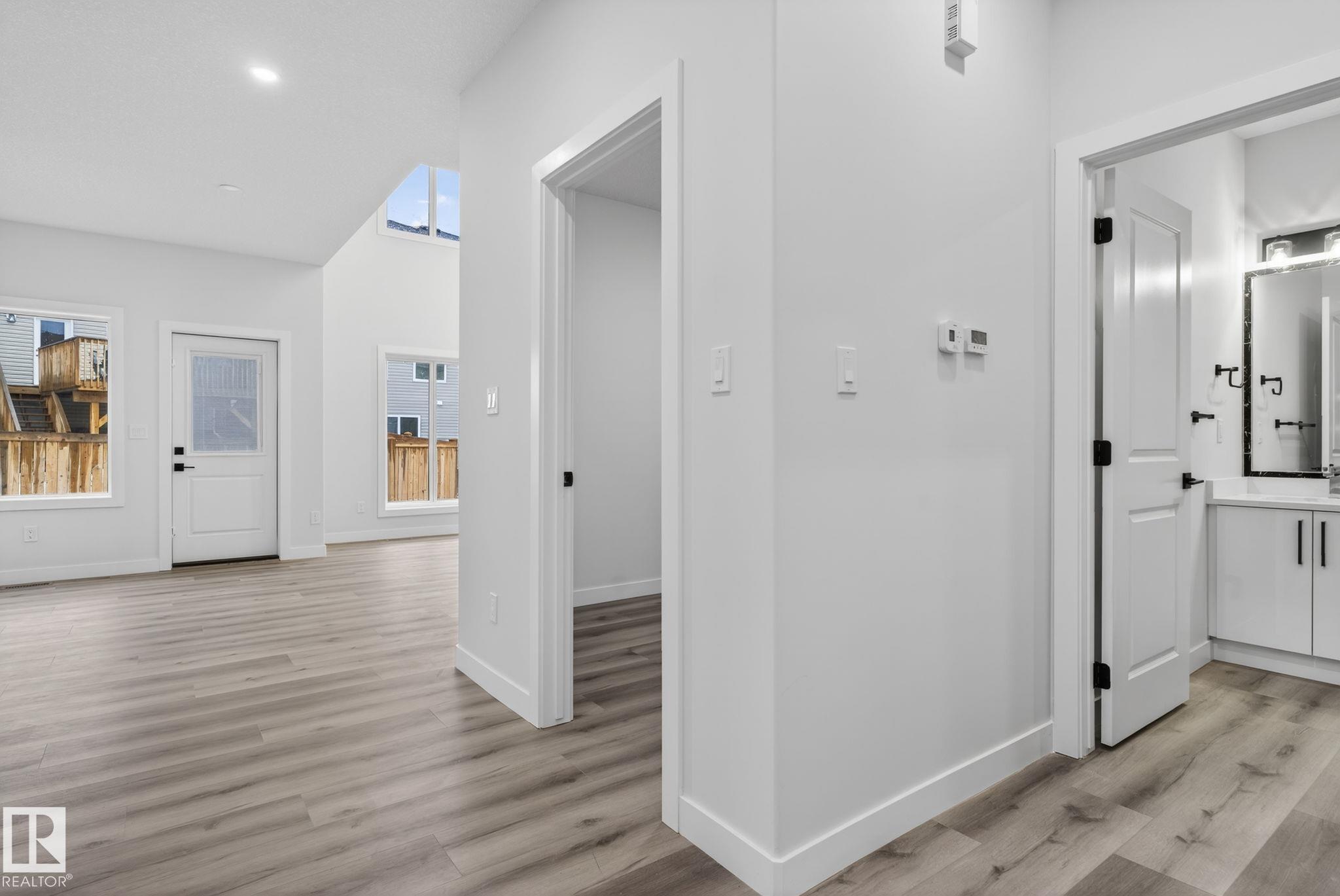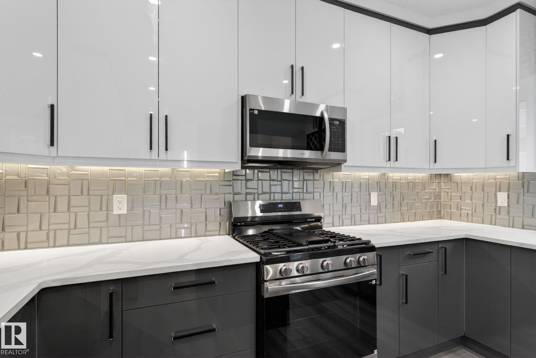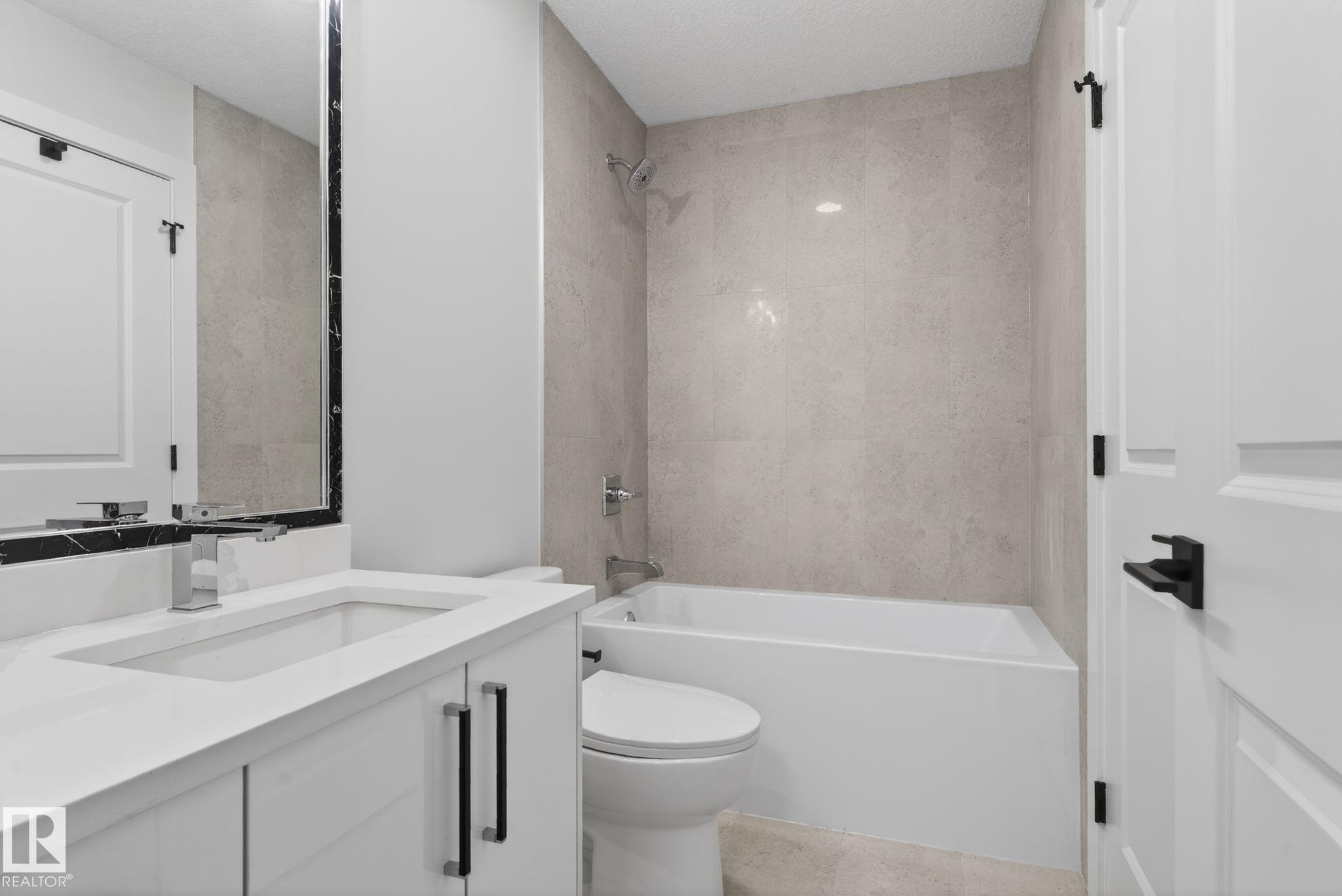 RARE FIND! Built by Sunnyview Homes this half duplex boasts over 2100sqft. OVERSIZED double attached garage with a HUGE 4 car driveway. Main floor den/bedroom with a 3-piece bathroom. The U-shaped kitchen features, upgraded ceiling height cabinets with quartz countertops. The open to below living space has a feature wall with an electric fireplace. The glass railing with step lights leads upstairs to a good sized bonus room over looking the living room. Primary bedroom features a WIC and 5-piece ensuite with double vanity, jacuzzi and custom shower w/bench for added convenience. Additionally there are 2 good sized bedrooms that share a 4-piece bathroom. Features upper level laundry, a separate side entrance to the basement, large backyard, 3 gas lines, garage drain, plush carpet, premium lighting package, MDF shelving and much more. Plenty of large windows throughout. Close to shopping, schools, and public transportation. The size and upgrades are a rare find for a duplex! Must see.