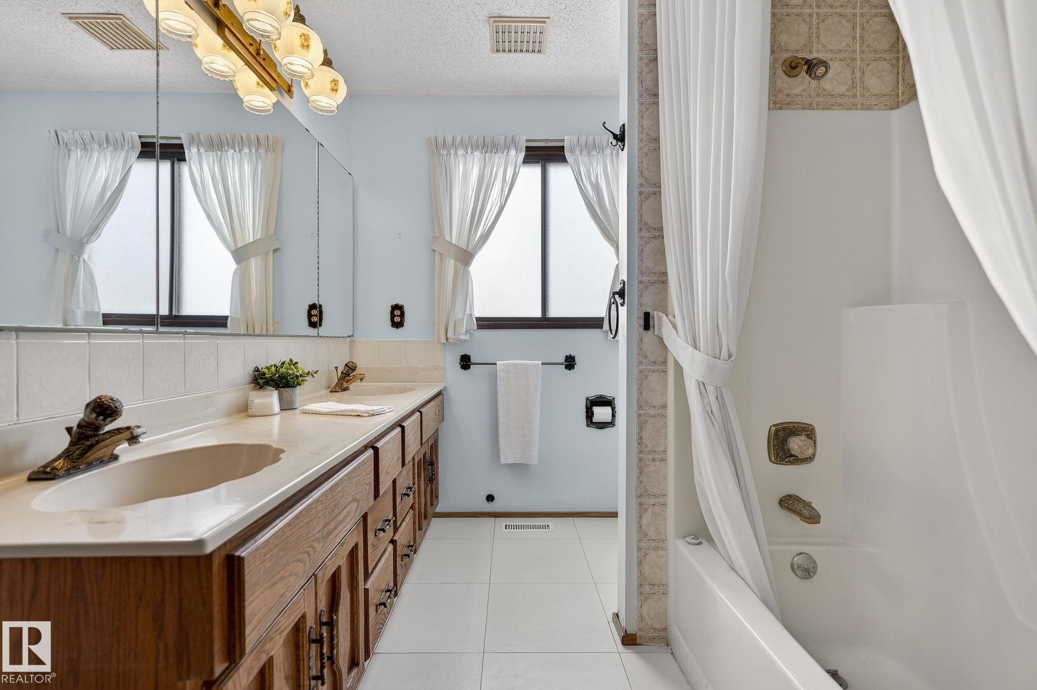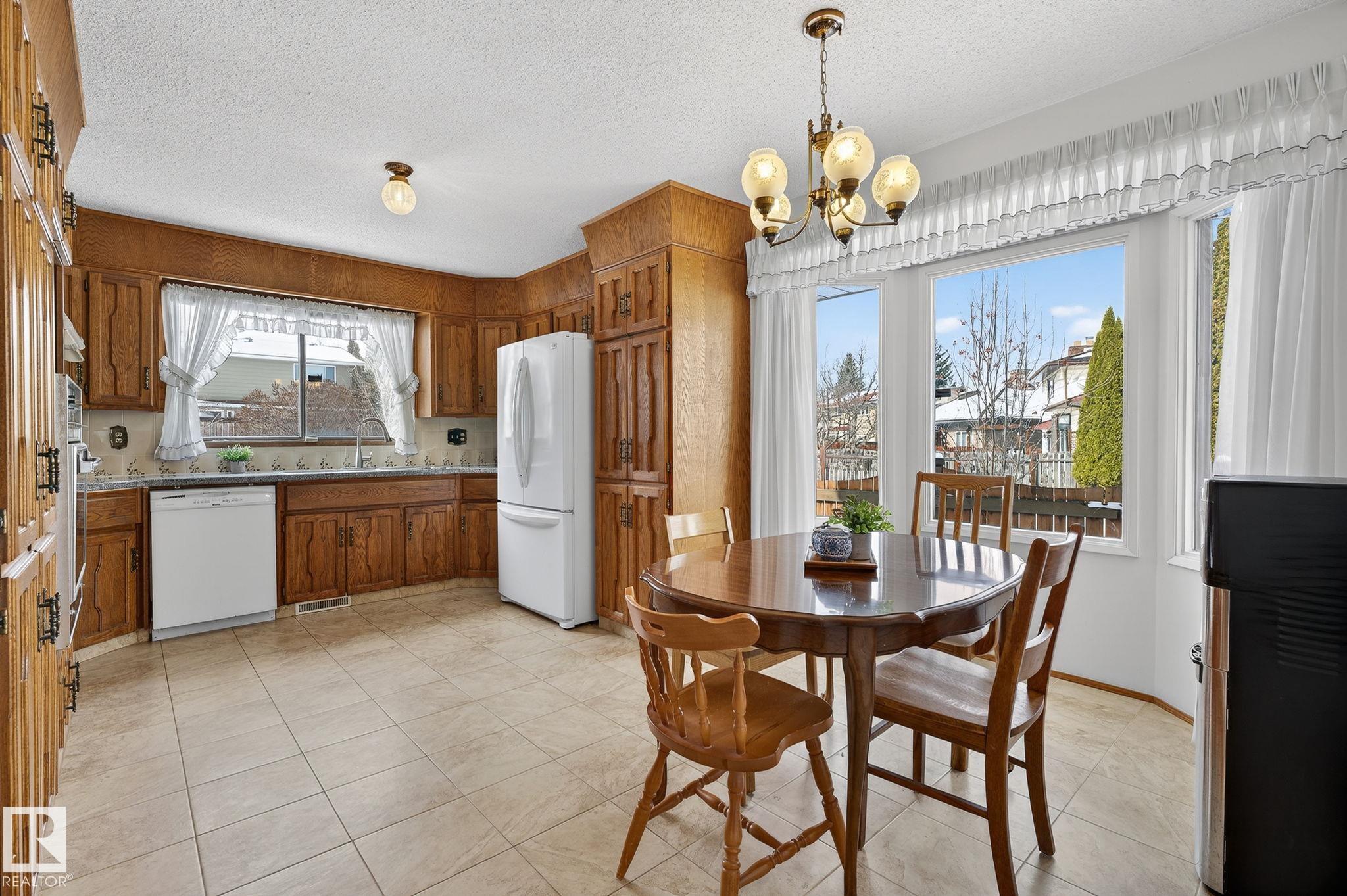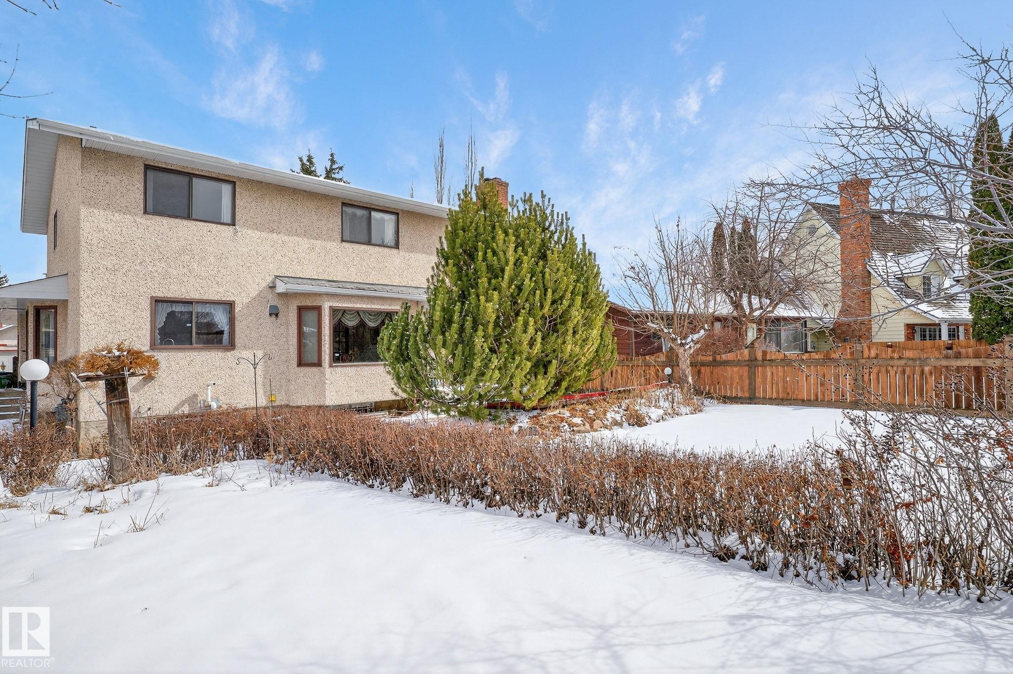 Home Sweet Home! Welcome to this classic Ace Lange built family home in the highly sought after neighbourhood of Ramsay Heights! Lovingly maintained by the current owner for the past 33 years. Main floor boasts an inviting foyer. Spacious living room with large bow windows. Cozy family room has brick featured fireplace & built-in shelvings, patio door onto the patio. A sun-lit formal dining room with double french door & bay window overlooking the huge private fenced yard. Kitchen has ample cabinets & garden window over the sink. Bright and cheery eating nook with another bay window. Conveniently located laundry room with window that is adjacent to the mud room, a full bath and side door. Upper level features an enormous master bedroom with a jacuzzi ensuite. Three more spacious bedrooms at the back (2 w/double closets) & a main bath. Lower level is nicely finished w/ an entertaining size rec room, beautiful wet bar & a washroom (R/I for shower) . Close to all amenities w/easy access onto the Whitemud.