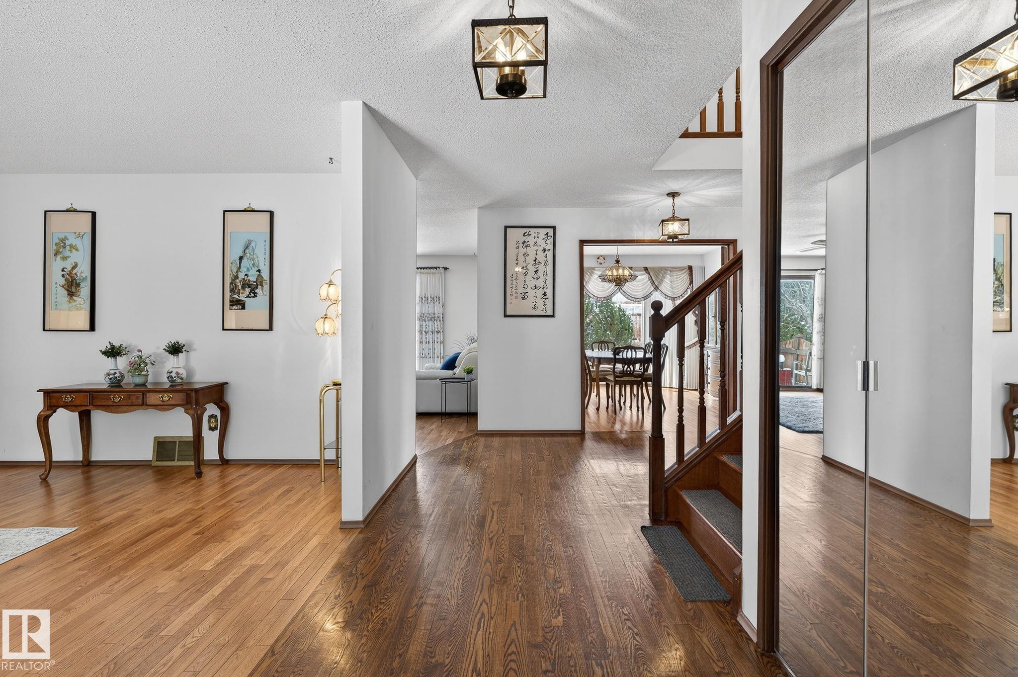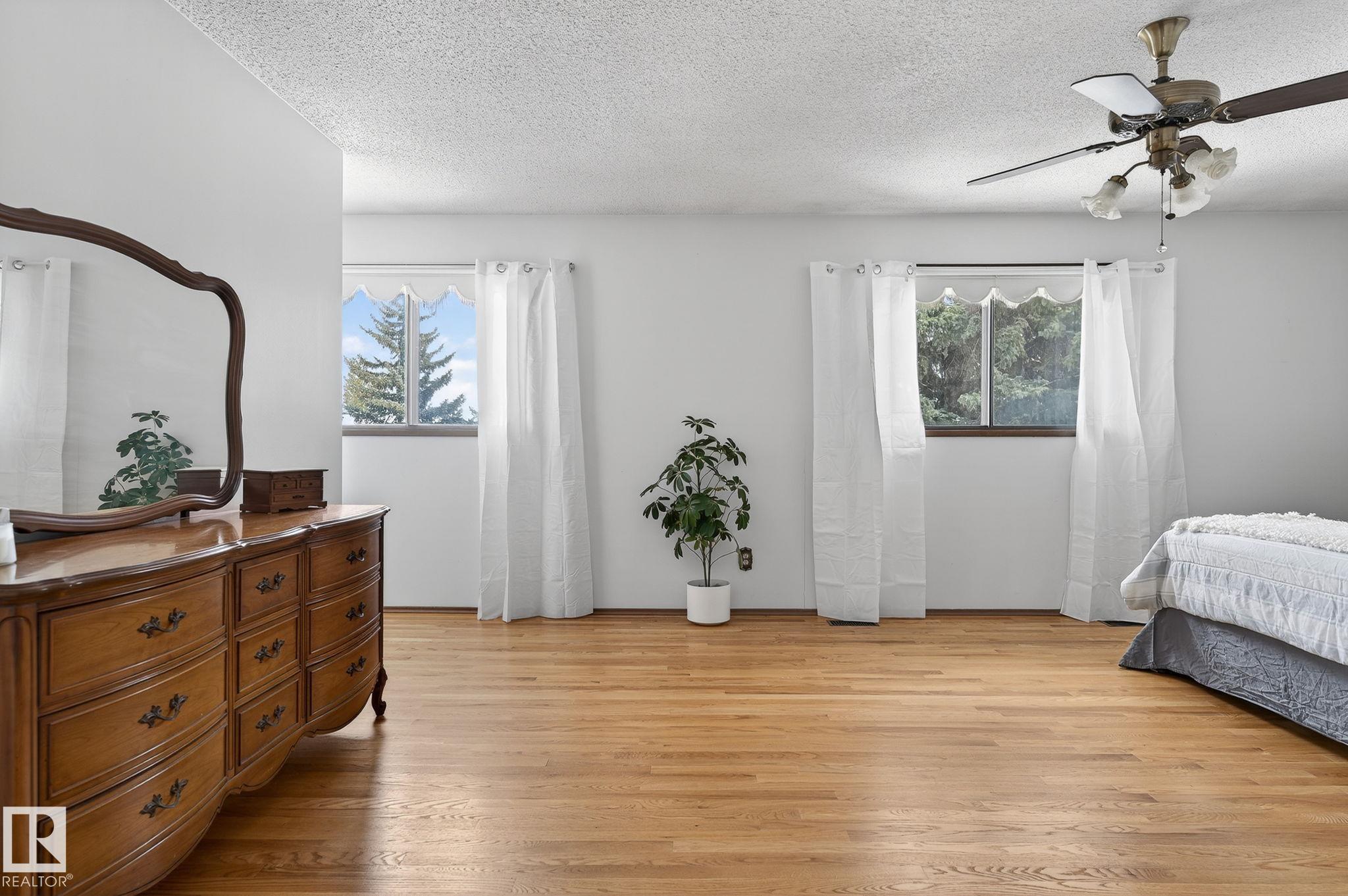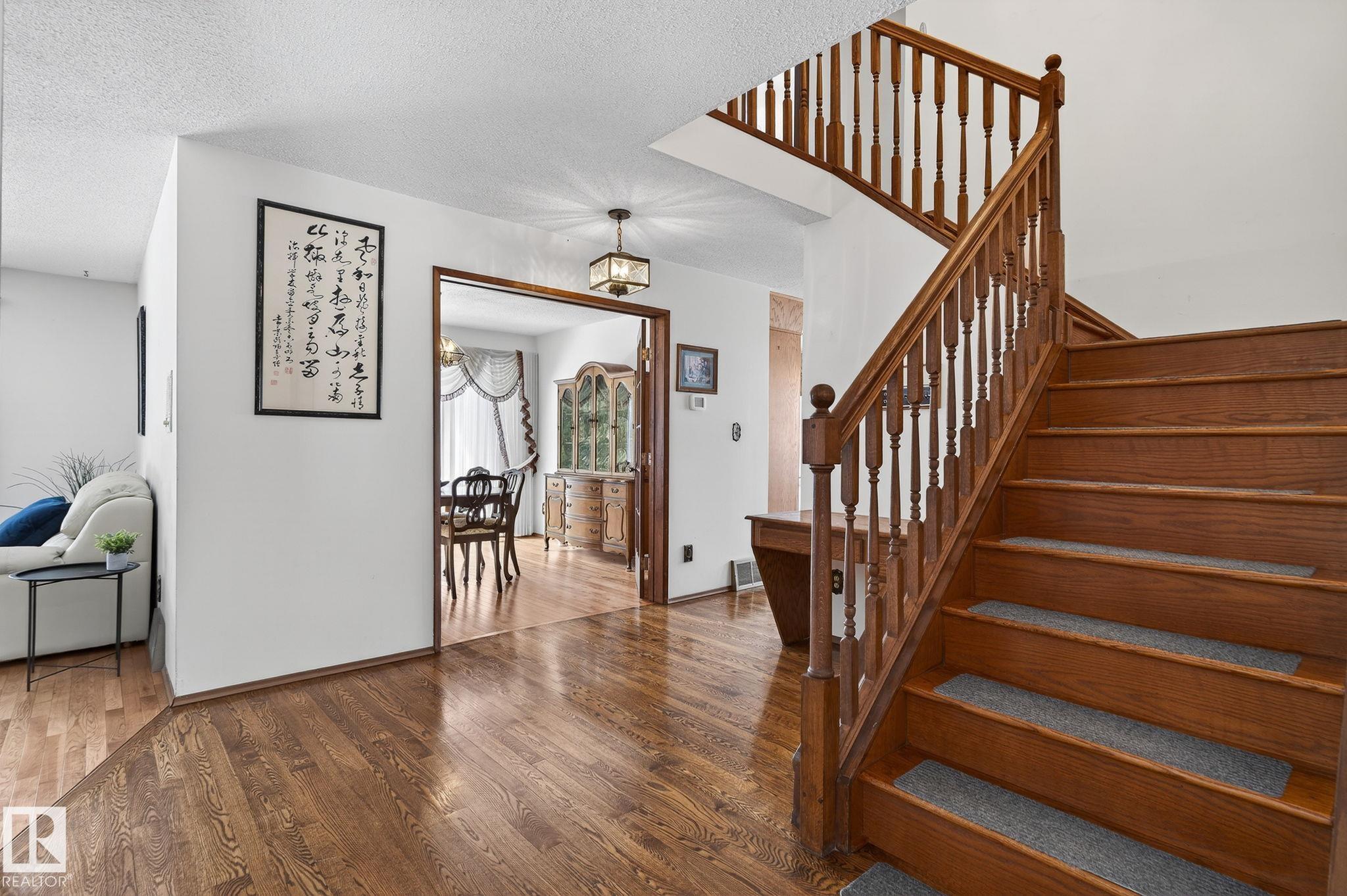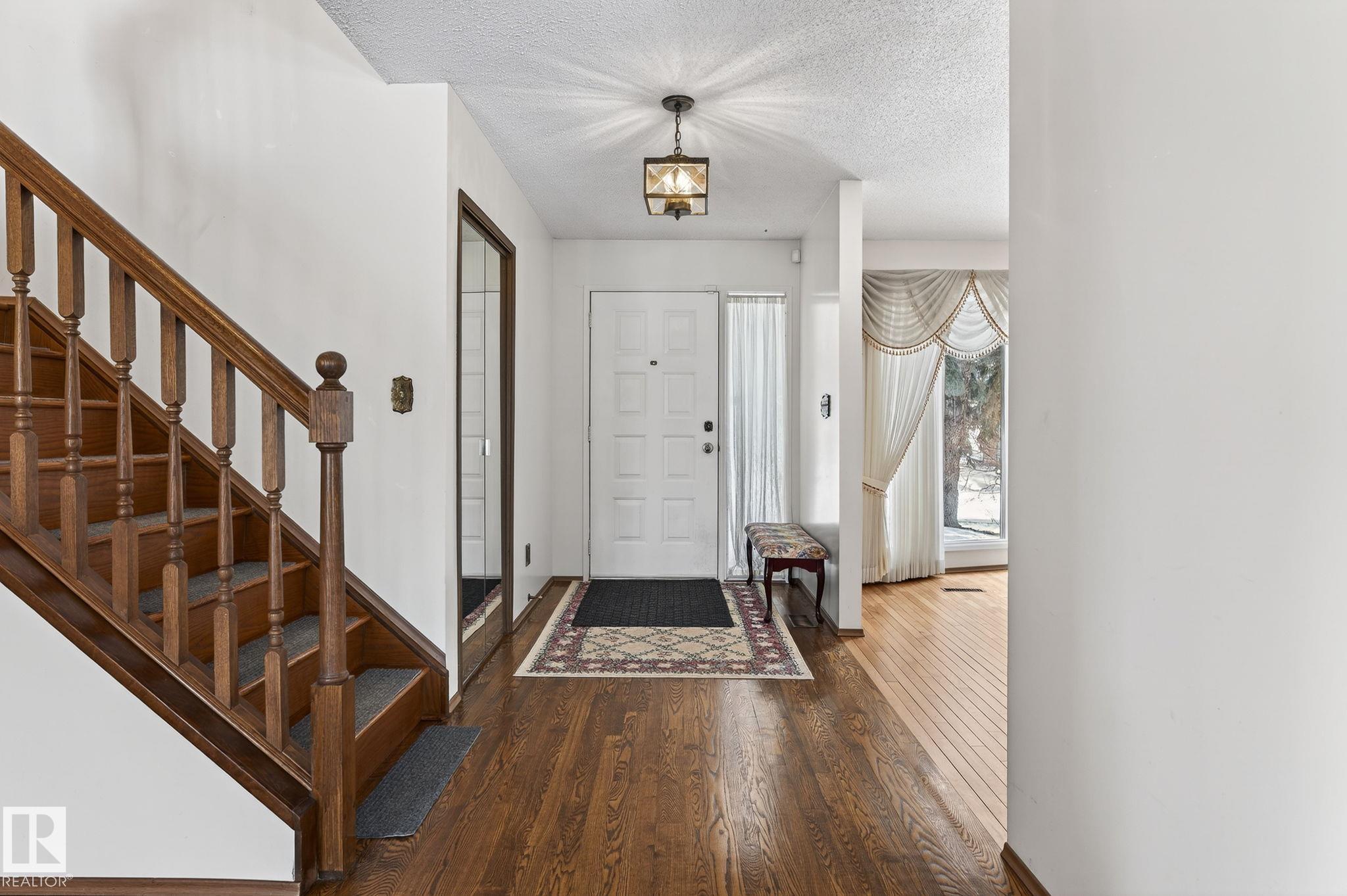 Home Sweet Home! Welcome to this classic Ace Lange built family home in the highly sought after neighbourhood of Ramsay Heights! Lovingly maintained by the current owner for the past 33 years. Main floor boasts an inviting foyer. Spacious living room with large bow windows. Cozy family room has brick featured fireplace & built-in shelvings, patio door onto the patio. A sun-lit formal dining room with double french door & bay window overlooking the huge private fenced yard. Kitchen has ample cabinets & garden window over the sink. Bright and cheery eating nook with another bay window. Conveniently located laundry room with window that is adjacent to the mud room, a full bath and side door. Upper level features an enormous master bedroom with a jacuzzi ensuite. Three more spacious bedrooms at the back (2 w/double closets) & a main bath. Lower level is nicely finished w/ an entertaining size rec room, beautiful wet bar & a washroom (R/I for shower) . Close to all amenities w/easy access onto the Whitemud.