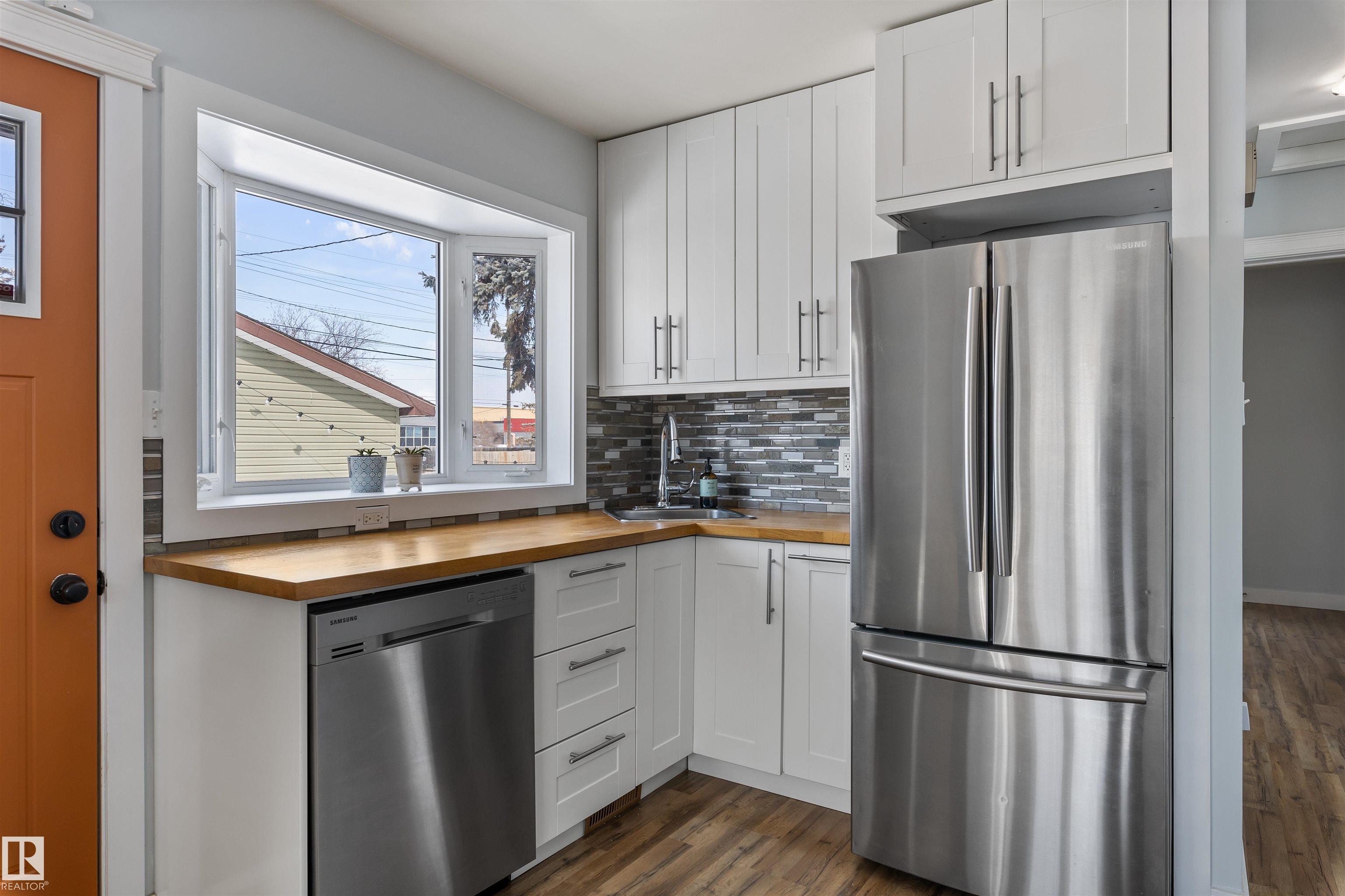 WELL, WELL, WELL! Well-located, well-built, and well-maintained home in desirable DOVERCOURT. Offering four bedrooms and two bathrooms, this home features a functional, well-designed floor plan ideal for families or investors alike. Recent upgrades include a beautifully renovated kitchen and bathrooms, freshly painted throughout, vinyl windows, a newer furnace and hot water tank, CENTRAL AIR CONDITIONING, upgraded plumbing and electrical, newer shingles, fascia, and siding w/insulation, as well as a recently installed sump pump and weeping tile. The property sits on a 6,500+ sq ft lot that has been tastefully landscaped, complete with newer walkways and a front driveway, in addition to an OVERSIZED DOUBLE DETACHED GARAGE. Conveniently located near schools and playgrounds, with easy access to downtown, Yellowhead Trail, and St. Albert Trail, this home offers excellent connectivity to all amenities. An outstanding opportunity in a sought-after location, MAKE YOUR MOVE TODAY!