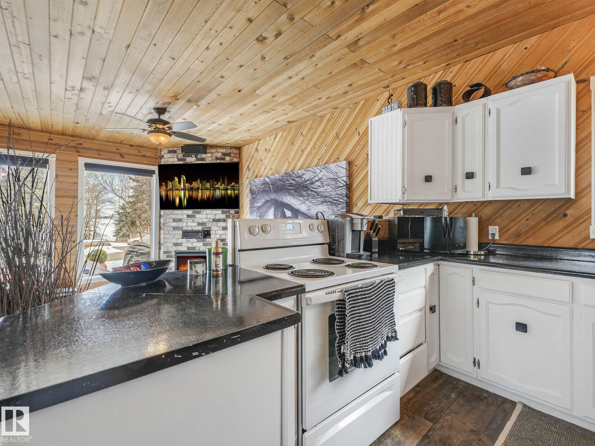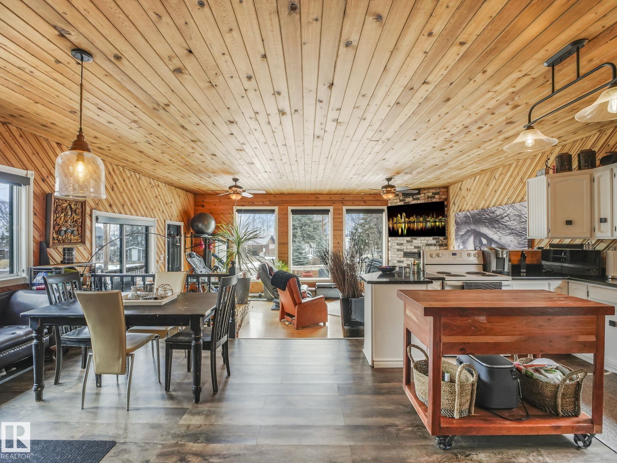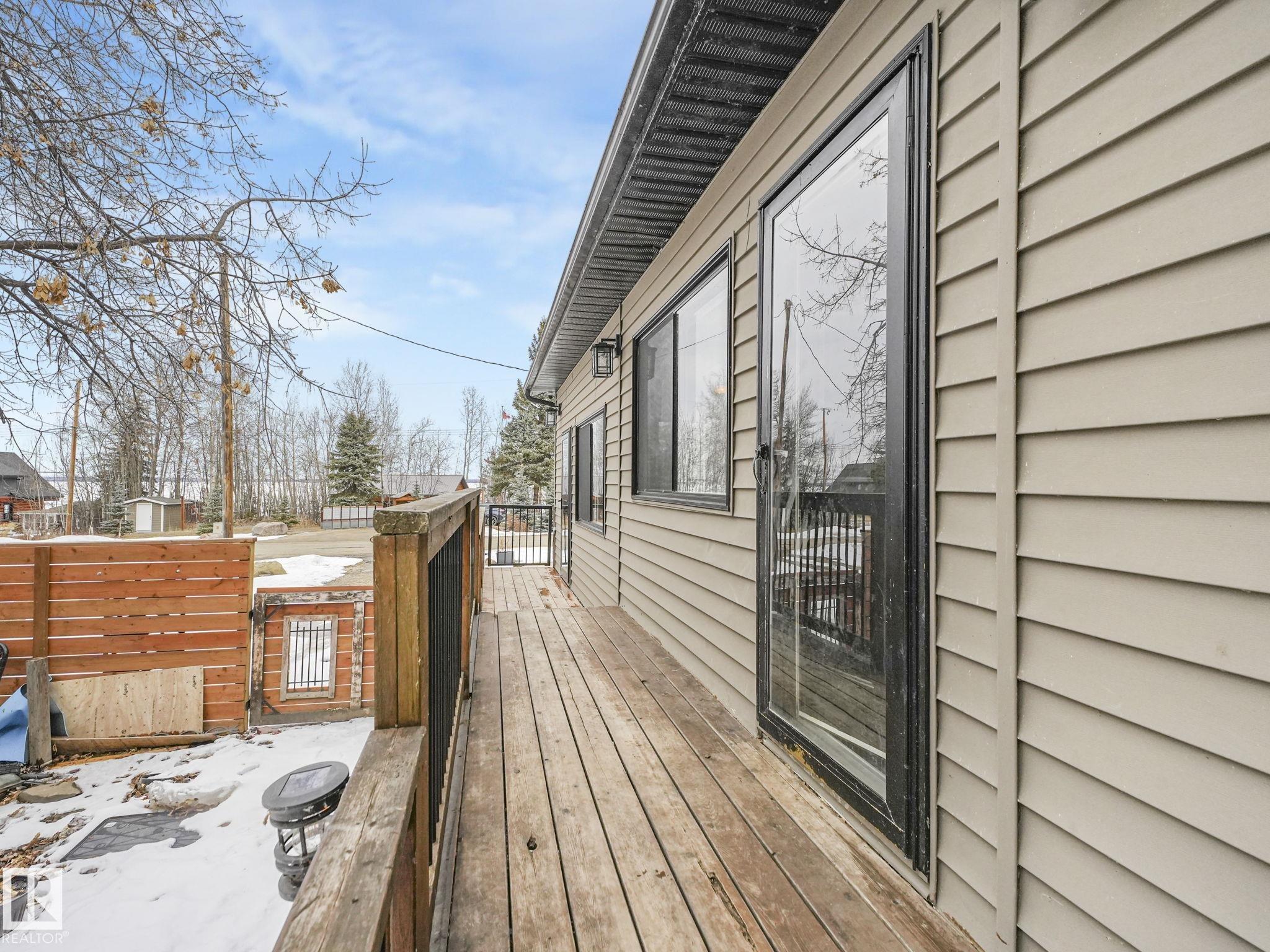 Welcome to this inviting 1,260 sq. ft. bungalow offering year round living in a sought-after location across from the playground, second row lake property, gorgeous lake view and boat access right out front! This 3-bedroom home showcases an updated bathroom and tasteful finishes throughout, including newer flooring, modern lighting, and warm cedar accents. The sunken living room features a cozy fireplace, vaulted ceiling, and large windows that capture beautiful lake views. Outside, enjoy a private, treed backyard complete with a patio, pergola, and firepit, plus direct access to scenic trails leading to Pigeon Lake Village. Recent upgrades include a new roof, municipal sewer, newer siding, updated mechanical systems, and crawl space improvements. Additional highlights include a front deck, storage sheds, and easy access to the lake with a shared dock just a short walk away. A perfect blend of comfort, privacy, and lakeside living. Also minutes to the Village at Pigeon Lake!