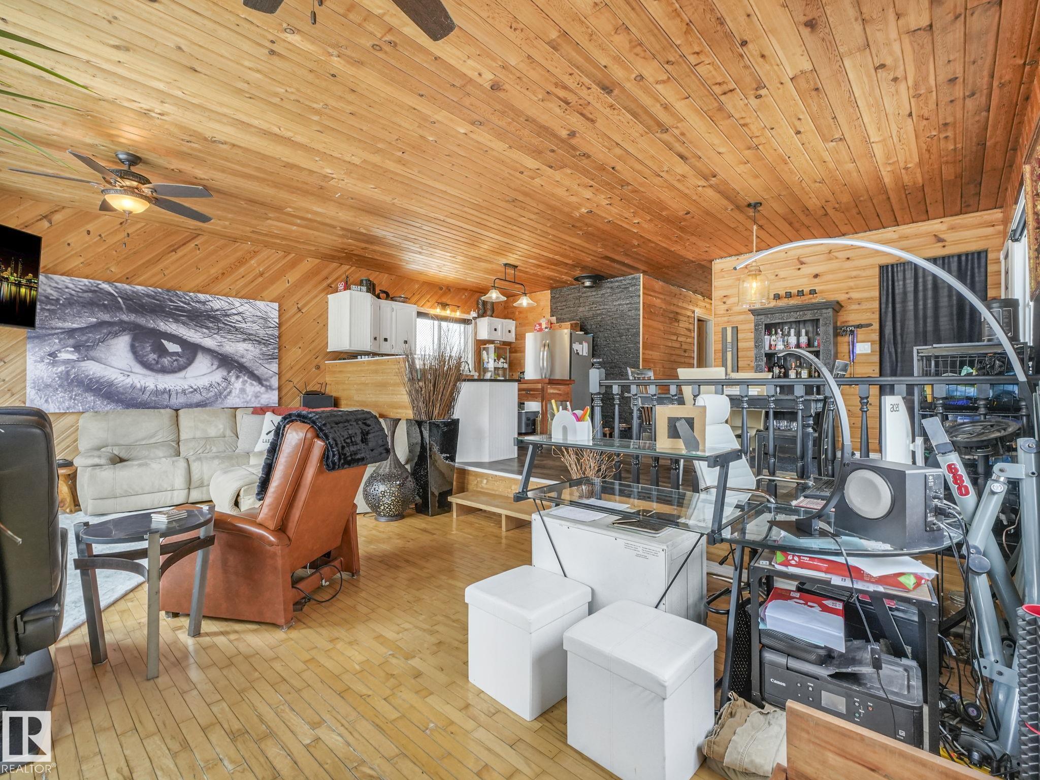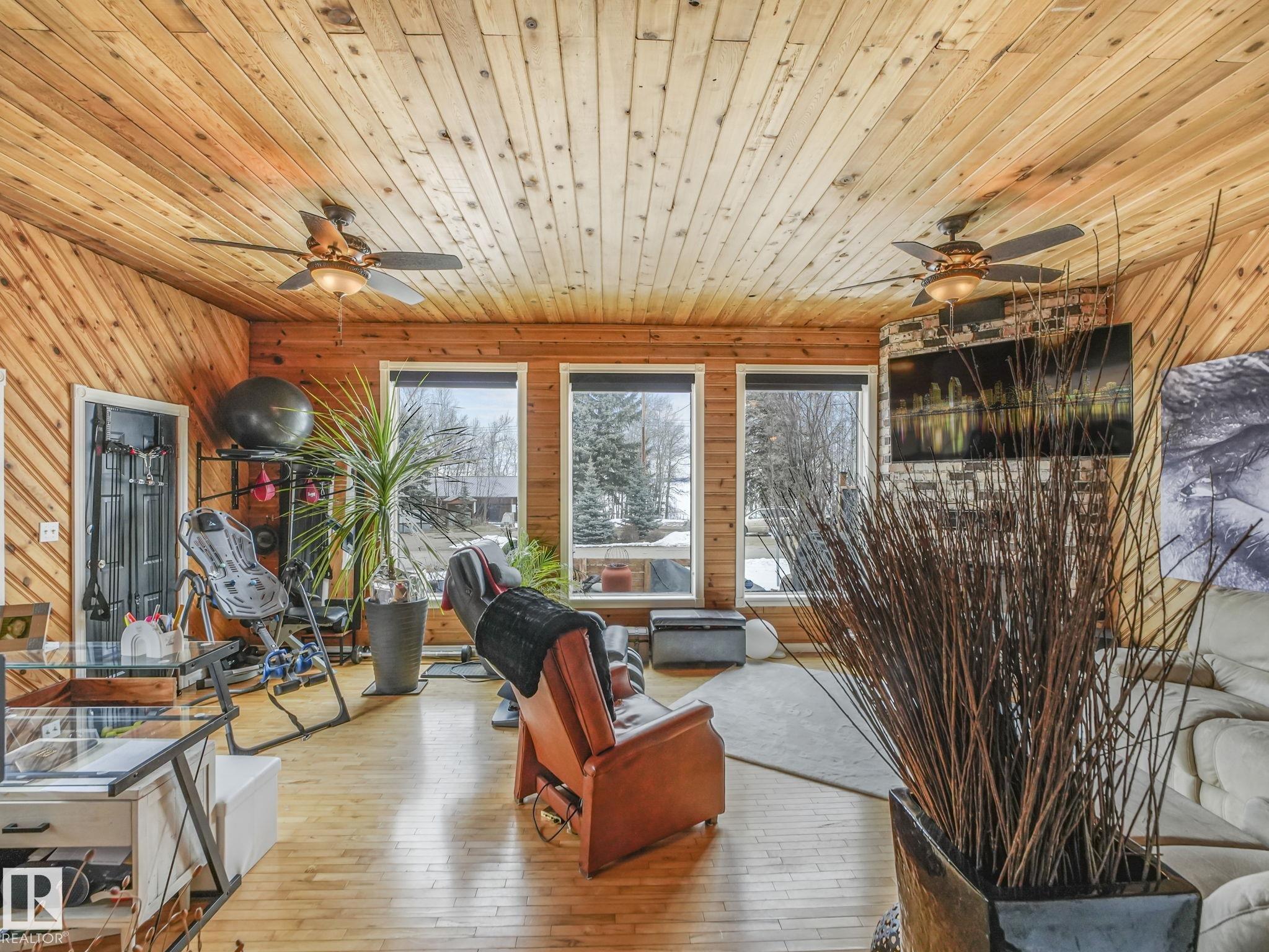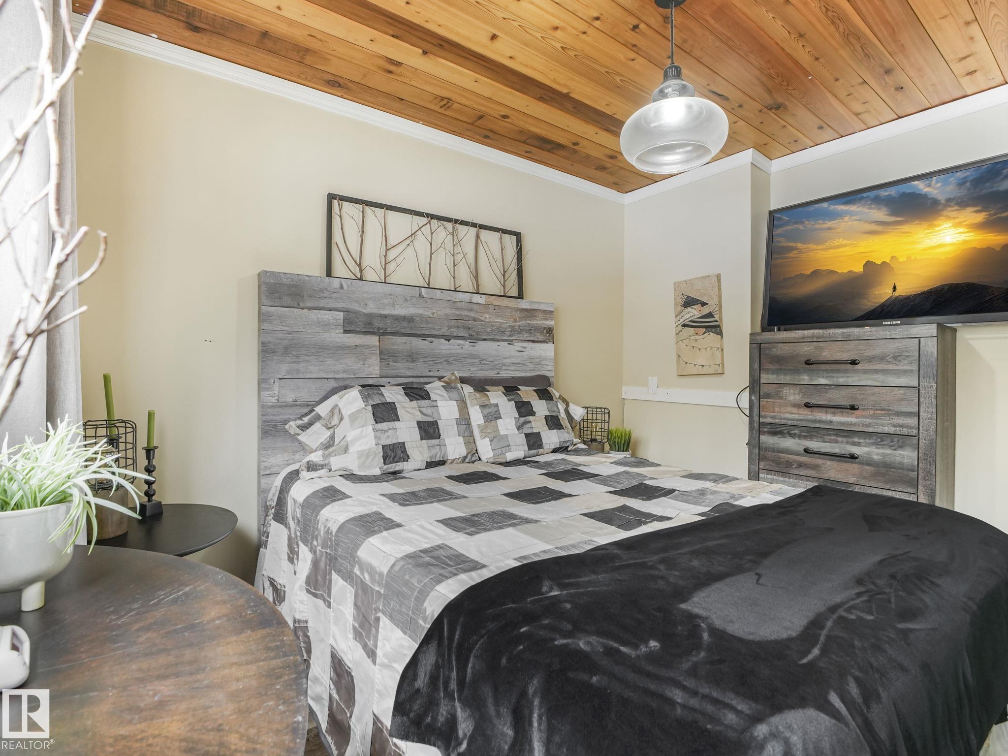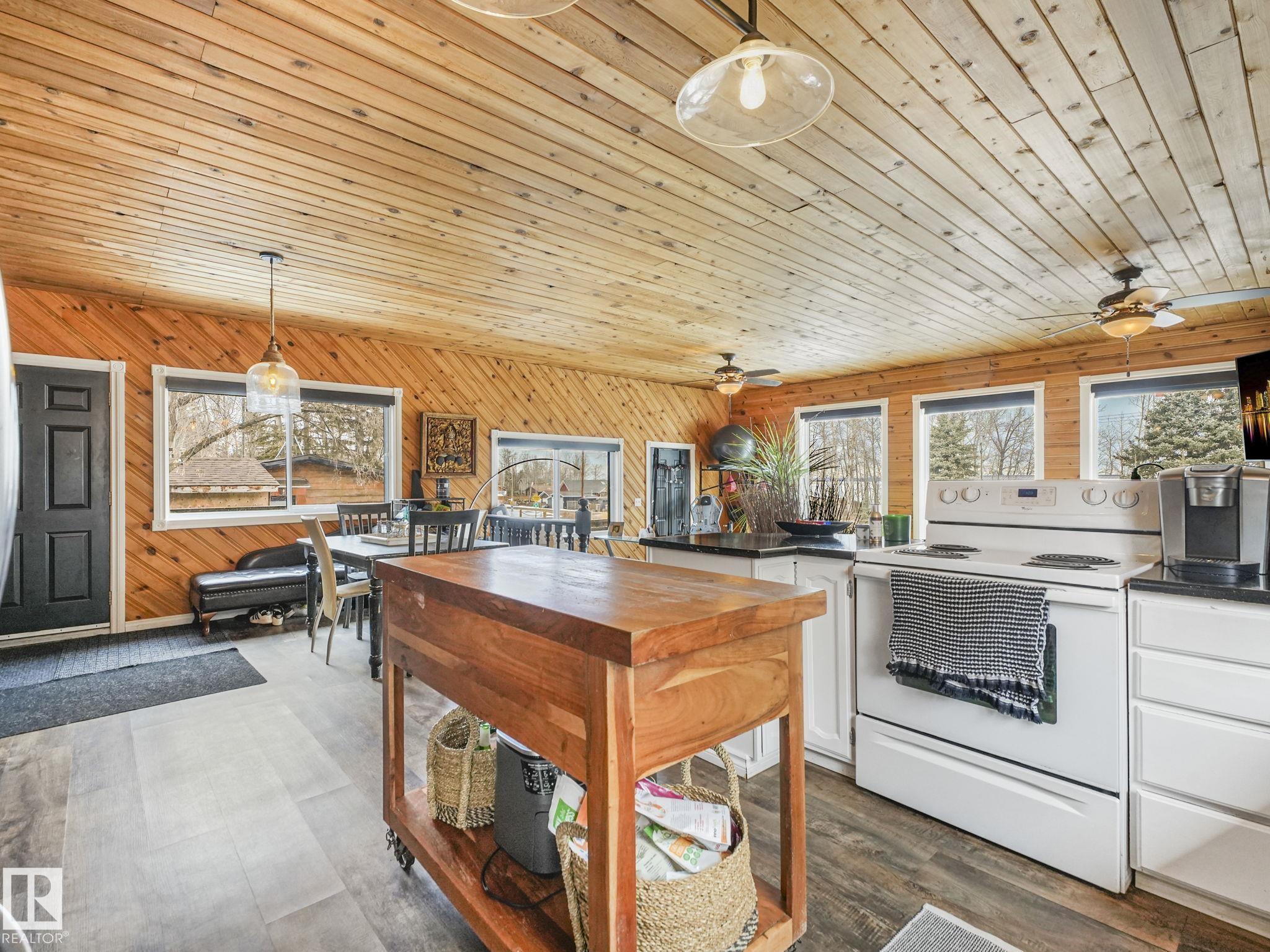 Welcome to this inviting 1,260 sq. ft. bungalow offering year round living in a sought-after location across from the playground, second row lake property, gorgeous lake view and boat access right out front! This 3-bedroom home showcases an updated bathroom and tasteful finishes throughout, including newer flooring, modern lighting, and warm cedar accents. The sunken living room features a cozy fireplace, vaulted ceiling, and large windows that capture beautiful lake views. Outside, enjoy a private, treed backyard complete with a patio, pergola, and firepit, plus direct access to scenic trails leading to Pigeon Lake Village. Recent upgrades include a new roof, municipal sewer, newer siding, updated mechanical systems, and crawl space improvements. Additional highlights include a front deck, storage sheds, and easy access to the lake with a shared dock just a short walk away. A perfect blend of comfort, privacy, and lakeside living. Also minutes to the Village at Pigeon Lake!