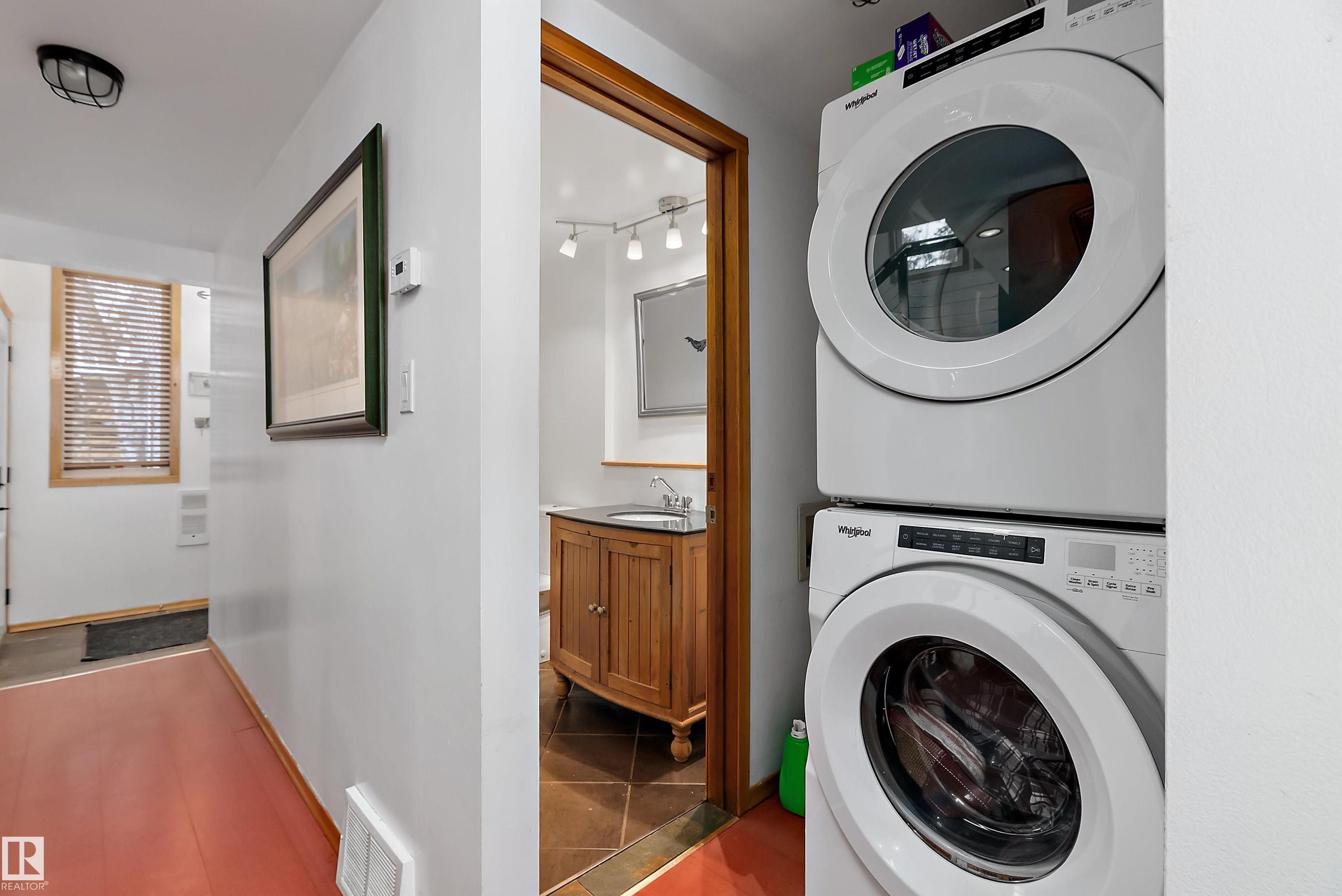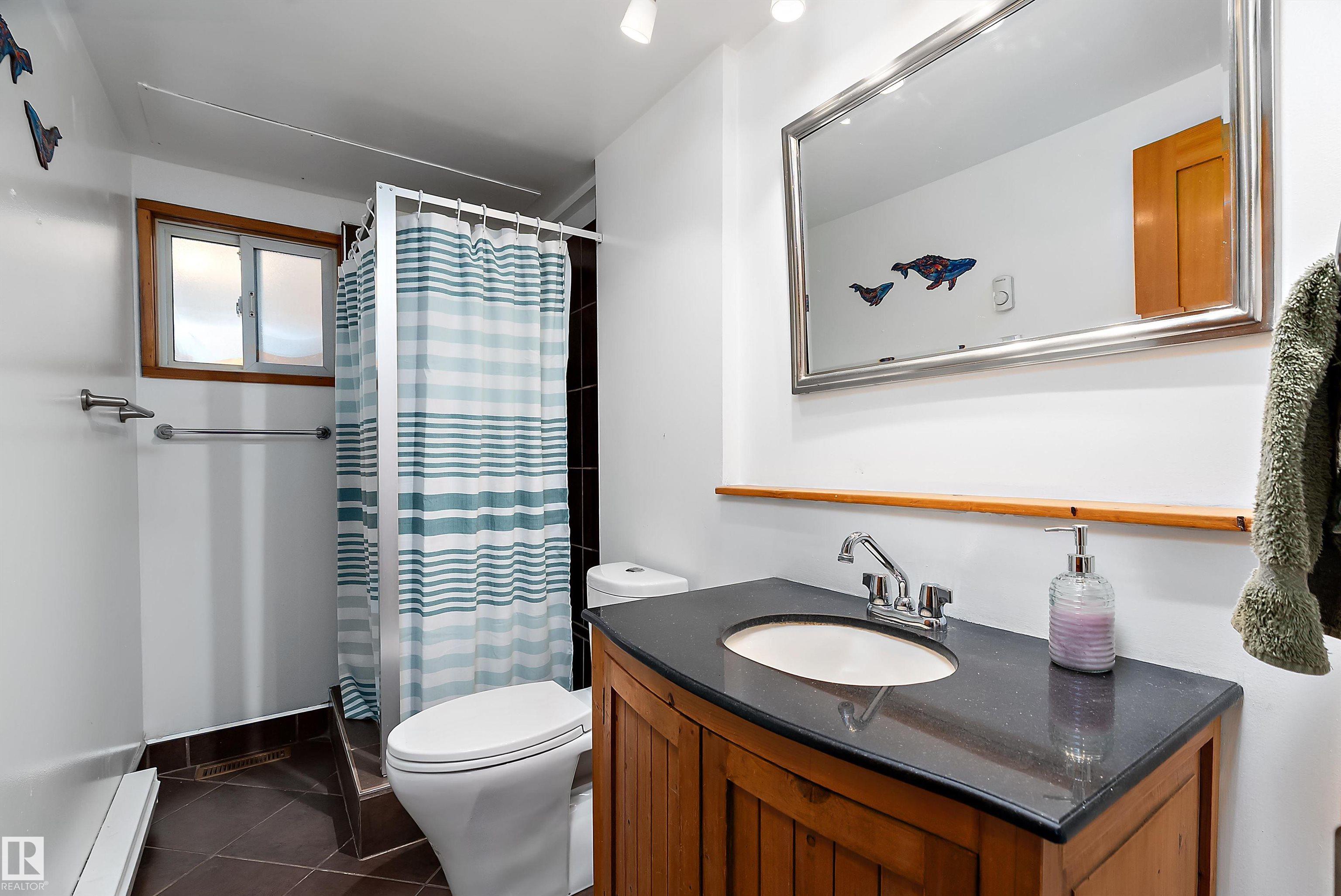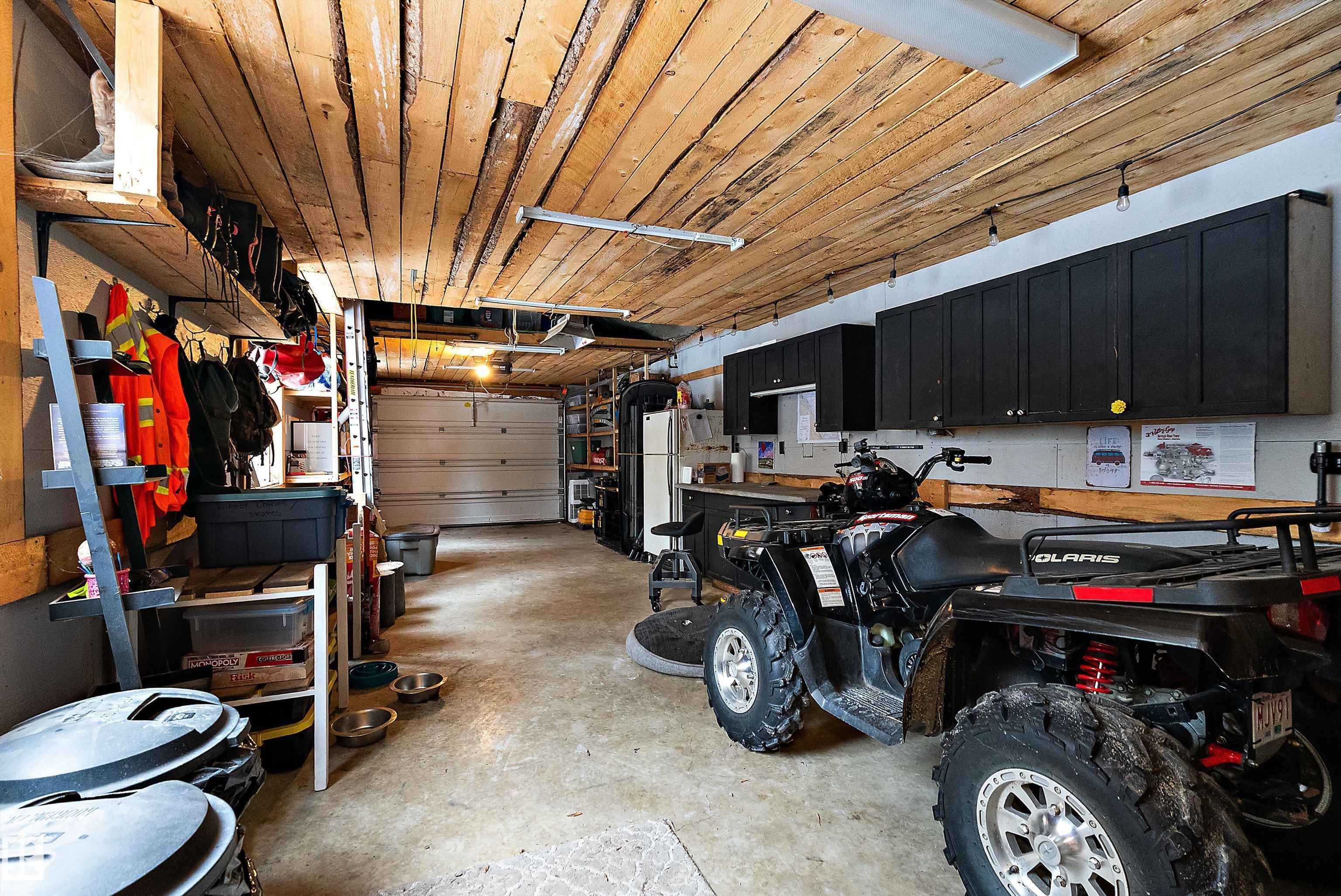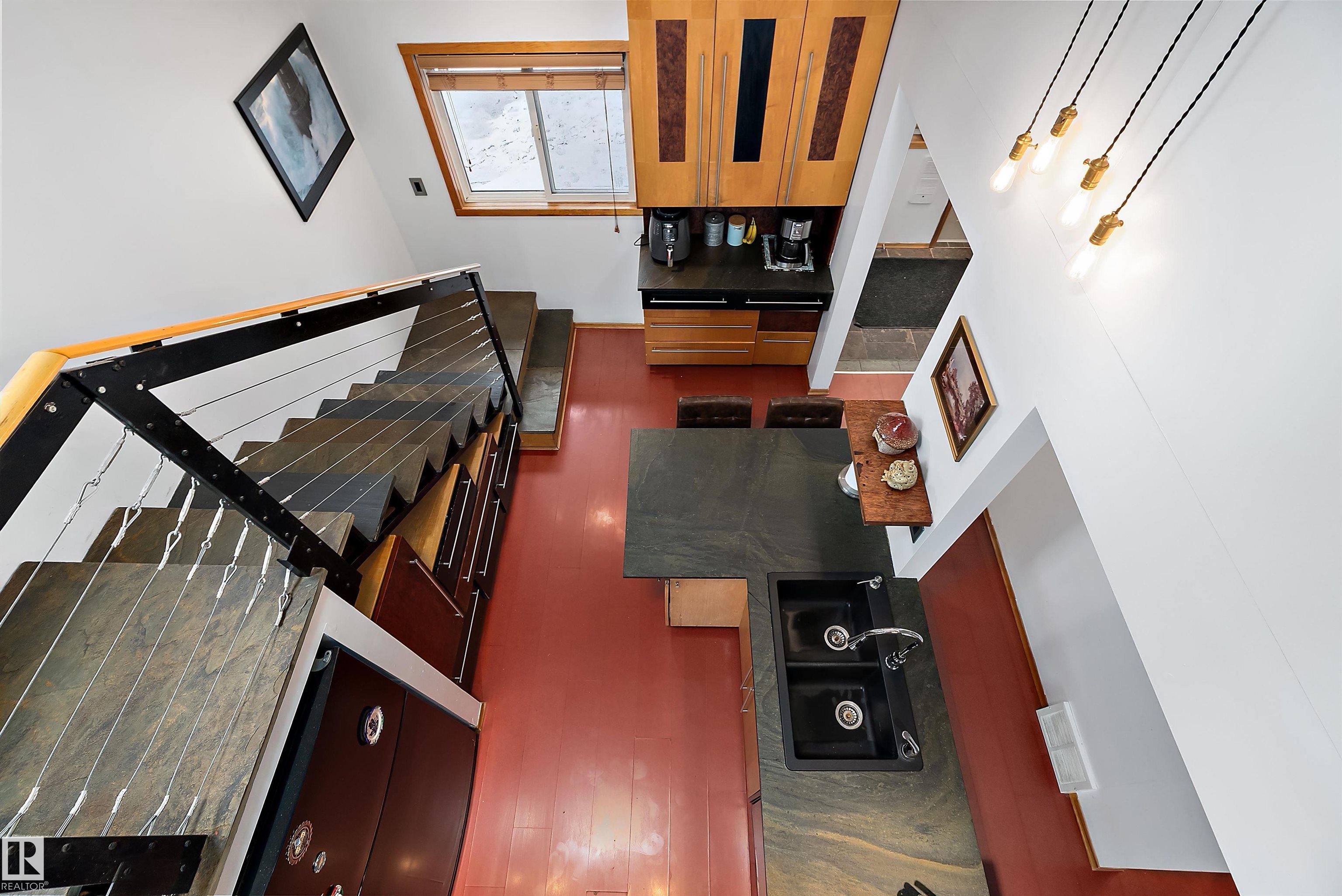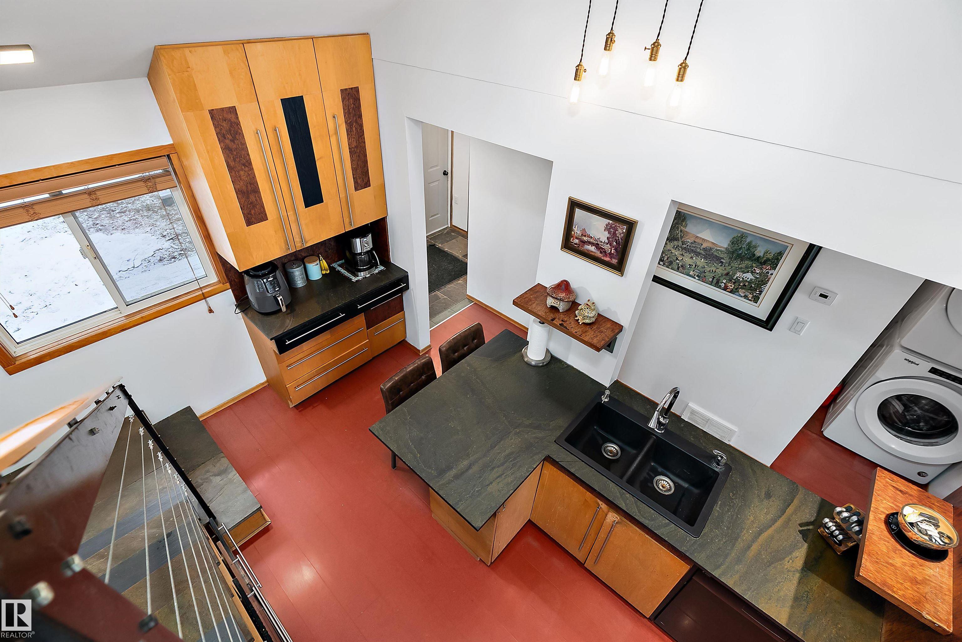 Beautiful, secluded lakefront home! Backing onto quiet Sandy Lake just 30 minutes from Edmonton, at the end of a cul-de-sac with walls of windows to appreciate the serene views over the tiered decks, through the sheltering trees & lawn, to the reeds of your own lake access. Inside, this 1991 2-storey has soaring open vault ceilings so that the views can be appreciated from both floors. Gorgeous slate counters & tile floors, a wood stove for cozy winter nights, gas range in the kitchen, main floor laundry & bathroom, as well as a main floor bedroom. The primary bedroom upstairs has it?s own private balcony looking onto the lake; there?s a 3rd bedroom upstairs, and a quaint bathroom with tiled steam shower & soaker tub. Comes with an attached double tandem garage with additional storage above, work bench, cabinets and additional parking in front for boat/RV/trailer. With a low maintenance metal roof & cistern with potable water, you?ve got all the amenities with the lifestyle you?ve been dreaming of!