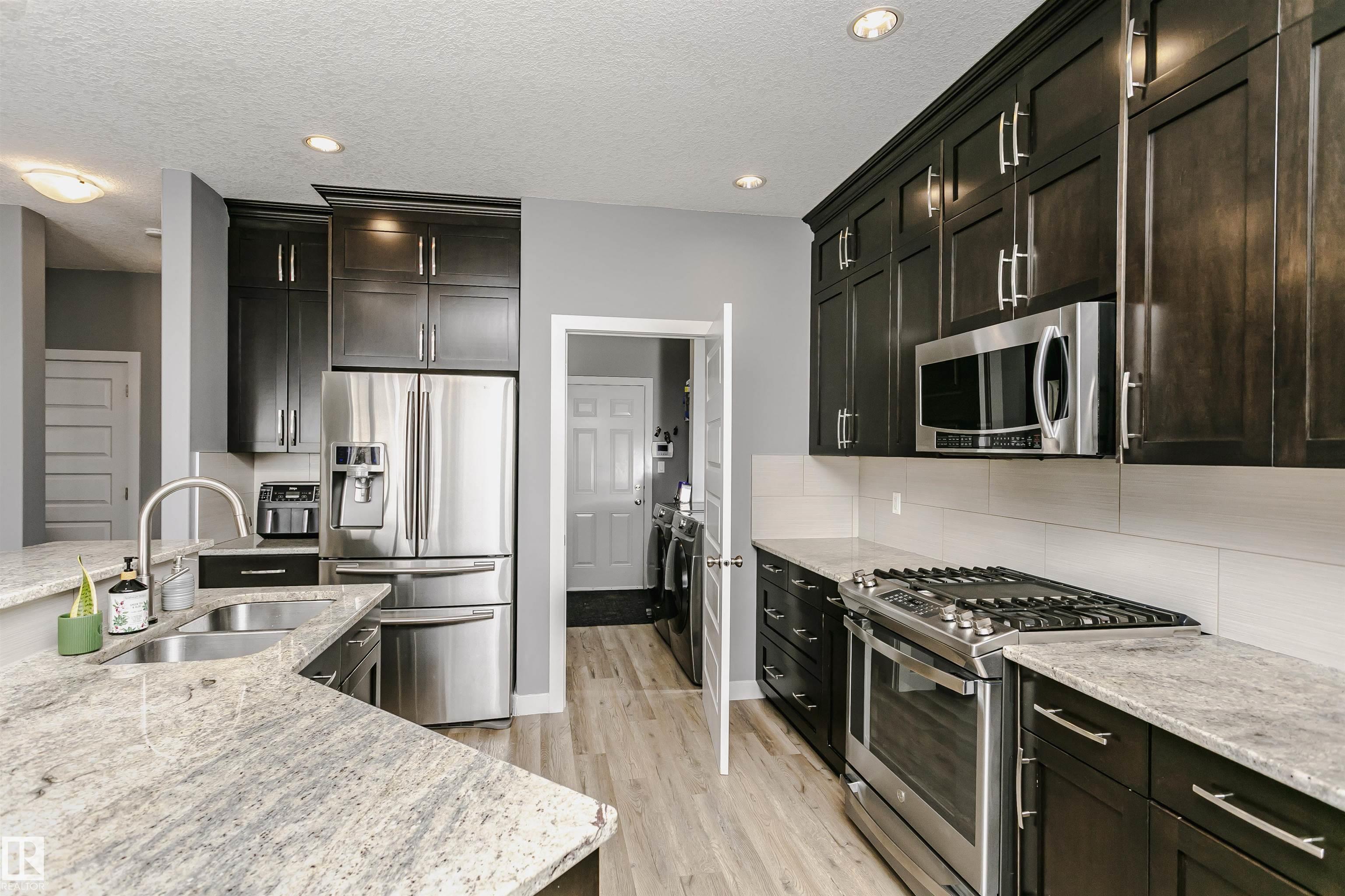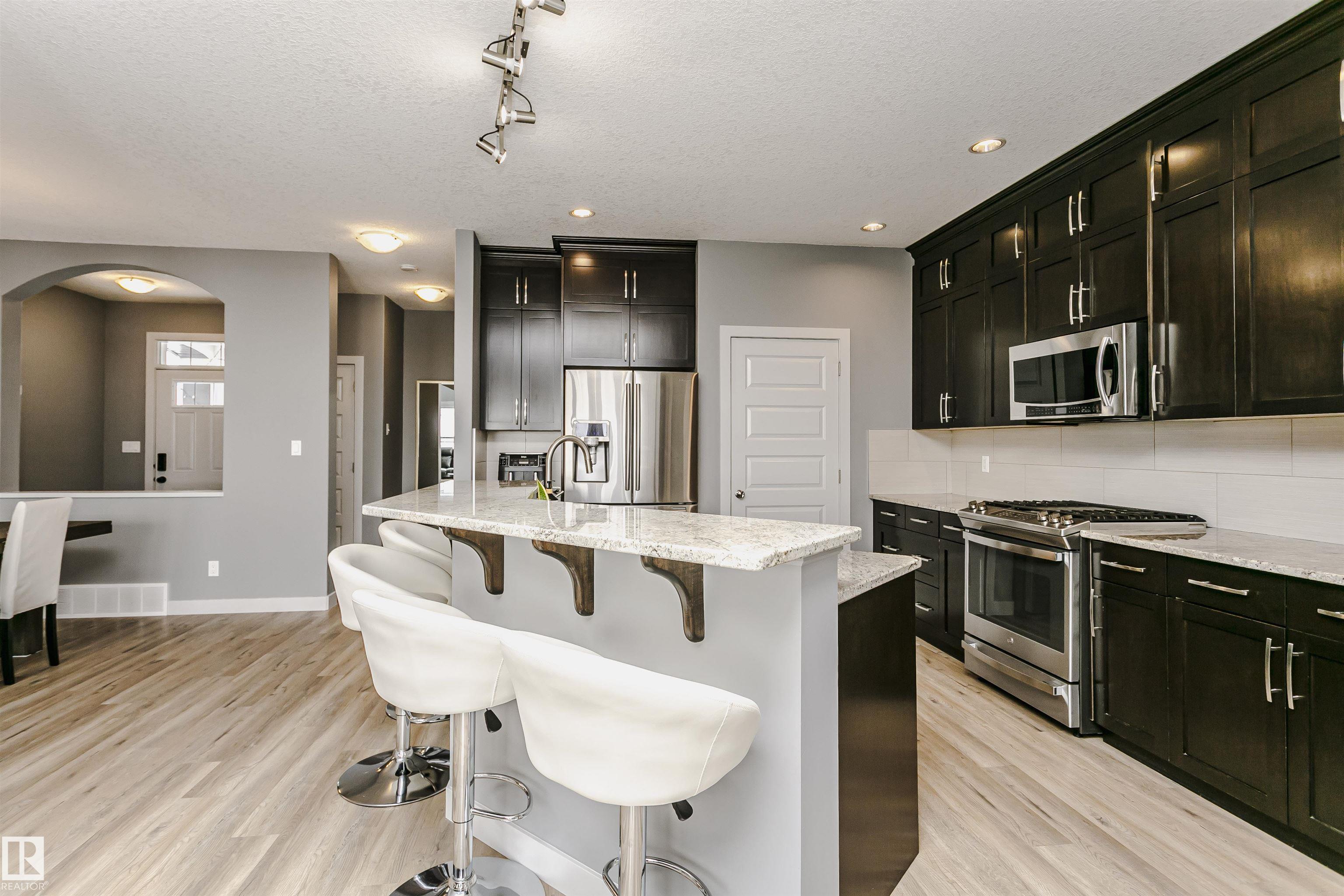 Stunning, bright, spacious 2-storey house located in desirable neighborhood of Secord. Meticulously kept, it shows pride of ownership throughout. From the moment you step inside the seamless flow of the main floor invites you directly to the open concept dining, living room and kitchen with a large center island, quartz countertops, gas stove, S/S appliances & pantry. Living room with an open to above design, gas fire place & patio door to the huge deck w/ hot tub, which is perfect for relaxing & entertaining. 2-pc bath & a laundry room complete the main floor. As you head upstairs you will find an open concept office/den?perfect for working from home, primary bedroom w/ a walk-in closet & 5-pc ensuite w/ a soaker tub. Additionally, the upper floor includes 2 more spacious bedrooms & a 4-pc bathroom. AC, central vac & a double attached garage. Fully landscaped & fenced. Steps from parks, trails, schools, shops, restaurants & short drive to major freeways. Your search is over. Welcome to your DREAM HOME!