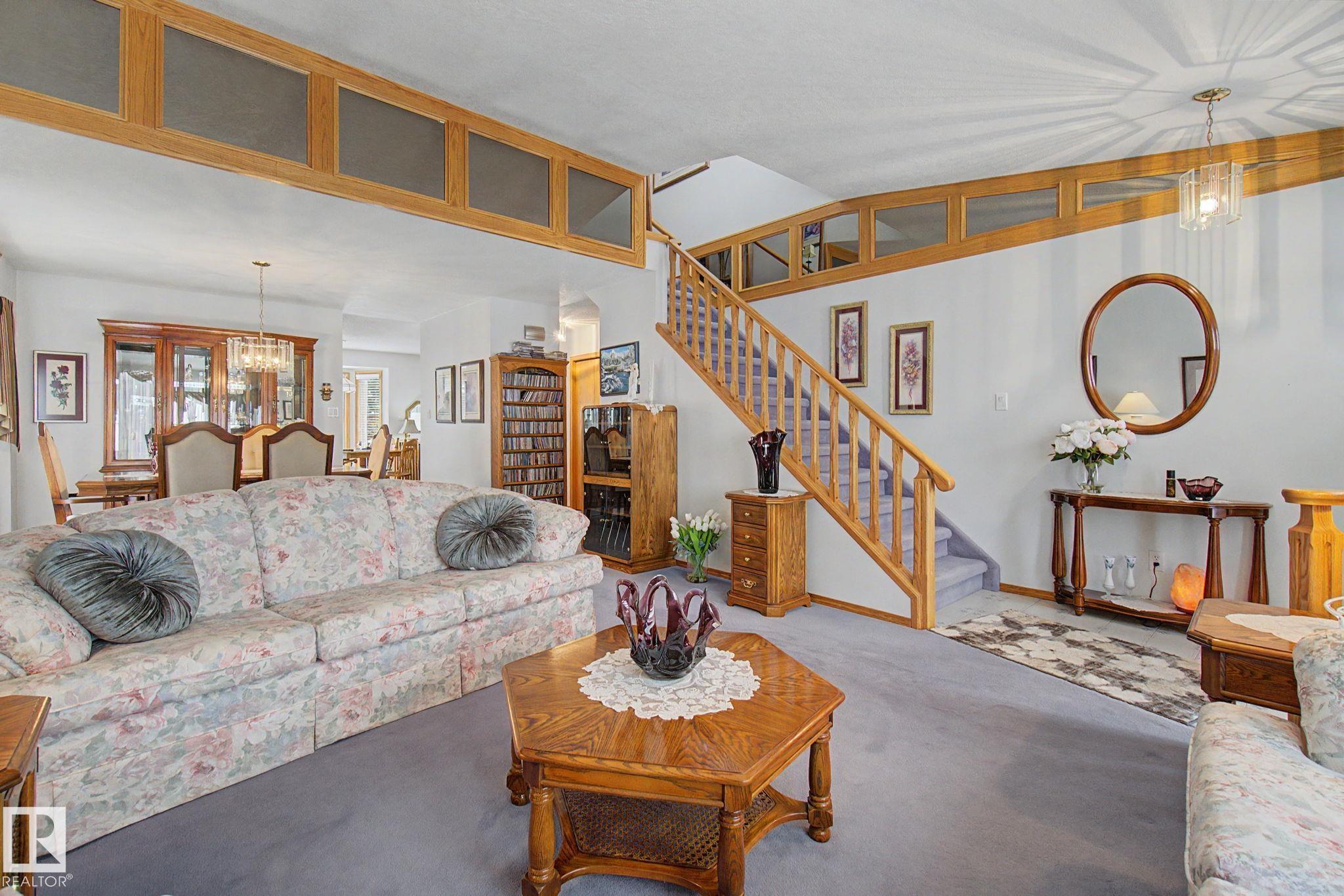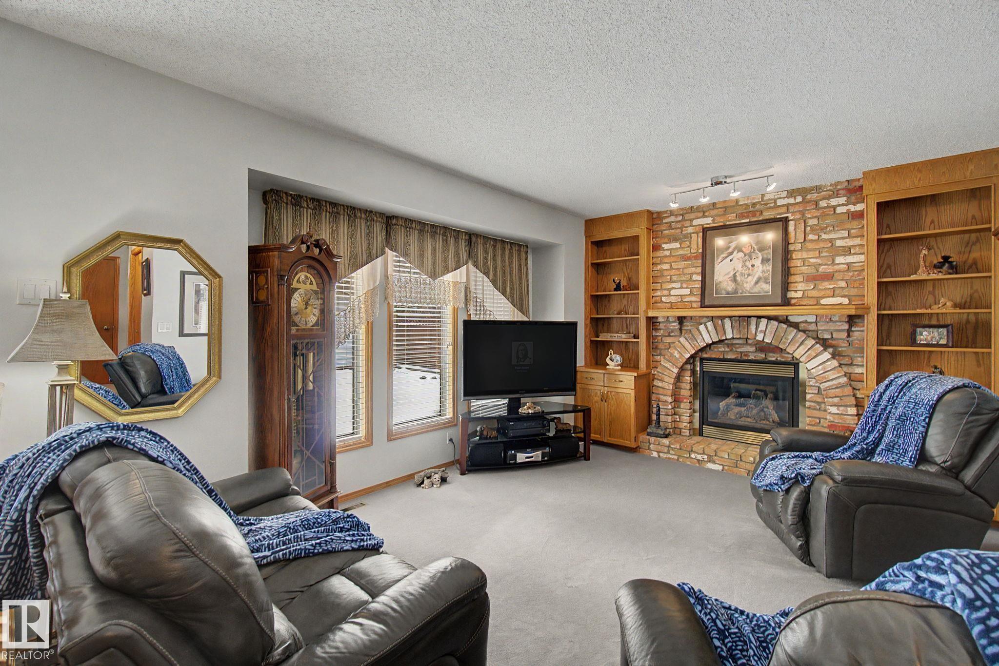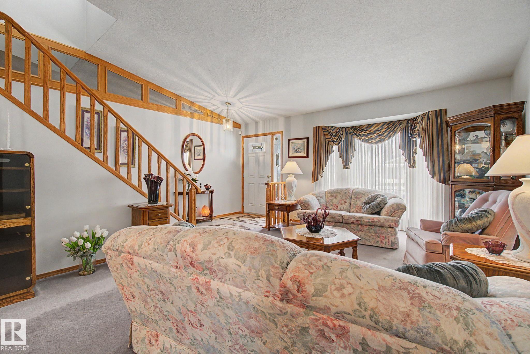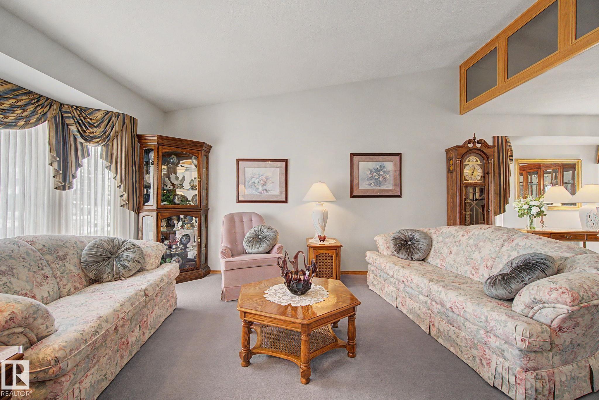 Beautifully maintained & cared for original-owner home custom built by DG Stuparyk Homes, located on a quiet crescent in Clover Bar Ranch. Offering 1,880 sq ft, plus an unfinished bsmt w/ bath rough-in.This home features quality finishings & upgrades, incl. steel roof w/ lifetime warranty & triple pane windows.Main floor offers a bright & spacious front family rm/dining area, rear living rm w/ brick surround gas f/p insert, functional u-shaped kitchen w/ highend appliances & a dining nook w/ garden door to the newer vinyl deck, laundry rm & 2 pc bath.Upstairs hosts a LG primary bdrm w/ W/I closet & 4 pc ensuite, 2 additional bdrms & 4 pc main bath.Quality wool carpeting throughout, A/C & reverse osmosis.Huge landscaped yard w/ stone patio, mature trees, garden bed w/ water hookup, waterfall feature w/ fish pond, accent brick edging custom insulated garden shed w/ electricity. 32 ft RV parking @ side of the home via gate access. Upgraded locking system by Alberta Lock Solid.