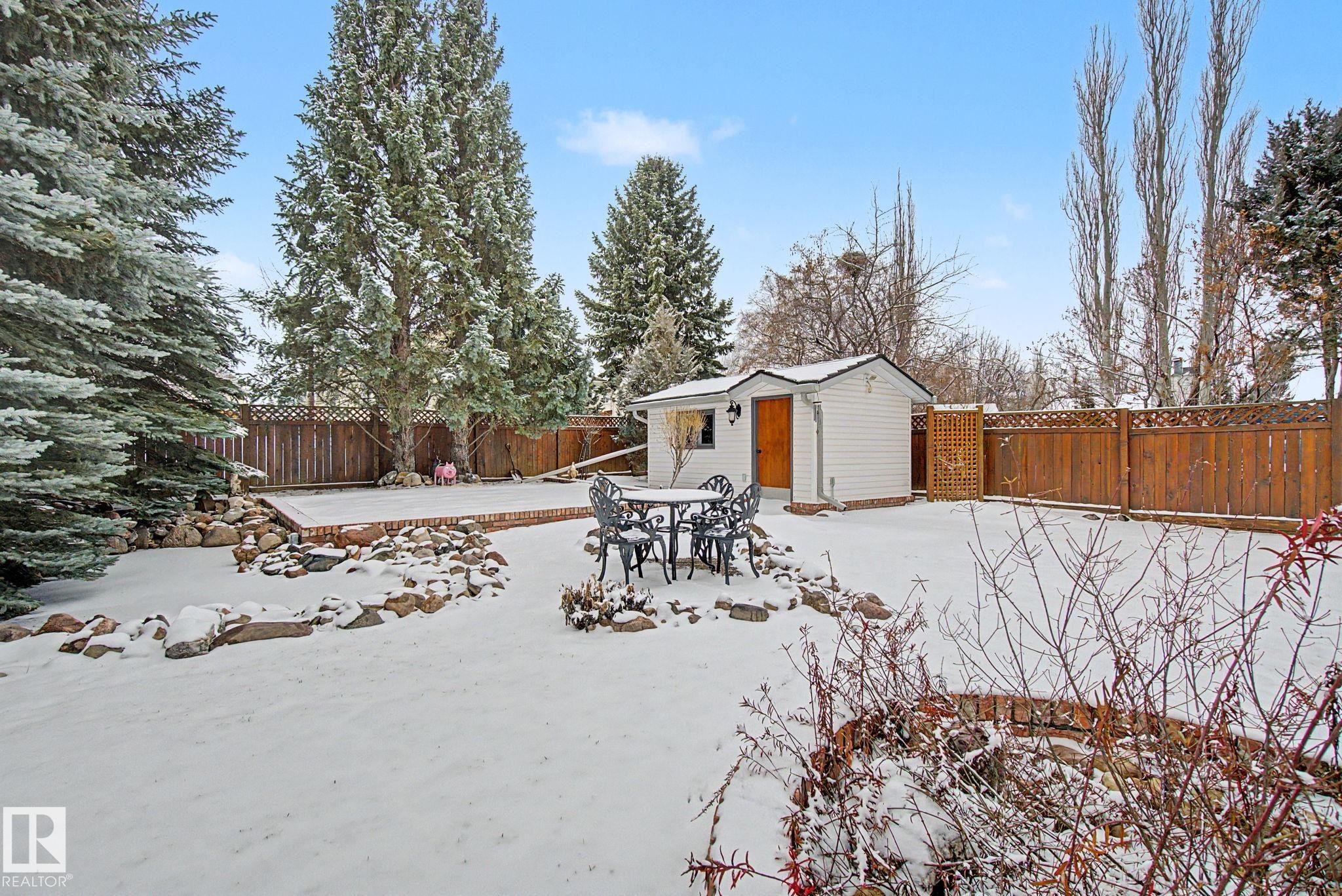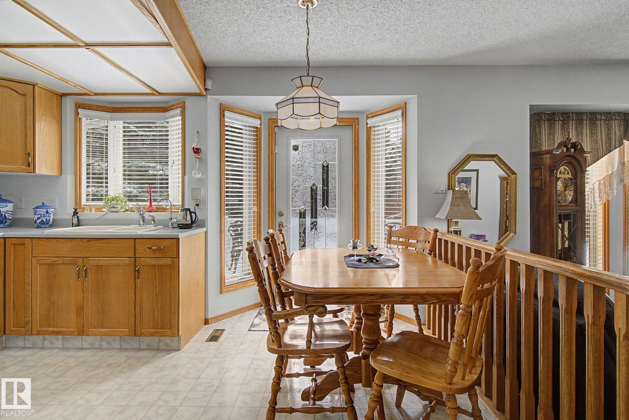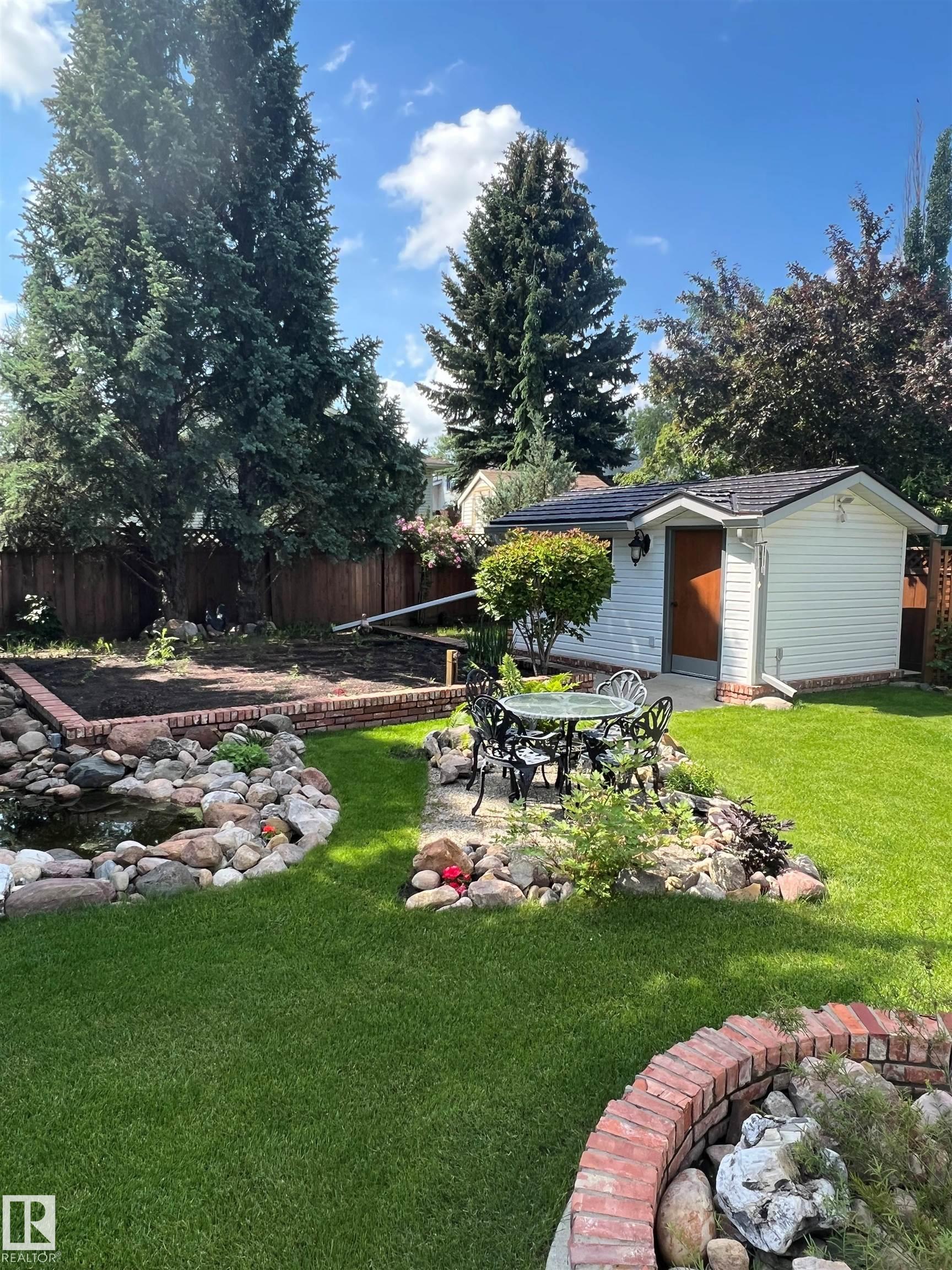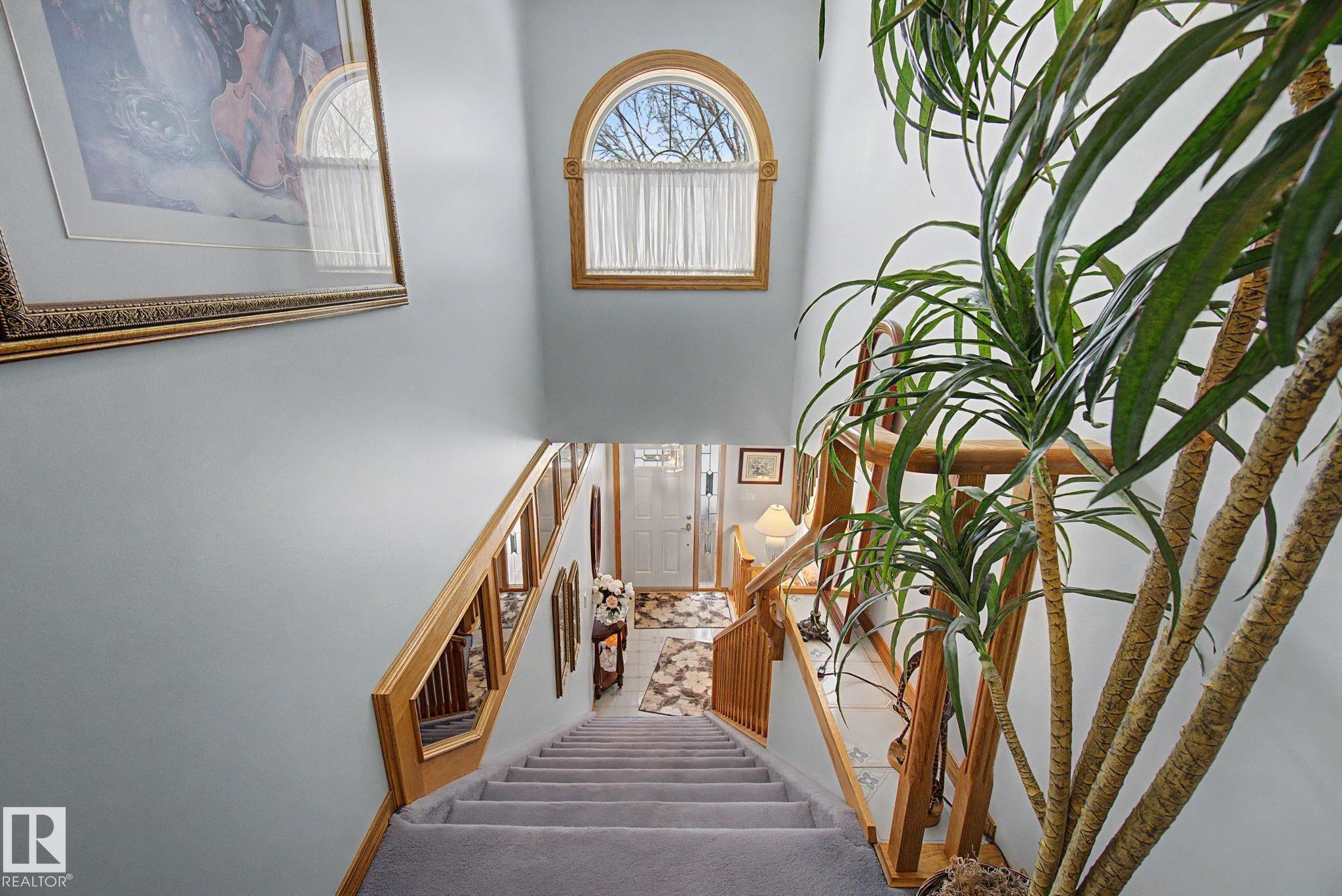 Beautifully maintained & cared for original-owner home custom built by DG Stuparyk Homes, located on a quiet crescent in Clover Bar Ranch. Offering 1,880 sq ft, plus an unfinished bsmt w/ bath rough-in.This home features quality finishings & upgrades, incl. steel roof w/ lifetime warranty & triple pane windows.Main floor offers a bright & spacious front family rm/dining area, rear living rm w/ brick surround gas f/p insert, functional u-shaped kitchen w/ highend appliances & a dining nook w/ garden door to the newer vinyl deck, laundry rm & 2 pc bath.Upstairs hosts a LG primary bdrm w/ W/I closet & 4 pc ensuite, 2 additional bdrms & 4 pc main bath.Quality wool carpeting throughout, A/C & reverse osmosis.Huge landscaped yard w/ stone patio, mature trees, garden bed w/ water hookup, waterfall feature w/ fish pond, accent brick edging custom insulated garden shed w/ electricity. 32 ft RV parking @ side of the home via gate access. Upgraded locking system by Alberta Lock Solid.