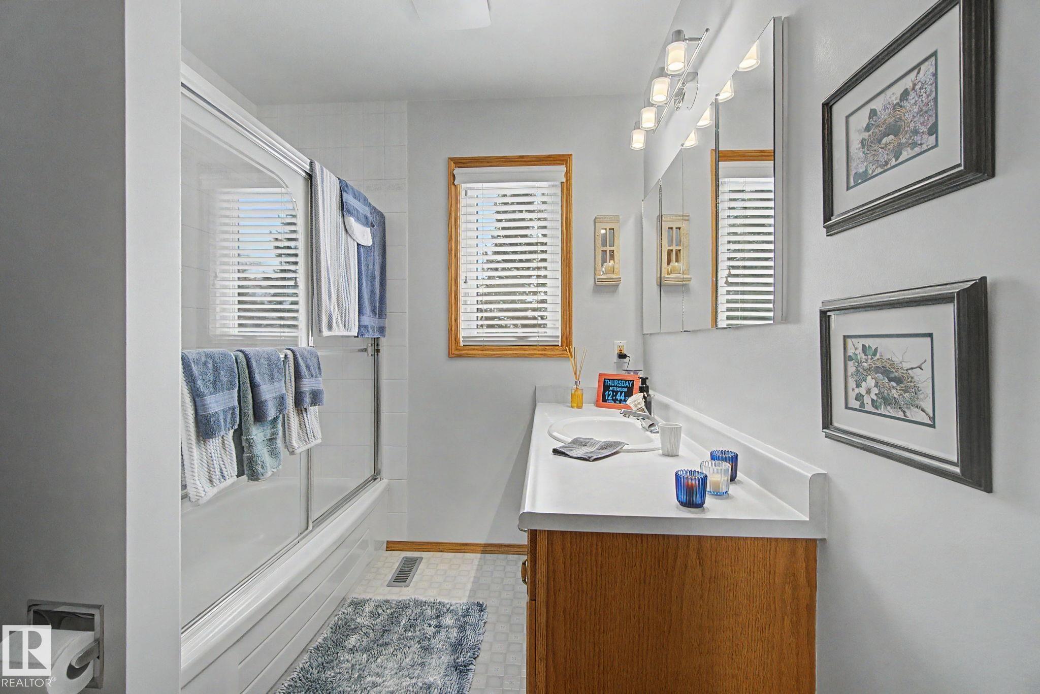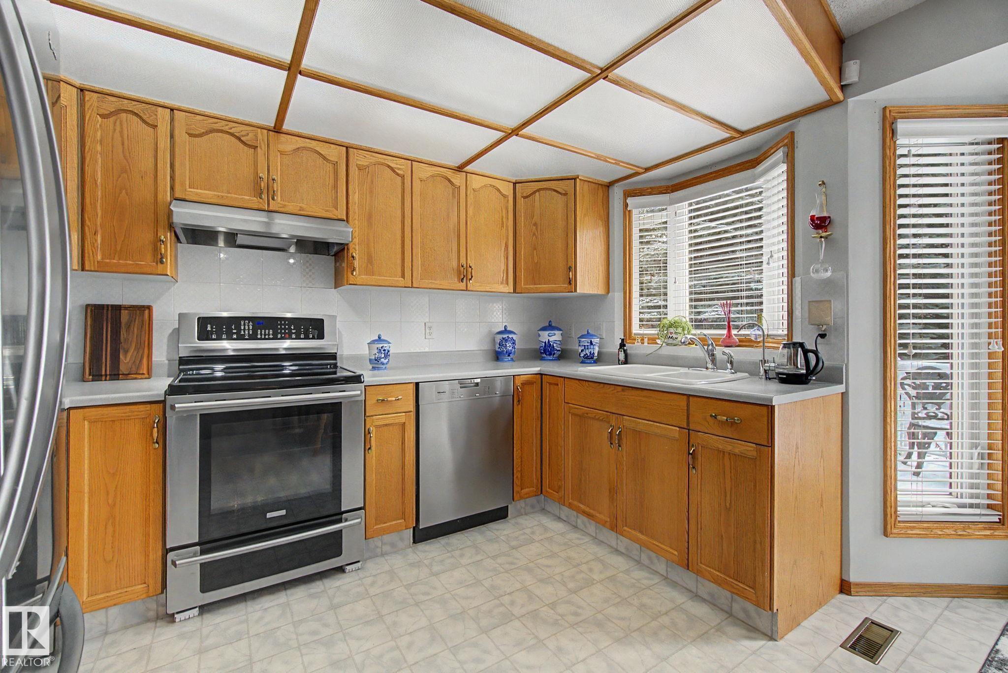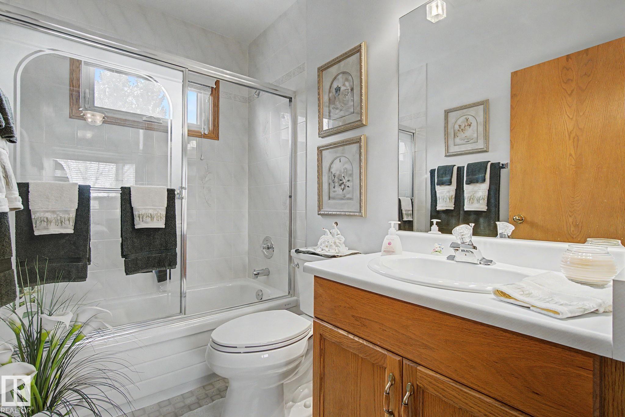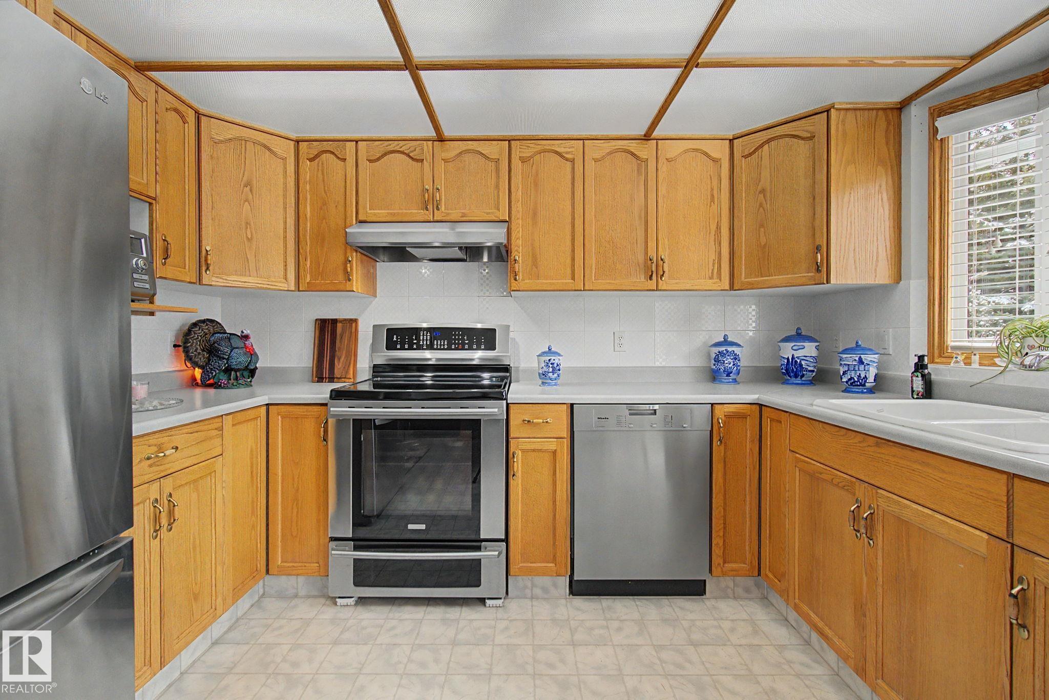 Beautifully maintained & cared for original-owner home custom built by DG Stuparyk Homes, located on a quiet crescent in Clover Bar Ranch. Offering 1,880 sq ft, plus an unfinished bsmt w/ bath rough-in.This home features quality finishings & upgrades, incl. steel roof w/ lifetime warranty & triple pane windows.Main floor offers a bright & spacious front family rm/dining area, rear living rm w/ brick surround gas f/p insert, functional u-shaped kitchen w/ highend appliances & a dining nook w/ garden door to the newer vinyl deck, laundry rm & 2 pc bath.Upstairs hosts a LG primary bdrm w/ W/I closet & 4 pc ensuite, 2 additional bdrms & 4 pc main bath.Quality wool carpeting throughout, A/C & reverse osmosis.Huge landscaped yard w/ stone patio, mature trees, garden bed w/ water hookup, waterfall feature w/ fish pond, accent brick edging custom insulated garden shed w/ electricity. 32 ft RV parking @ side of the home via gate access. Upgraded locking system by Alberta Lock Solid.