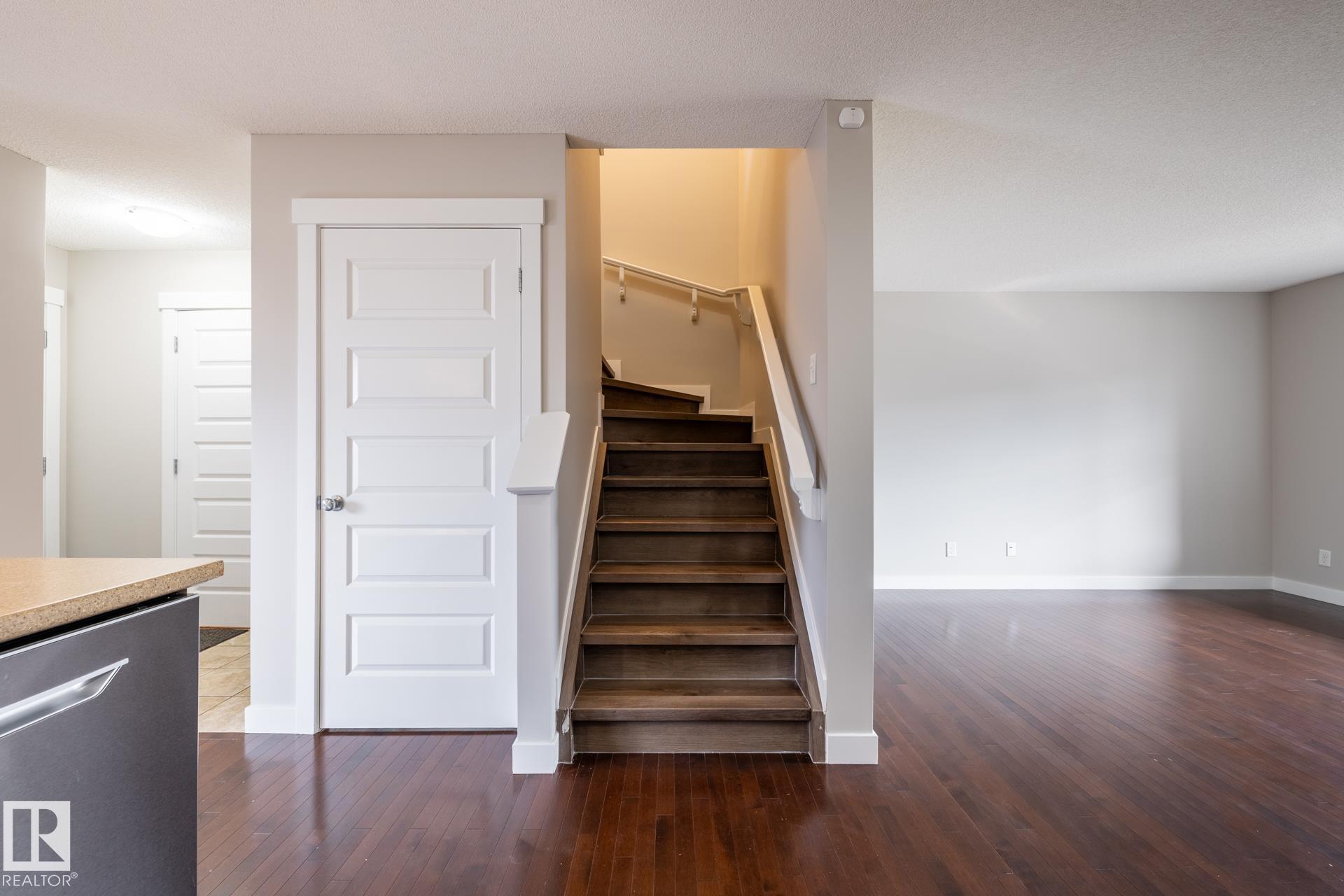 MOTIVATED SELLER. Welcome to the Creekwood community in Chappelle. This Rohit Mackenzie Model has over 2000 sf of living space. Built in 2011 features 3 bdrms up, 3.5 baths, fully fin basement, bonus & recreation rooms & REAR ATTACHED single garage. Stepping through the main entrance you are welcomed by warm chocolate hardwood. This Open Concept showcases Living room, Kitchen with S/S appliances, NEW in 2025 dishwasher, pendent island lighting, new paint main & upper levels, cabinet refacing & laminate flooring. Eating area with patio doors leads to private deck & 2 pc bath completes main level. Upstairs you will find a cozy bonus room, primary bedroom with 4 pc ensuite & walk-in closet, 2 additional generous sized bedrooms, 4 pc bath & laundry room. The fully finished basement offers a recreation/flex room with dry bar & quartz countertop, office & 4 pc bath. Located near parks, trails, schools, shopping, golf, Anthony Henday & so much more. A great place to call home!!