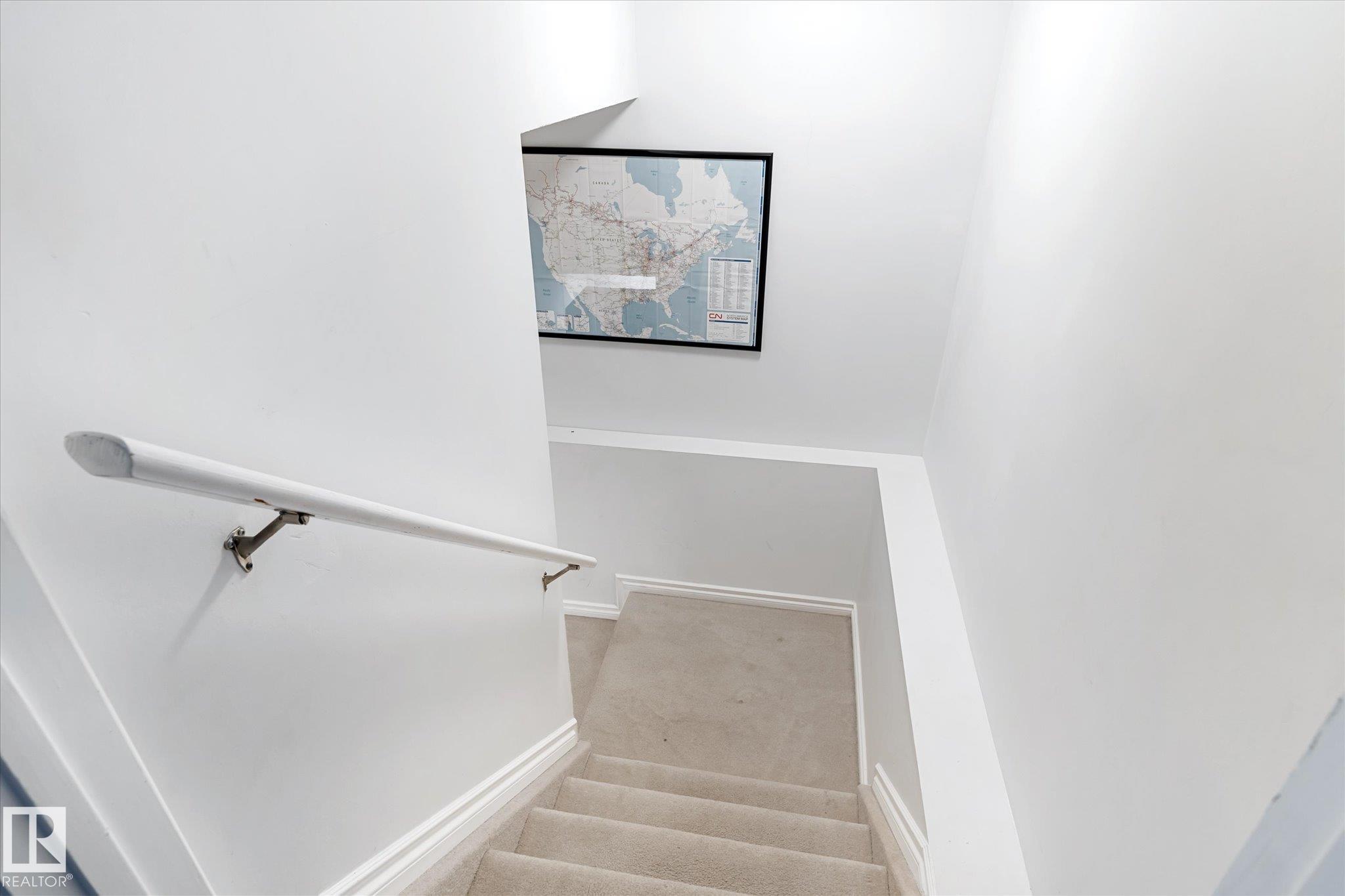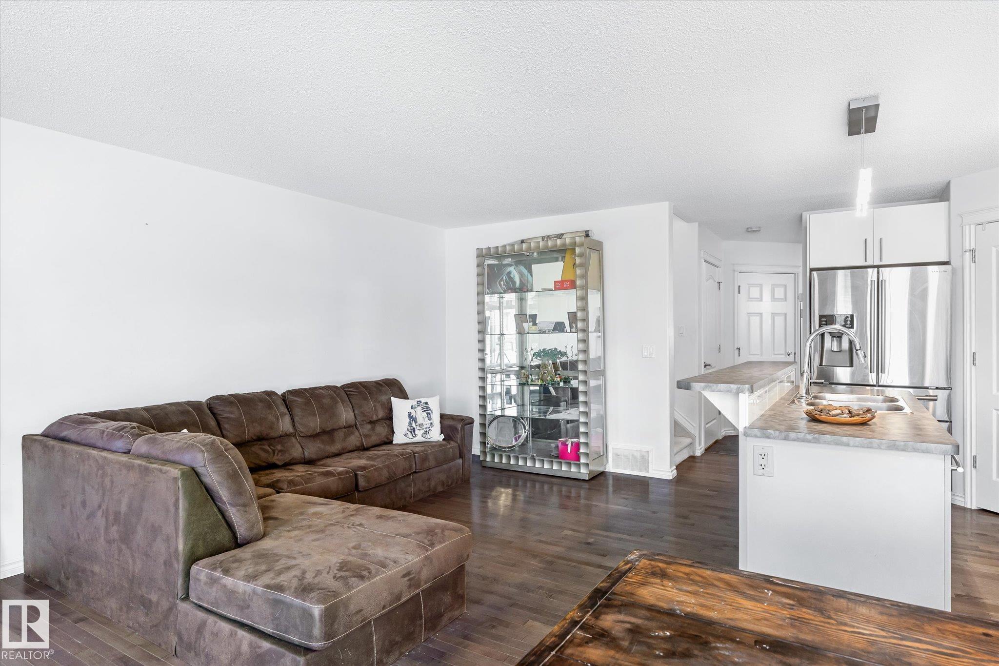 Massive lot with no neighbours on two sides! This fully finished home welcomes you in with hardwood flooring. The bright white kitchen has an island kitchen with eating bar, tons of counter and cabinet space plus a corner pantry. The kitchen overlooks the dining and living area with gas fireplace. Patio doors off the dining area lead to a deck and large fenced yard. A kids and dogs paradise! Upstairs there are three good sized bedrooms including a master bedroom with walk in closet. The full bathroom features tile flooring and white cabinetry. The basement has a finished family room. The projector and screen also stay, perfect for your family's movie night! Central A/C is an added bonus, and you have a garage, ample parking in the driveway and lots of on street parking. All of this in popular the Windermere community close to schools, parks, trails gyms and shopping.