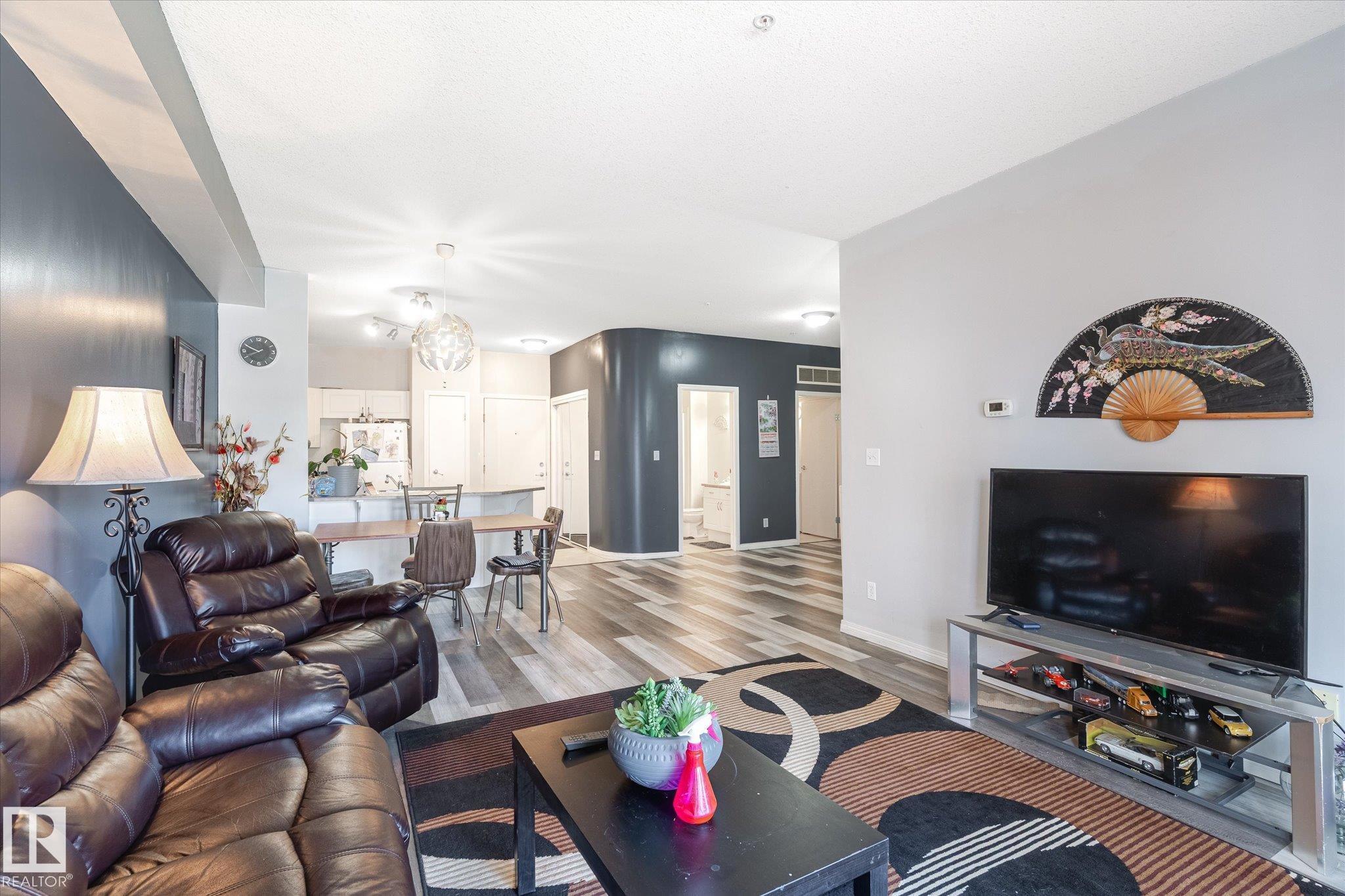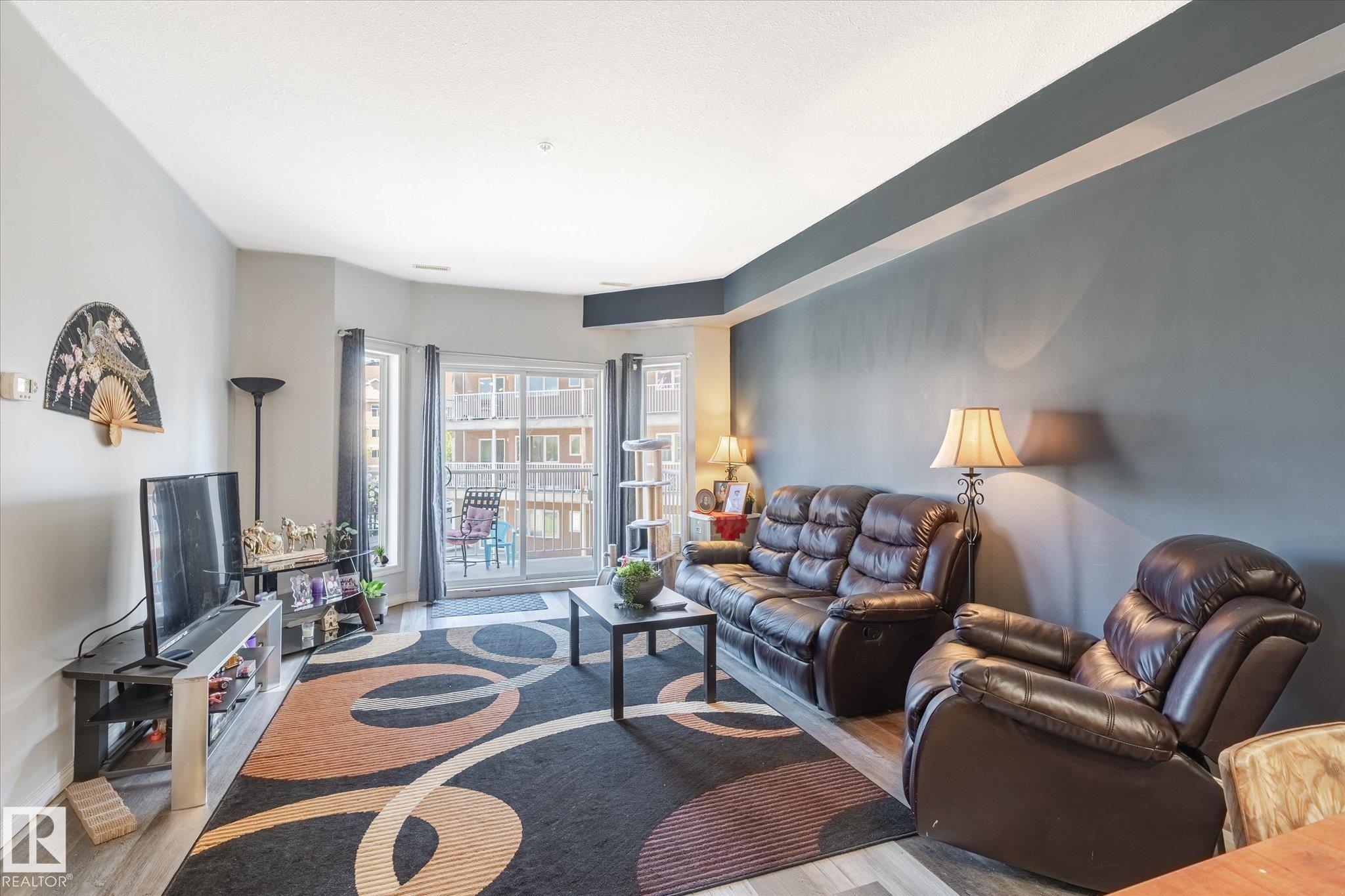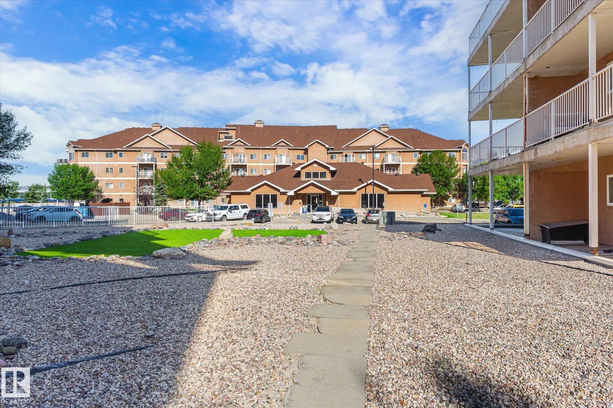 Excellent value for a very spacious 2 bedroom, 2 bathroom home offering 1050 sqft of living space. Bring your decorating touch to this home. The 9 ft ceilings & large windows open up the space. Perfect for the first time buyer, University Student or an investor. The bright white open concept kitchen features ample counter and cupboard space, an eating bar, and pantry. This space overlooks the living & dining area. Master bedroom has a large walk-thru closet & a full 4 pieceensuite. The 2nd Bedroom is a good size and located beside the full 3pc main bathroom. Relax on your patio, and take advantage of the large in-suite laundry. Central a/c to keep you cool! There is also an underground parking stall and a storage cage for added convenience. Building amenities include exercise room, a games room with ping pong and pool tables, a social room, and an indoor car wash. Walking distance from Clareview LRT station, Rec Center, restaurants and shopping like Walmart, Costco and Superstore.