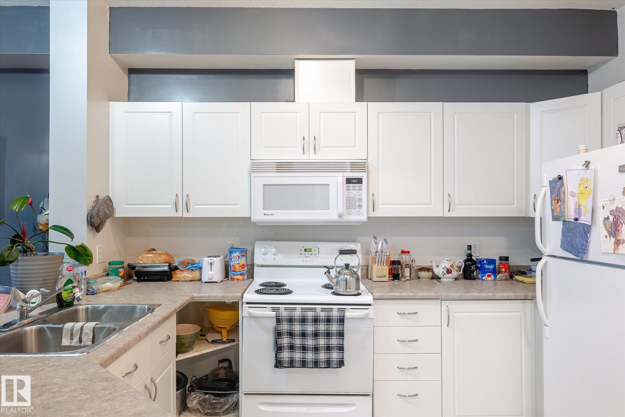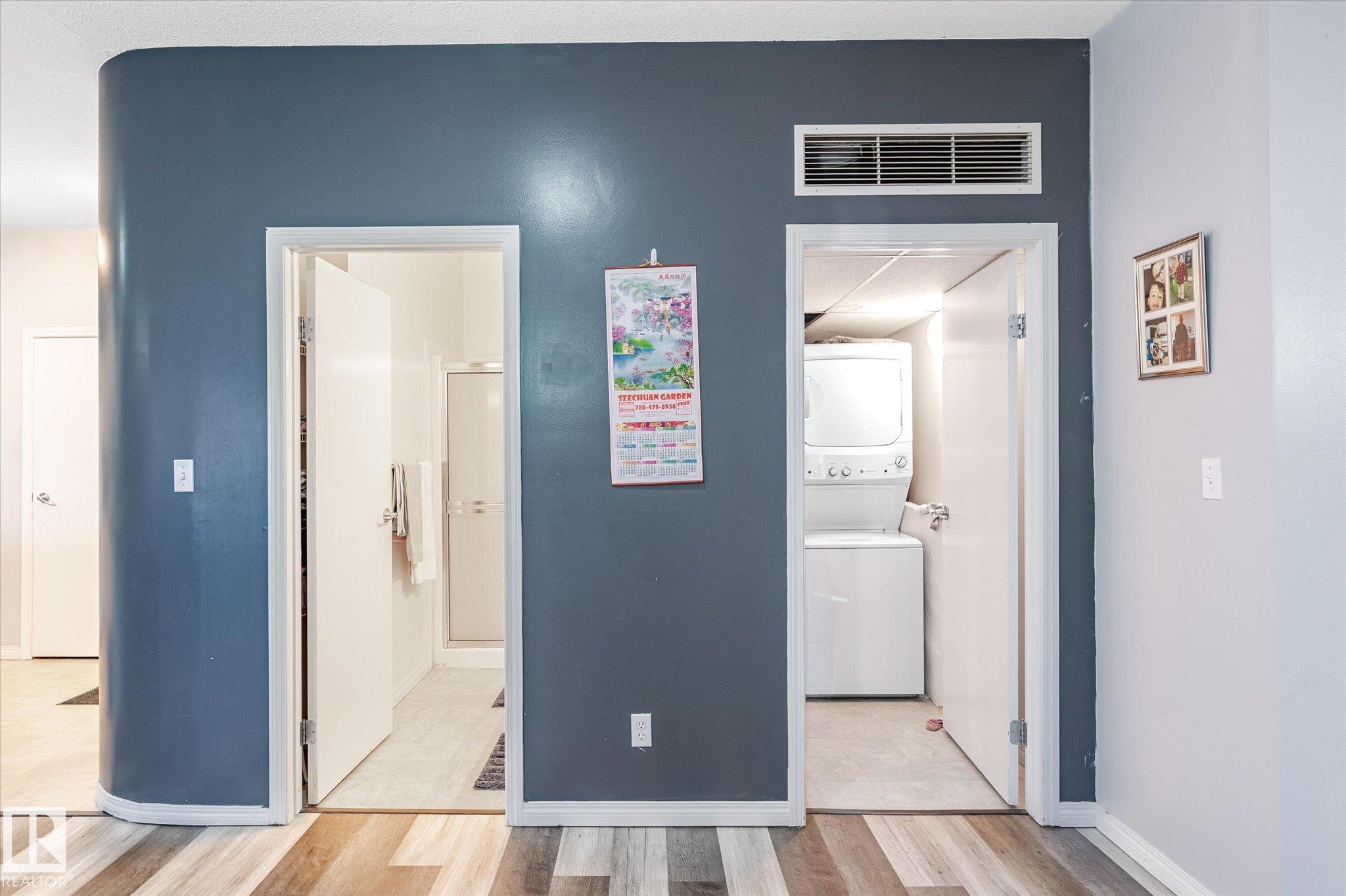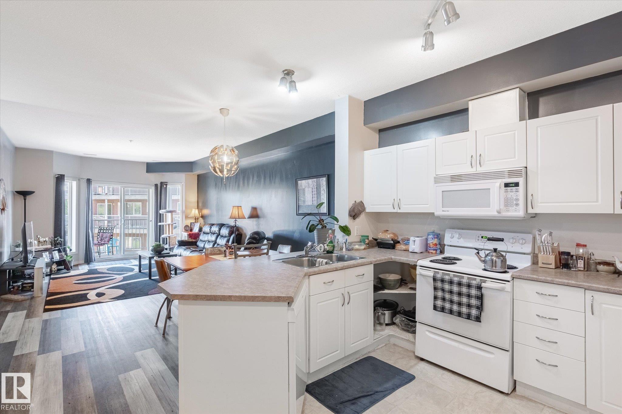 Excellent value for a very spacious 2 bedroom, 2 bathroom home offering 1050 sqft of living space. Bring your decorating touch to this home. The 9 ft ceilings & large windows open up the space. Perfect for the first time buyer, University Student or an investor. The bright white open concept kitchen features ample counter and cupboard space, an eating bar, and pantry. This space overlooks the living & dining area. Master bedroom has a large walk-thru closet & a full 4 pieceensuite. The 2nd Bedroom is a good size and located beside the full 3pc main bathroom. Relax on your patio, and take advantage of the large in-suite laundry. Central a/c to keep you cool! There is also an underground parking stall and a storage cage for added convenience. Building amenities include exercise room, a games room with ping pong and pool tables, a social room, and an indoor car wash. Walking distance from Clareview LRT station, Rec Center, restaurants and shopping like Walmart, Costco and Superstore.