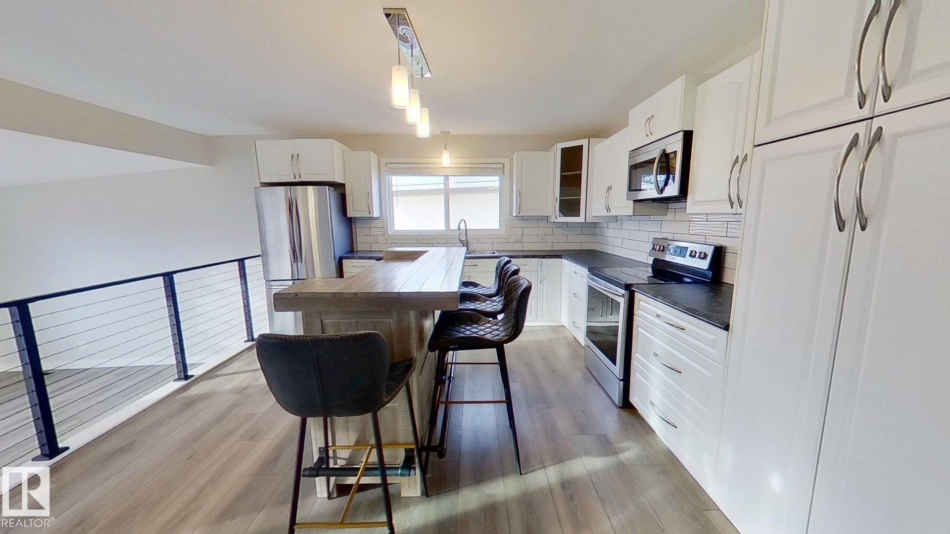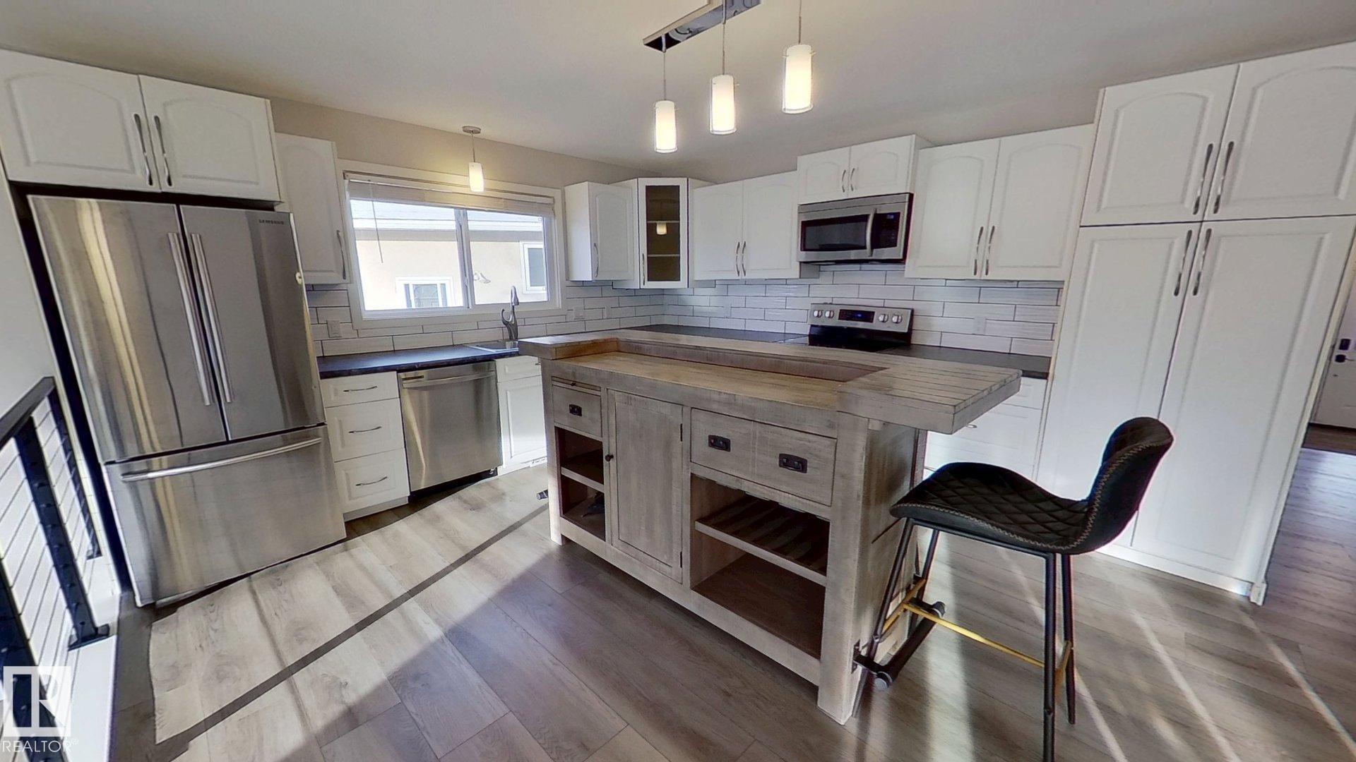 Professionally Renovated and modernized! Total square footage is 1557.55. Laminate flooring, air conditioning, spacious kitchen with island, large unique ensuite bedroom with large bathroom and walk in shower. Total of 4 bedrooms with extra large laundry room. total of 3 bathrooms. two with showers and one with floating bathtub. Impeccable heated garage surrounded with panelled pvc Trusscore walls and built in toolbox, led lighting. New shingle roof. Blown in insulation for efficiency improvements. Covered patio hangout area, great for future hot tub. Large fenced backyard with RV parking. Custom downstairs entertainment centre. Hide a bed mounted on wall for extra guests. Private dining area. Along with 2 separate sunk in living rooms. Newer concrete driveway and garage floor with drain. Walking distance to two schools and close to all amenities. Easy access to Hwy 16 on Southside of town.