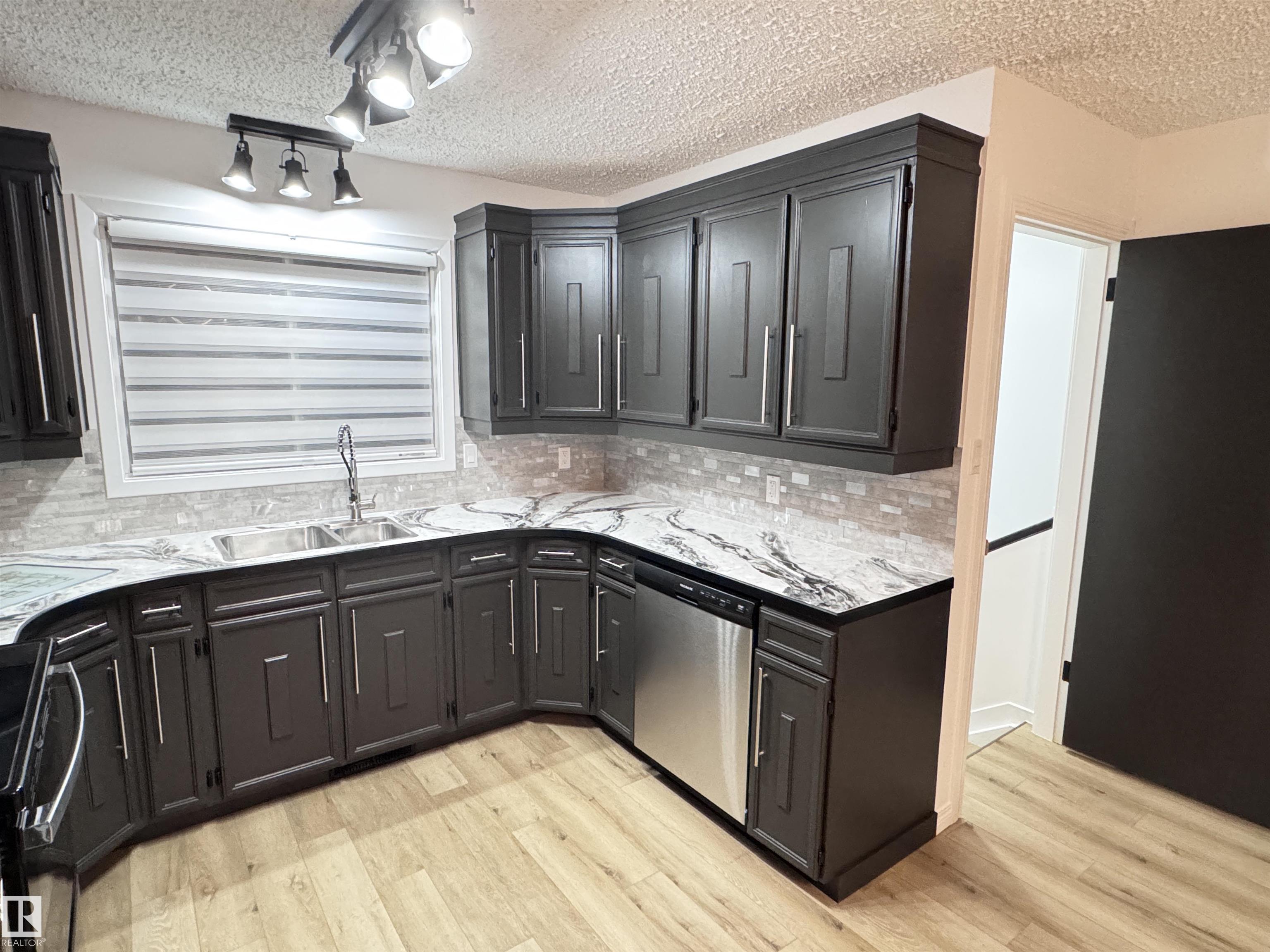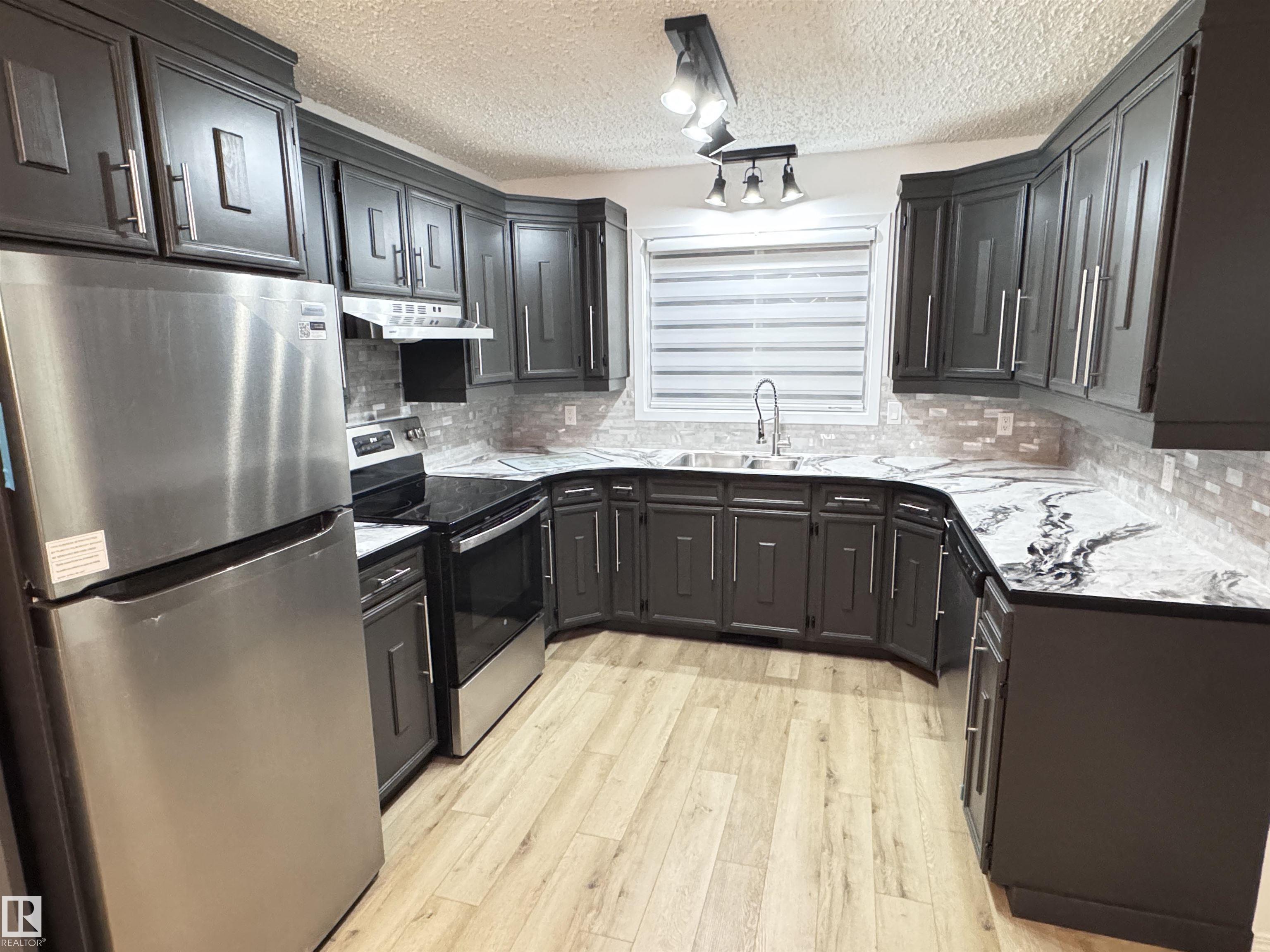 Beautifully renovated 1220 sq ft bungalow offering 3+3 bedrooms, 3 bathrooms, in a quiet cul-de-sac, walking distance to schools and amenities. Enjoy a bright, open-concept layout with a cozy living room featuring a fireplace with log lighter. Updates include a high-efficiency furnace, luxury vinyl plank flooring, new carpet, fresh interior paint, refinished countertops and cabinetry, and new sleek stainless steel appliances. The primary bedroom boasts a 2-pc ensuite, complemented by a full main bath. Featuring a spacious laundry room, and a fully finished basement with abundant natural light. Generous front and rear entries, newer shingles, closet organizers in most bedrooms, and includes 5 appliances. Brick and stucco exterior with capped windows for low maintenance, front drive access, single-detached 11'x24' garage, and storage shed. Nearly every detail has been thoughtfully refreshed?move-in ready!