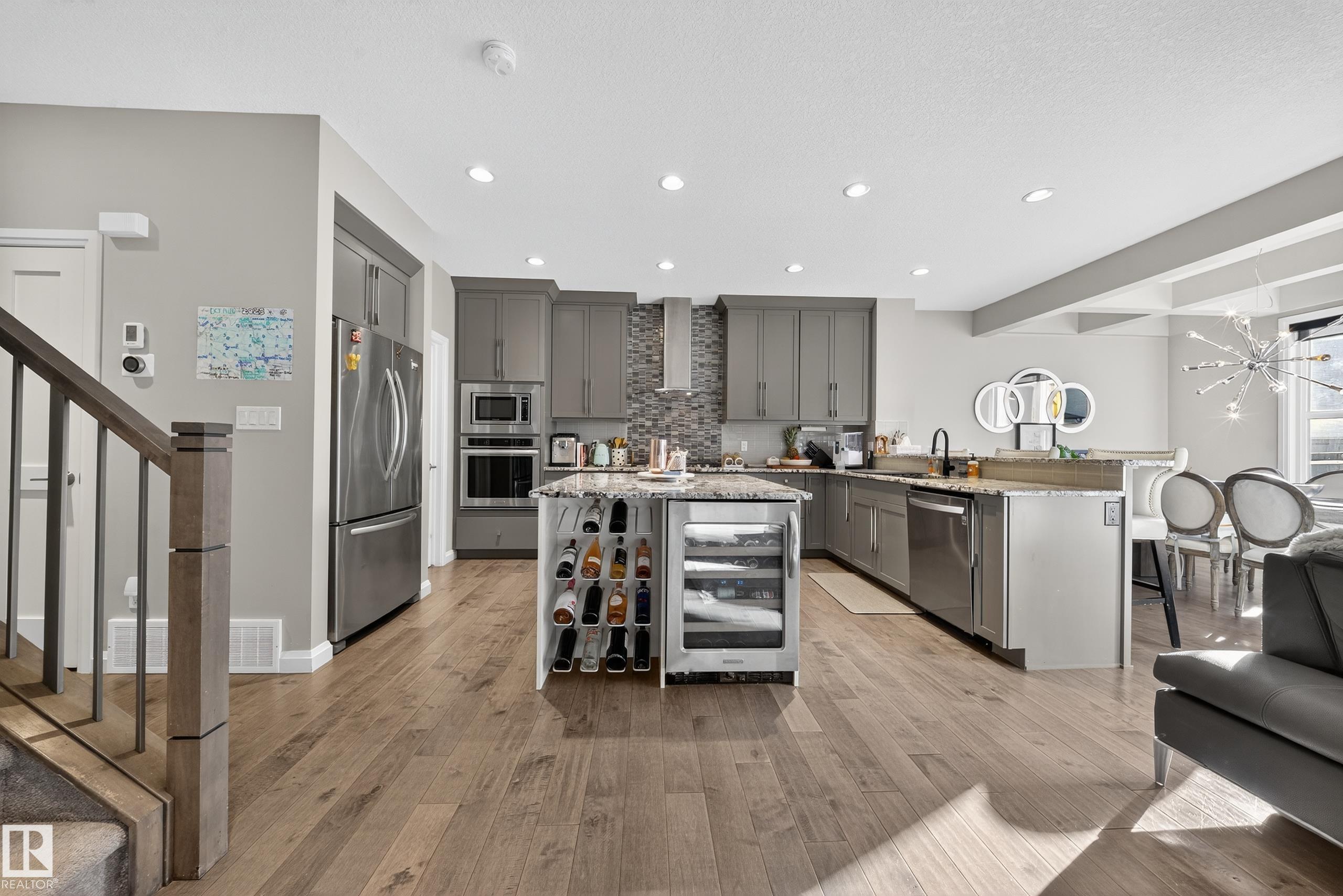 Welcome to 1377 Secord Landing, a custom built Jayman Master Builder Home ? where modern design meets family comfort. With over 3000sqft of liveable space, this beautifully finished home blends warmth, function, and thoughtful detail in every space. The main floor welcomes you with rich hardwood floors, a stunning chef?s kitchen with granite counters, sleek cabinetry, and a built-in wine fridge, all opening to a bright living area with a cozy fireplace. Upstairs, the spacious bonus room and three bedrooms offer room for everyone, including a serene primary suite with a spa-inspired ensuite and walk-in closet. The fully finished basement adds even more living space with a stylish bar, a glass-enclosed exercise room, and a comfortable lounge for movie nights. Enjoy central A/C, a double garage, and a private backyard oasis complete with a covered patio for your privacy and enjoyment. This is more than a home ? it?s where family, comfort, and style come together.