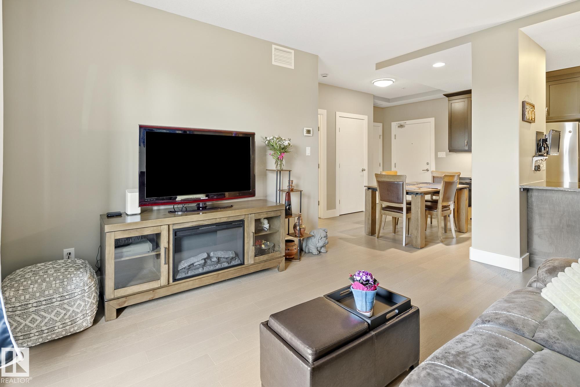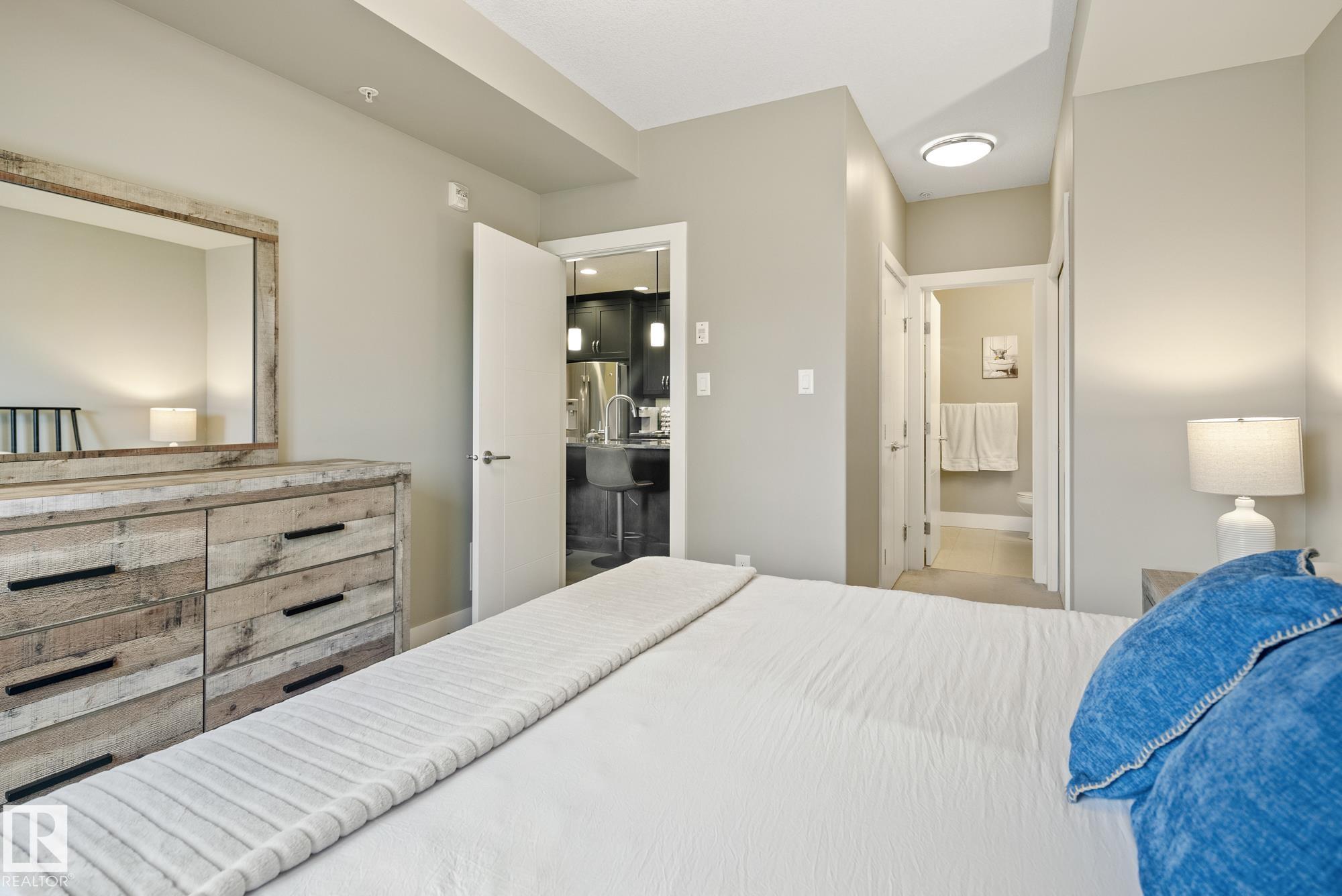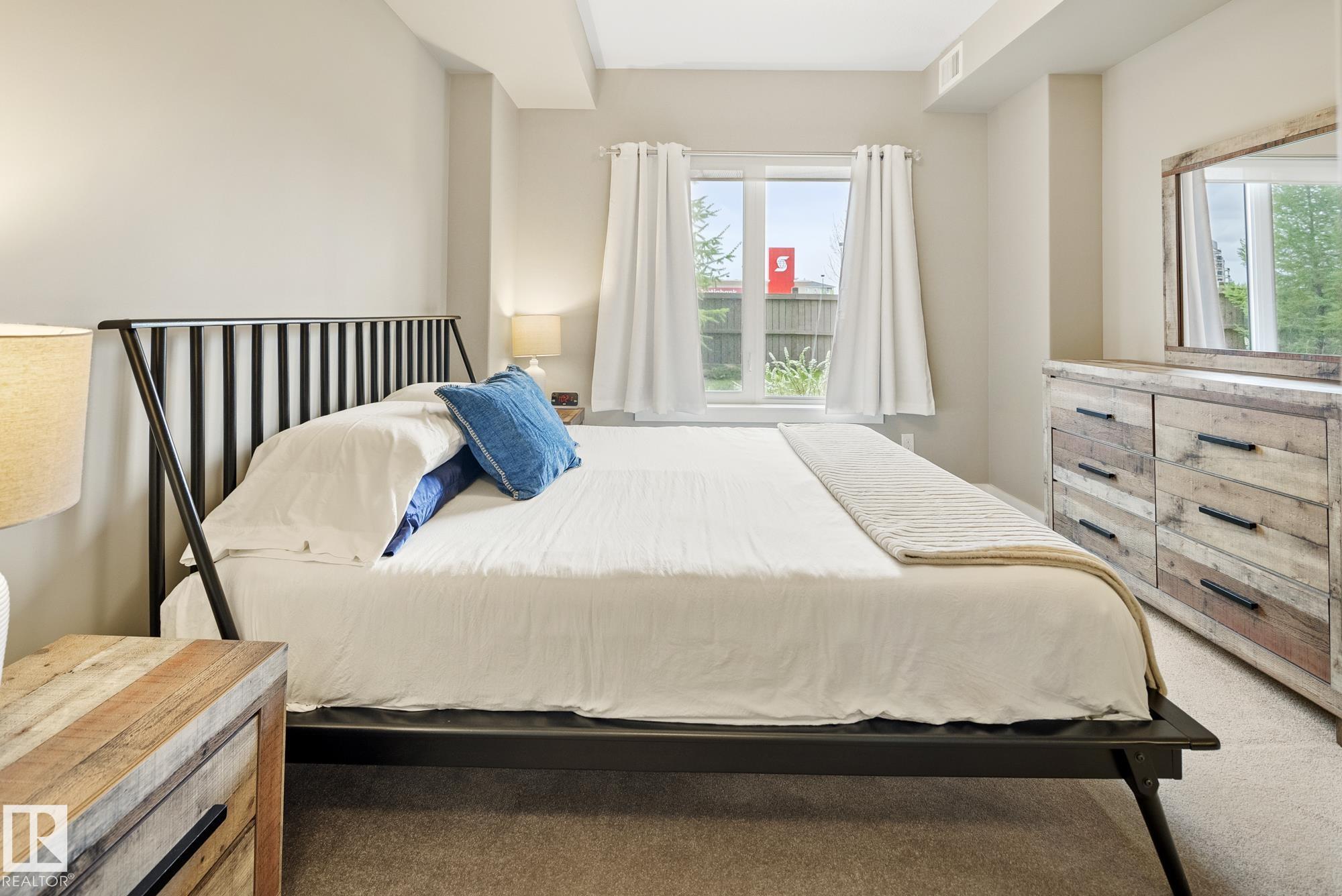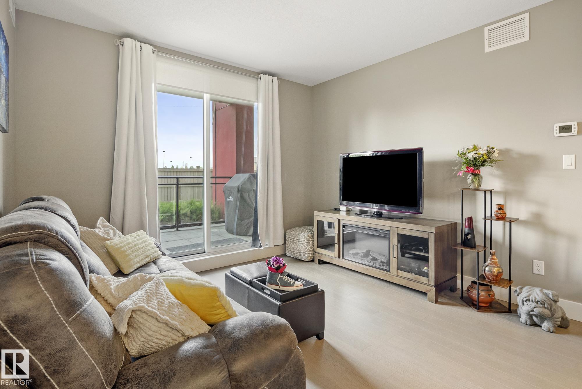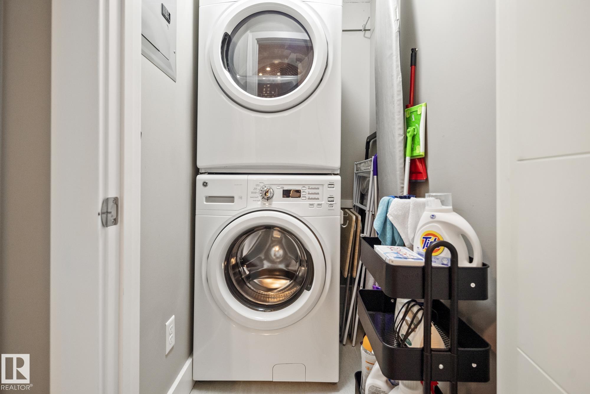 Trendy PLUS convenient location in Ellerslie. West-facing 2 bed, 2 bath condo offering just under 900 sq ft of bright, open living space in a quiet, CONCRETE AND STEEL building. Enjoy afternoon and evening sun with views of beautifully landscaped grounds. The sleek kitchen features built in desk area, brand-new WiFi-enabled stove and dishwasher, granite countertops, gleaming laminate flooring and a spacious layout perfect for entertaining. Insuite laundry. This unit includes two titled underground, heated parking stalls and access to fantastic amenities including a social room, 2 rooftop patios, fully equipped gym, guest suite, and ample visitor parking. No more hot summer nights with central A/C. Located steps from shopping, local restaurants, and all daily conveniences. Easy access to Hwy 2 and the airport makes commuting a breeze. Pride of ownership is evident in this pristine home?ideal for professionals, empty nesters or first time home buyer. You won't be disappointed with the convenience and style!