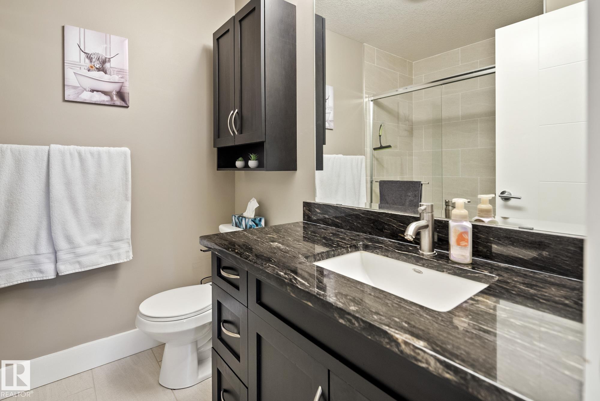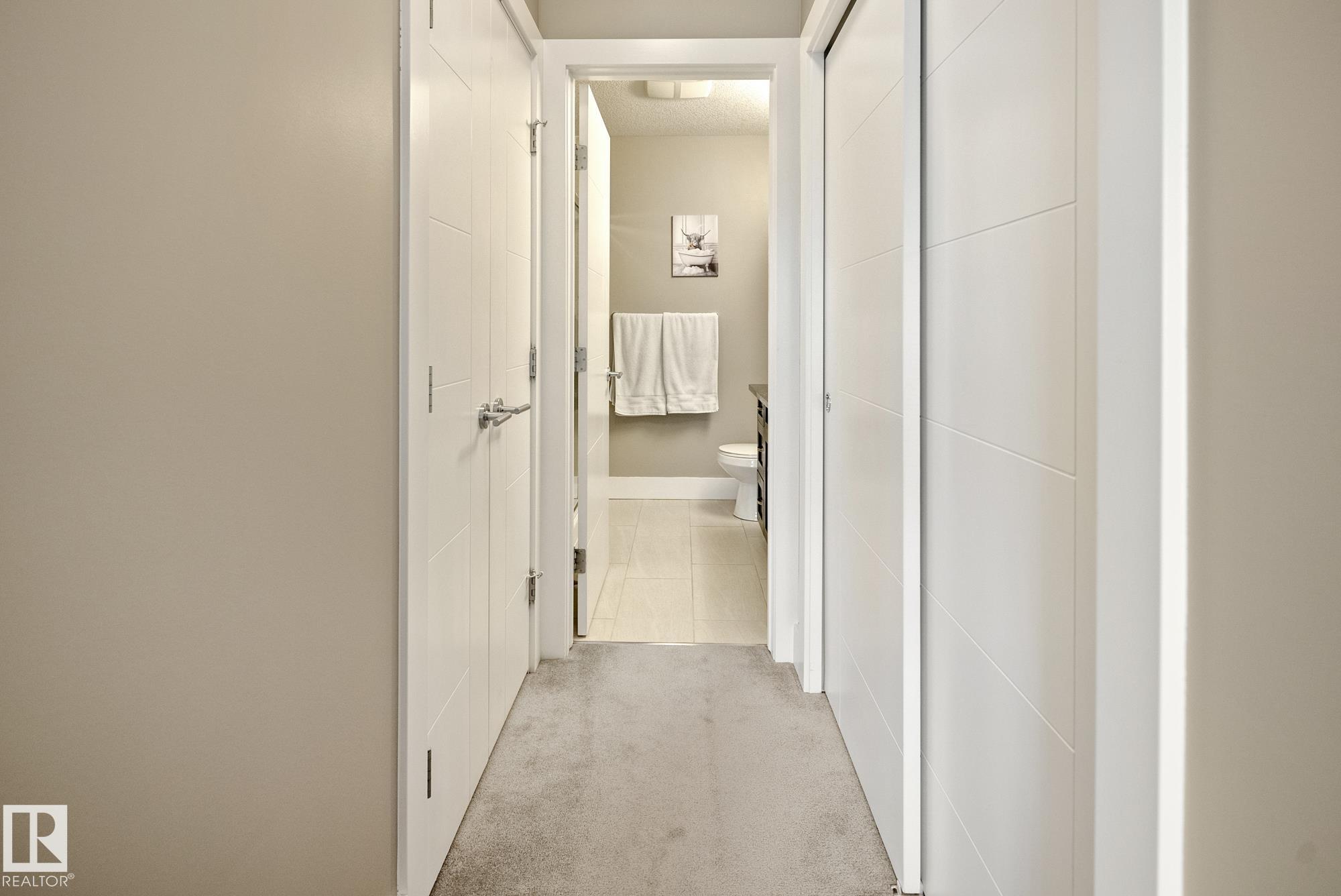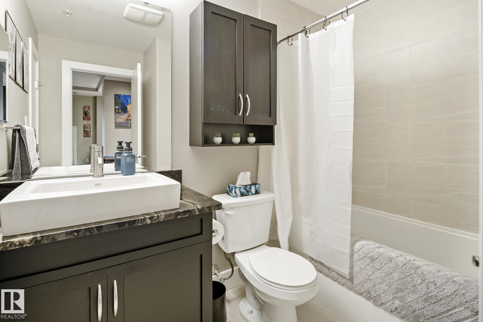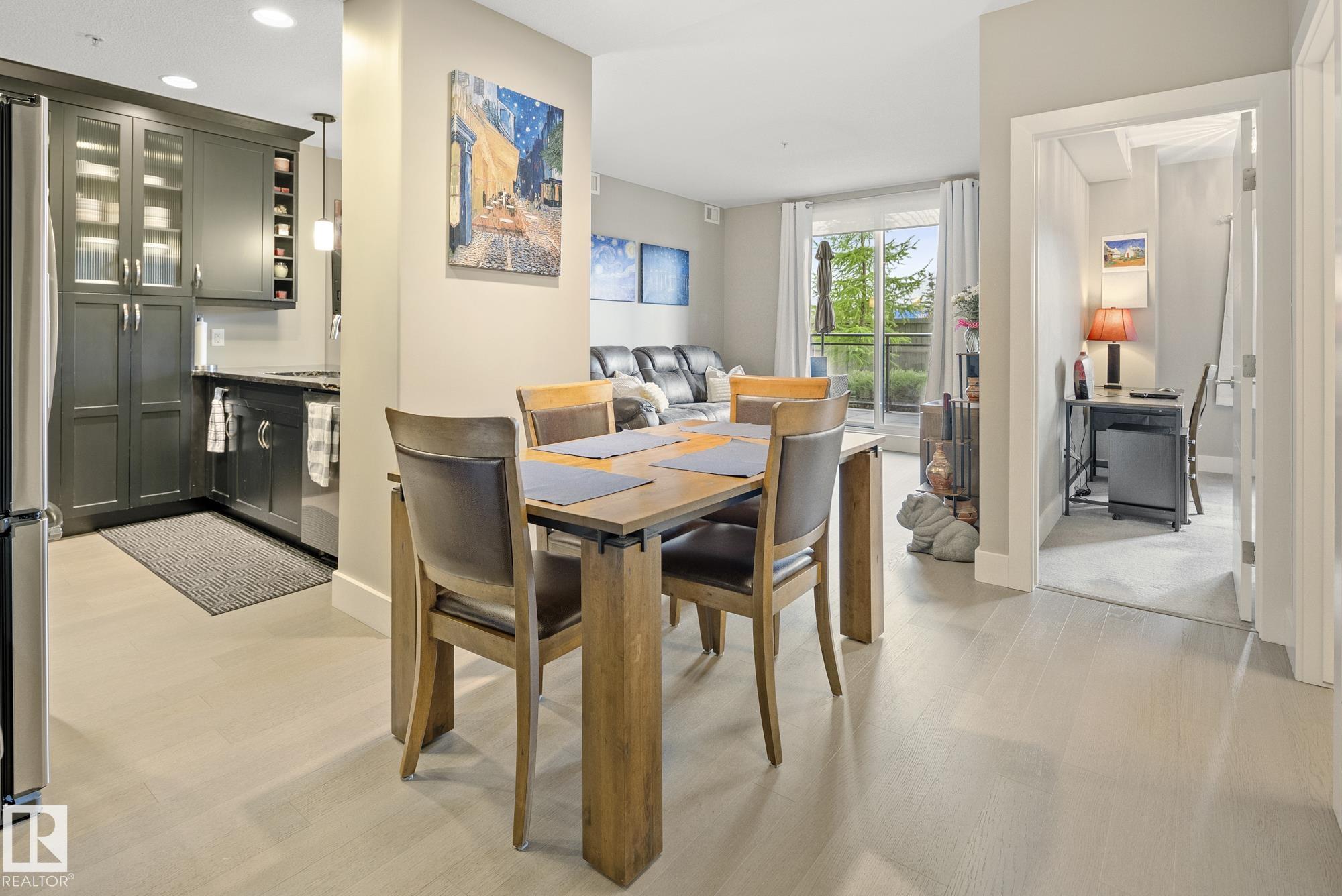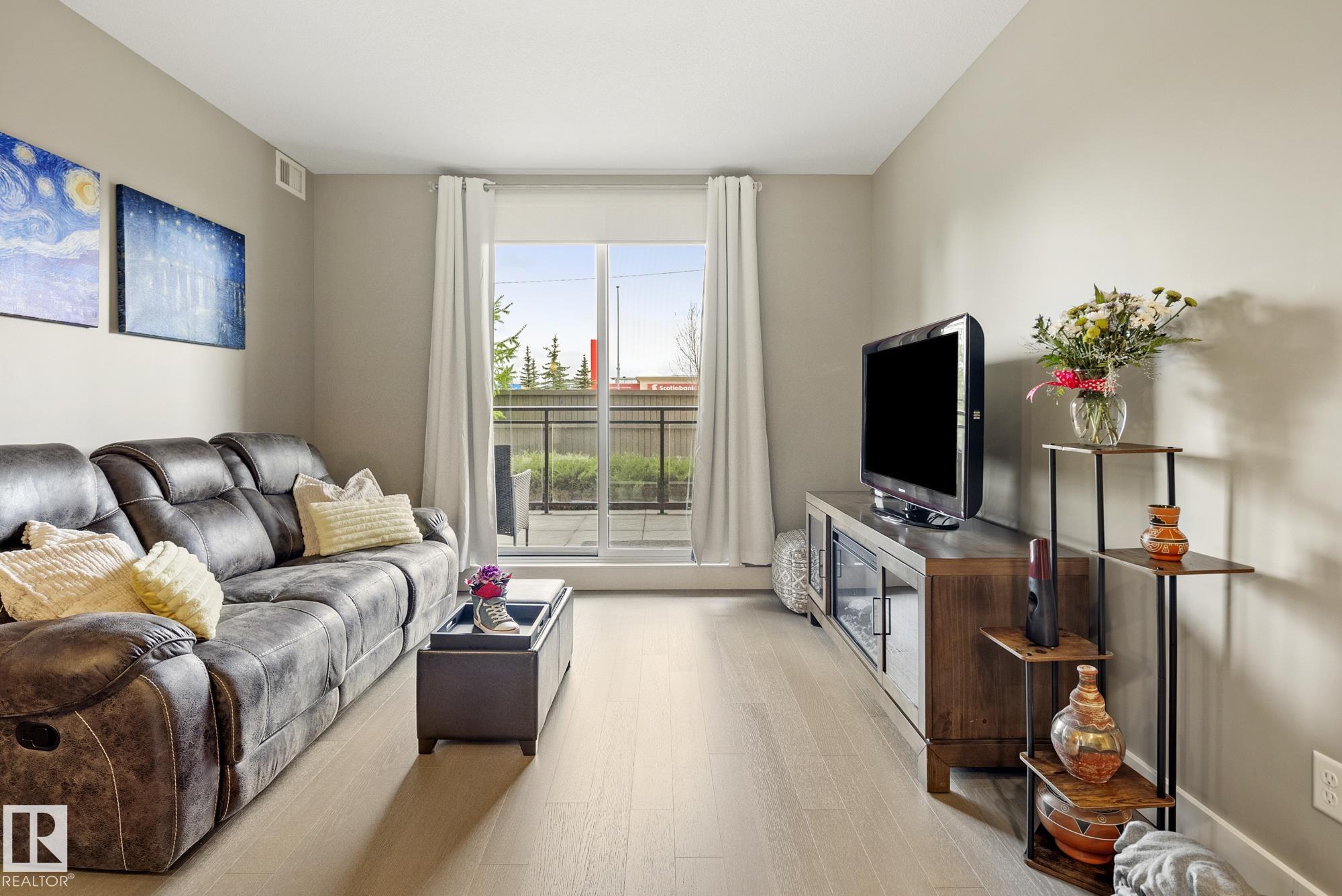Trendy PLUS convenient location in Ellerslie. West-facing 2 bed, 2 bath condo offering just under 900 sq ft of bright, open living space in a quiet, CONCRETE AND STEEL building. Enjoy afternoon and evening sun with views of beautifully landscaped grounds. The sleek kitchen features built in desk area, brand-new WiFi-enabled stove and dishwasher, granite countertops, gleaming laminate flooring and a spacious layout perfect for entertaining. Insuite laundry. This unit includes two titled underground, heated parking stalls and access to fantastic amenities including a social room, 2 rooftop patios, fully equipped gym, guest suite, and ample visitor parking. No more hot summer nights with central A/C. Located steps from shopping, local restaurants, and all daily conveniences. Easy access to Hwy 2 and the airport makes commuting a breeze. Pride of ownership is evident in this pristine home?ideal for professionals, empty nesters or first time home buyer. You won't be disappointed with the convenience and style!