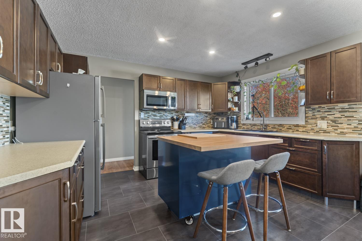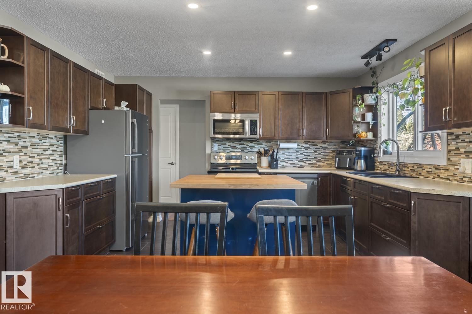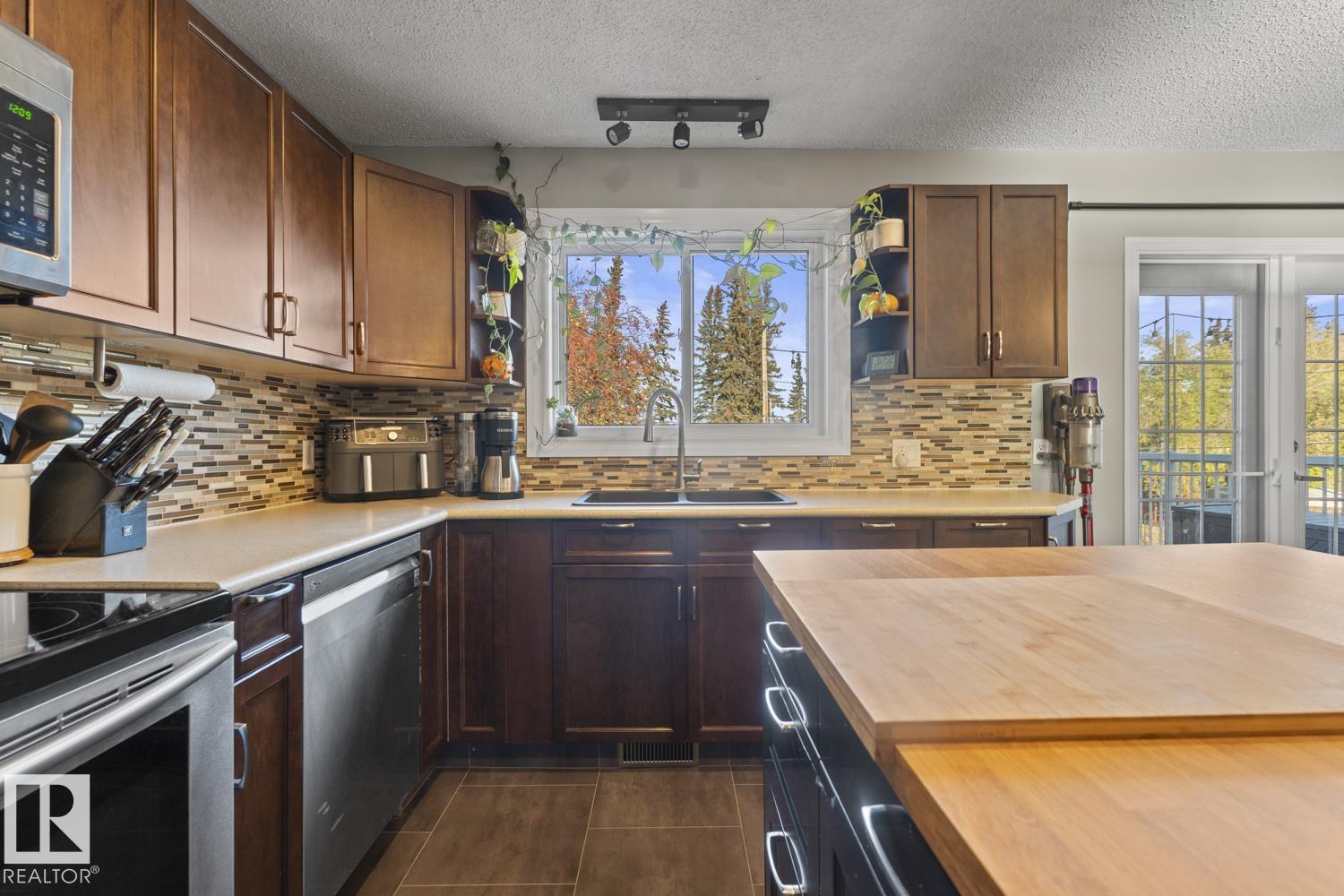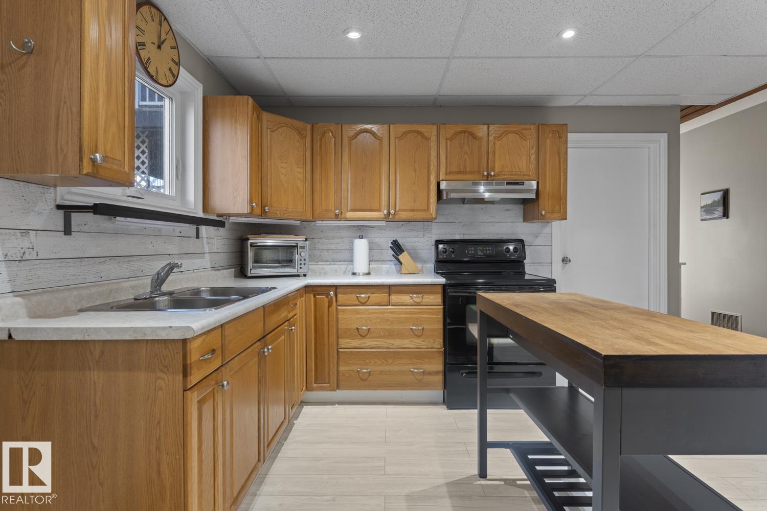 Ideal family home with 3 bedrooms on the main level PLUS BASEMENT 2ND KITCHEN with SEPERATE ENTRANCE, FULL BATH & 2ND LAUNDRY, 4th + 5th BEDROOMS AND LIVINGSPACE! Located near Kinosoo Beach on a large park like lot, with sooo much to offer and modern updates that will be appreciated. Large front sunken front livingroom with stone faced gas fireplace, spacious dining area with garden doors to back deck (with glass railings and LAKE VIEWS)! Modern feel kitchen with updated cabinetry, backsplash, flooring and much more! Stackable washer & dryer just off kitchen. Renovated 5pc main bathroom down the hall with 3 bedrooms. Primary bedroom with renovated 2pc ensuite. Basement family room is massive and includes a cozy gas stove. 4th and 5th good sized bedrooms, full bathroom with 2nd laundry PLUS A 2ND KITCHEN AND SEPERATE BASEMENT ENTRANCE! Fenced backyard, shed & separate parking area off the alley! Concrete front driveway, gas heater in garage 2022, triple pane windows 2023, furnace 2021 +++ WELCOME HOME!
