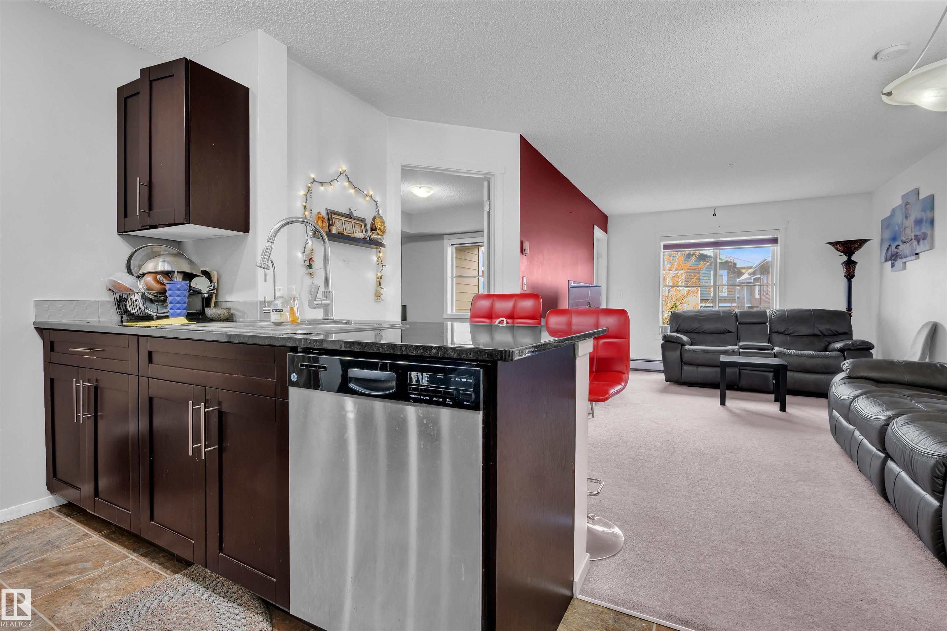 This beautifully maintained 829.58 sq.ft second-floor 2 beds plus den and 2 bath condo offers a bright open layout with a modern kitchen featuring granite countertops, stainless steel appliances, and plenty of storage. The primary bedroom includes a walk-in area and a 4-piece ensuite, while the second bedroom sits next to another full bath. Enjoy in-suite laundry, a large private balcony, and heated underground parking for year-round comfort. Located in a rapidly growing neighbourhood with quick access to Anthony Henday, 50 Street, Ellerslie, and K?9 schools. Perfect for first-time buyers, downsizers, or investors. Seller willing to include all furniture ? move-in ready!