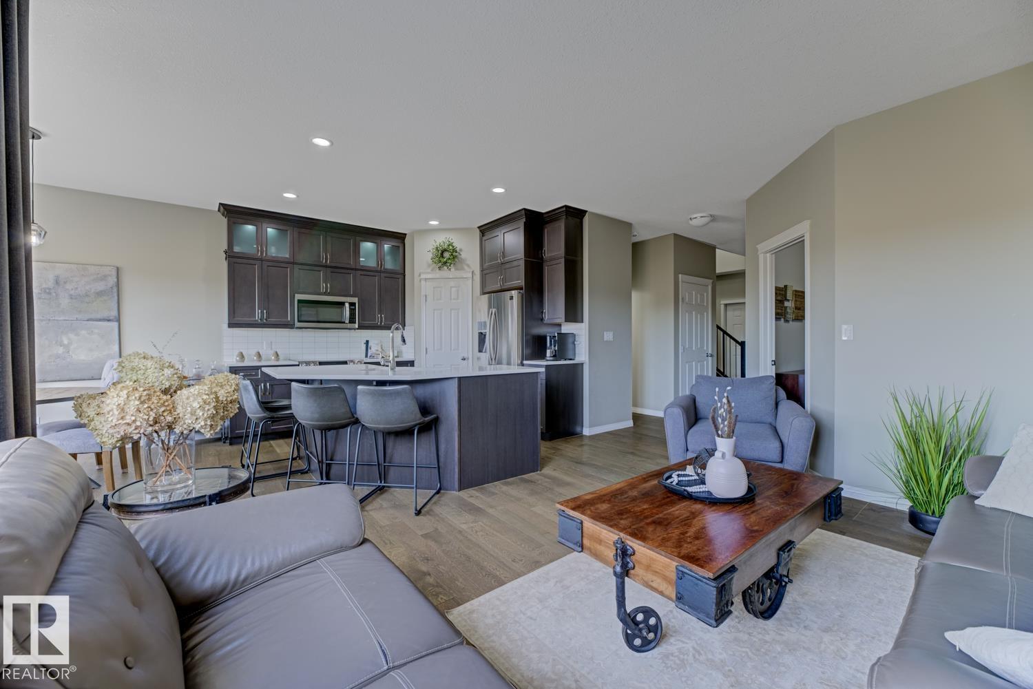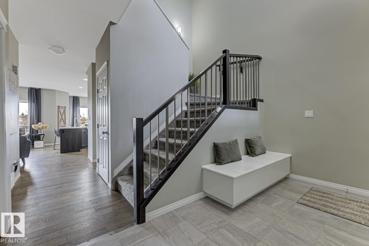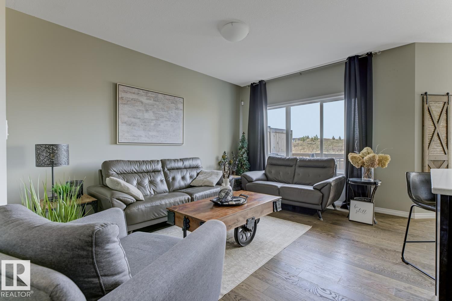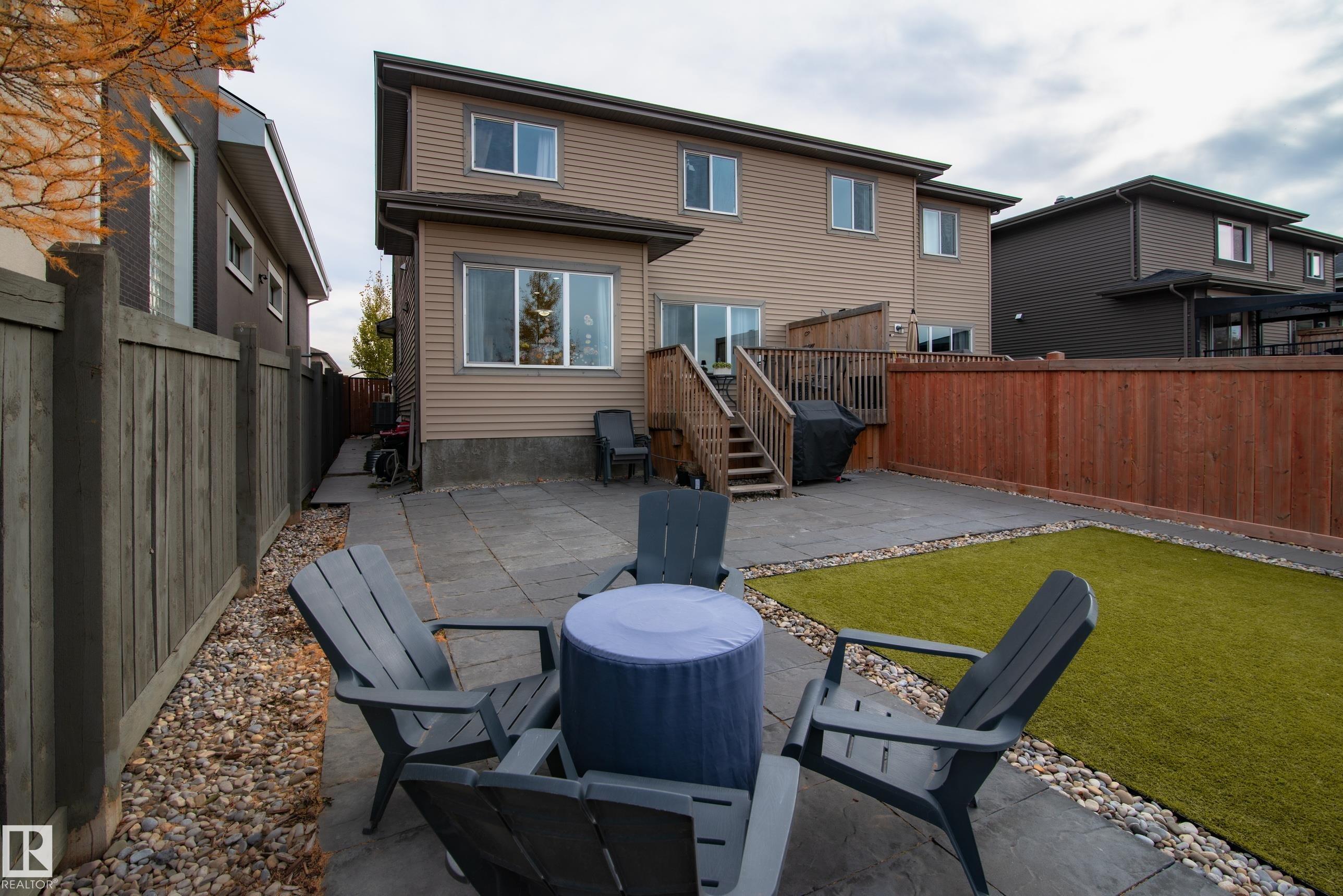 This perfectly maintained Montorio-built home in Trumpeter is the complete package?over 1800 sq ft of stylish living, a beautifully finished basement, and an incredible TRIPLE TANDEM GARAGE! Nestled on a quiet cul-de-sac , BACKING ONTO SCENIC GREENSPACE, it offers sweeping year-round views and a peaceful connection to nature. Inside, enjoy 9-ft ceilings, quartz counters, a corner pantry, under-cabinet lighting, and a welcoming vaulted front entry with built-in bench. Upstairs features a cozy bonus room with a freestanding electric fireplace, laundry, and a gorgeous primary suite with windowed walk-in closet and 5-pc ensuite. The basement is bright and beautifully finished with a family room, 3-pc bath, roughed-in wet bar, and plenty of storage. The sunny southwest yard with low-maintenance artificial turf is perfect for relaxing or entertaining. With A/C, triple garage, and easy Henday access, this home blends comfort, pride of ownership, and unbeatable style!