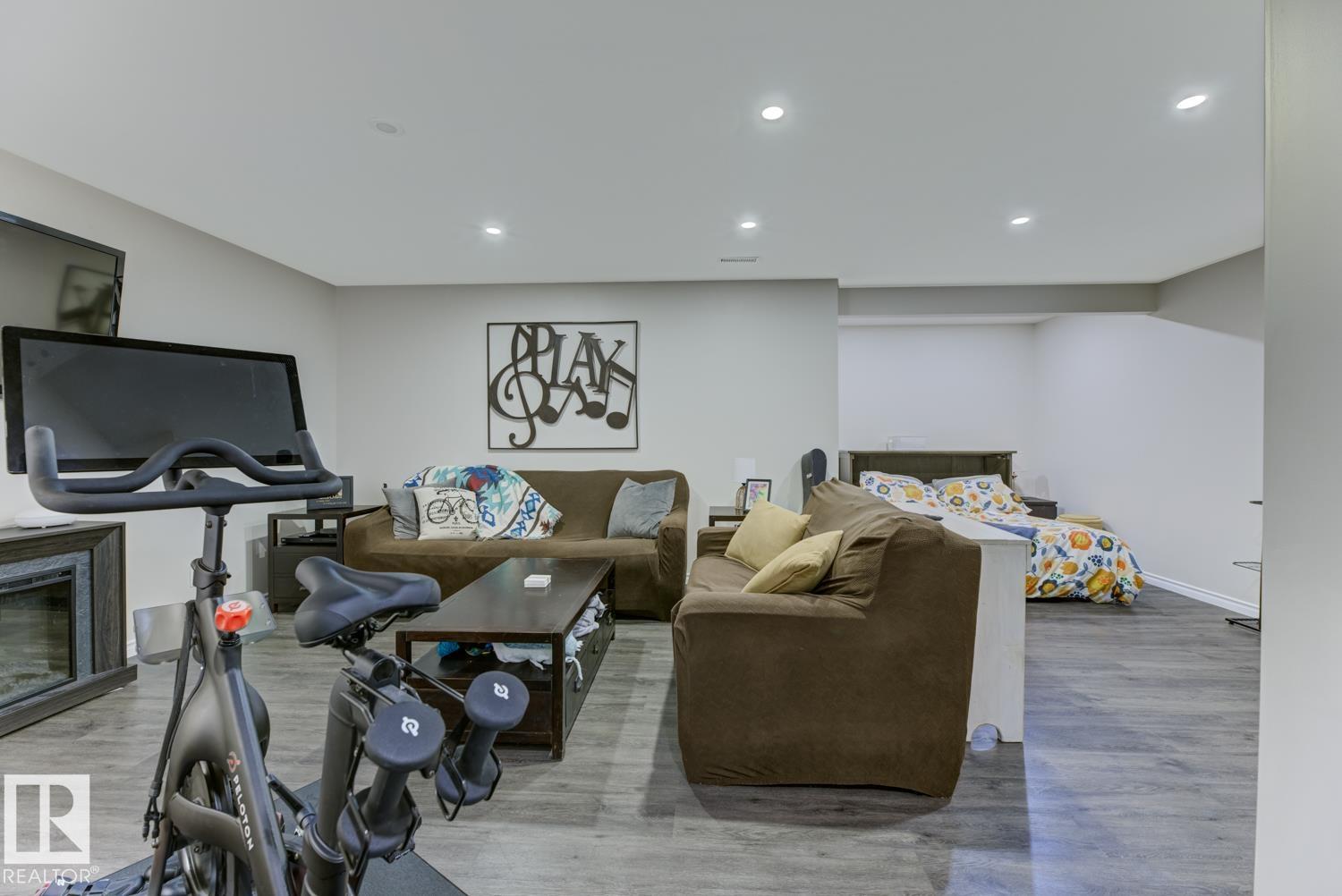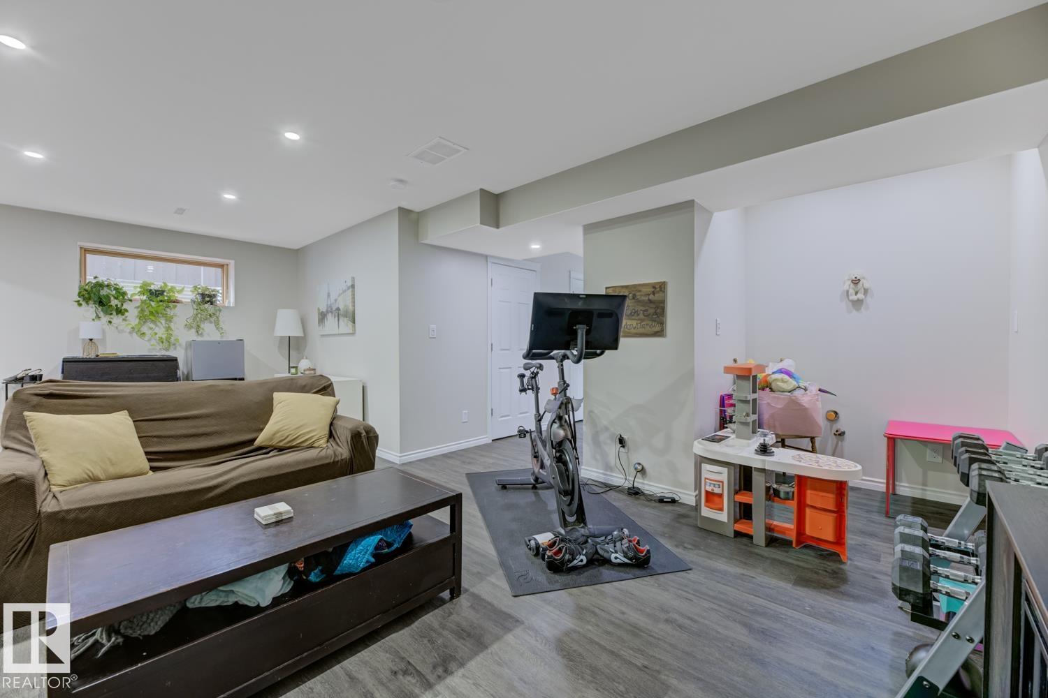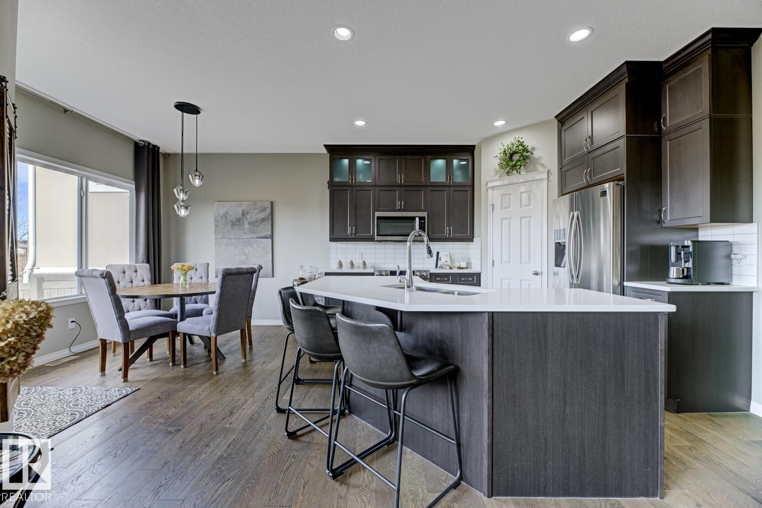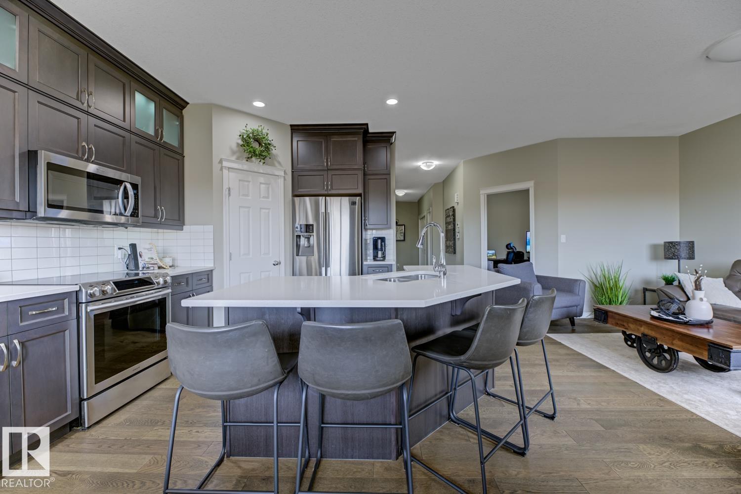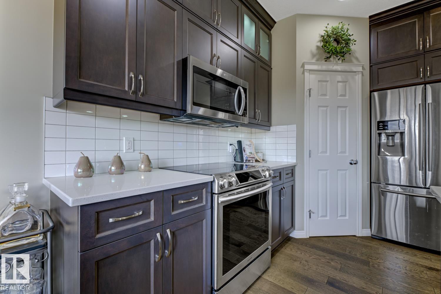 This perfectly maintained Montorio-built home in Trumpeter is the complete package?over 1800 sq ft of stylish living, a beautifully finished basement, and an incredible TRIPLE TANDEM GARAGE! Nestled on a quiet cul-de-sac , BACKING ONTO SCENIC GREENSPACE, it offers sweeping year-round views and a peaceful connection to nature. Inside, enjoy 9-ft ceilings, quartz counters, a corner pantry, under-cabinet lighting, and a welcoming vaulted front entry with built-in bench. Upstairs features a cozy bonus room with a freestanding electric fireplace, laundry, and a gorgeous primary suite with windowed walk-in closet and 5-pc ensuite. The basement is bright and beautifully finished with a family room, 3-pc bath, roughed-in wet bar, and plenty of storage. The sunny southwest yard with low-maintenance artificial turf is perfect for relaxing or entertaining. With A/C, triple garage, and easy Henday access, this home blends comfort, pride of ownership, and unbeatable style!