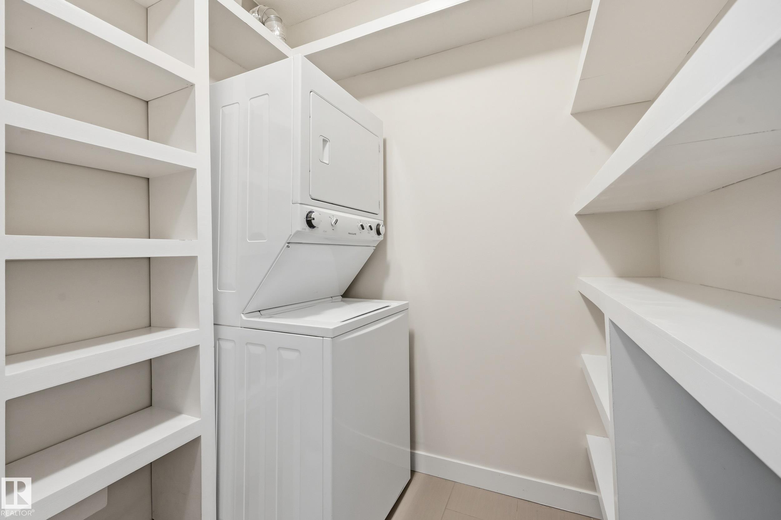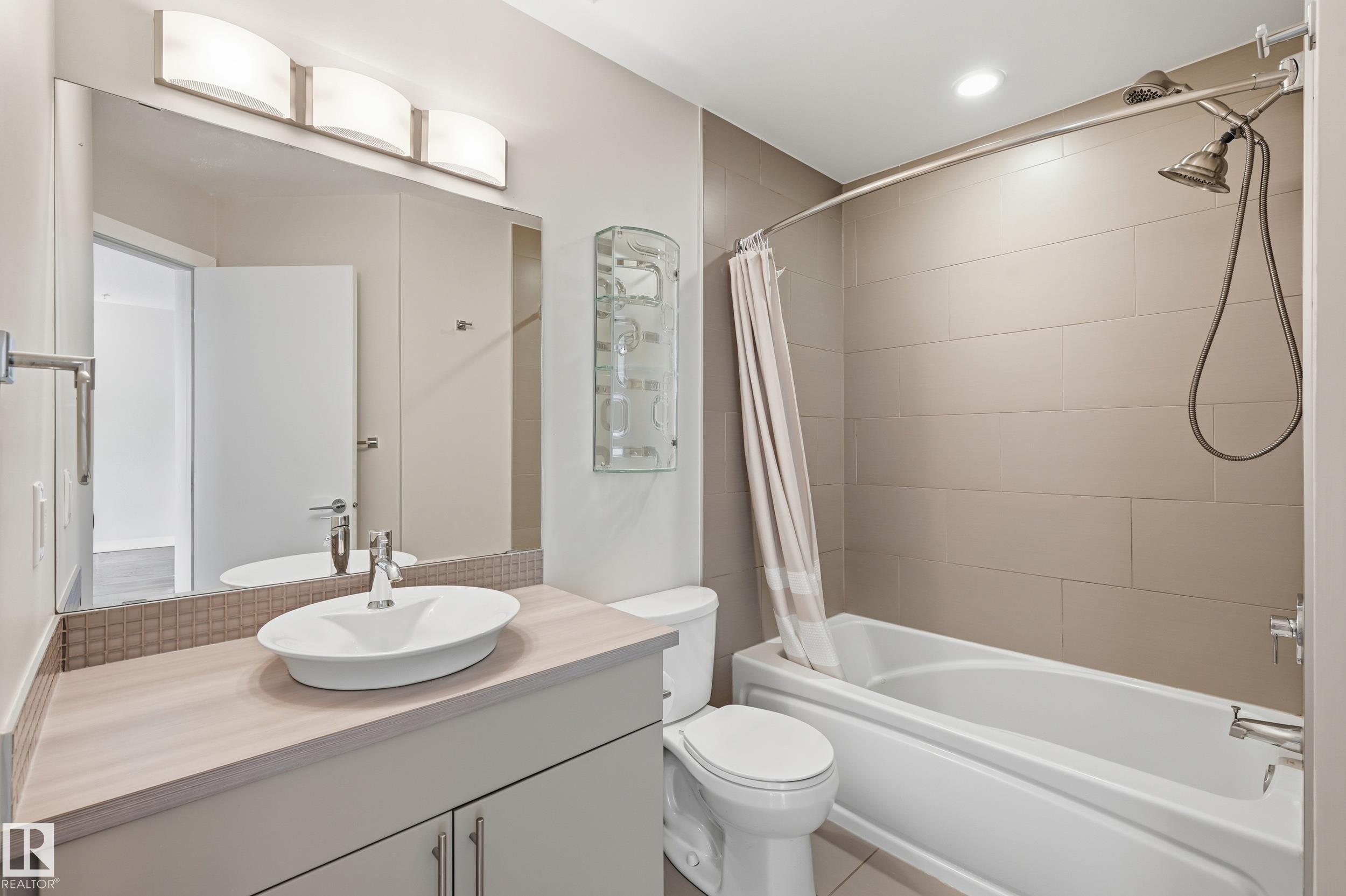 Experience urban living at its finest in Studio Ed. This gorgeous 2-bedroom, 3rd-floor condo offers modern comfort just minutes from 104th Avenue, the Brewery District, and the Ice District. Featuring underground parking and a west-facing balcony, this bright and stylish home boasts an open-concept floor plan with a beautifully upgraded kitchen complete with an eat-up peninsula island, glass tile backsplash, stainless steel appliances, and sleek contemporary cabinetry. The spacious living and dining area easily accommodates both lounge and dining furniture, with patio doors leading to a private balcony perfect for barbecuing or relaxing while enjoying evening sunsets. The Master bedroom includes a thoughtfully designed walk-through closet and a modern ensuite with double shower. Even the laundry room has been upgraded with custom cabinetry and shelving for added convenience. Move-in ready and located in one of Edmonton?s most desirable urban neighborhoods.