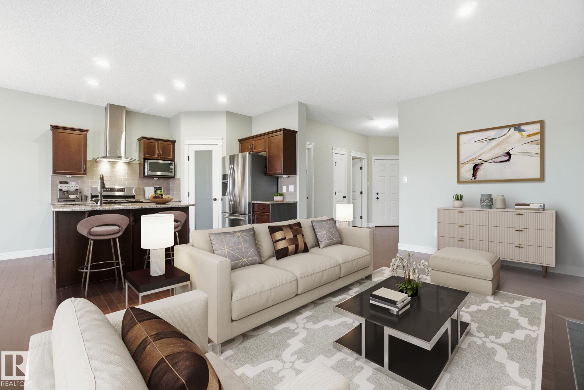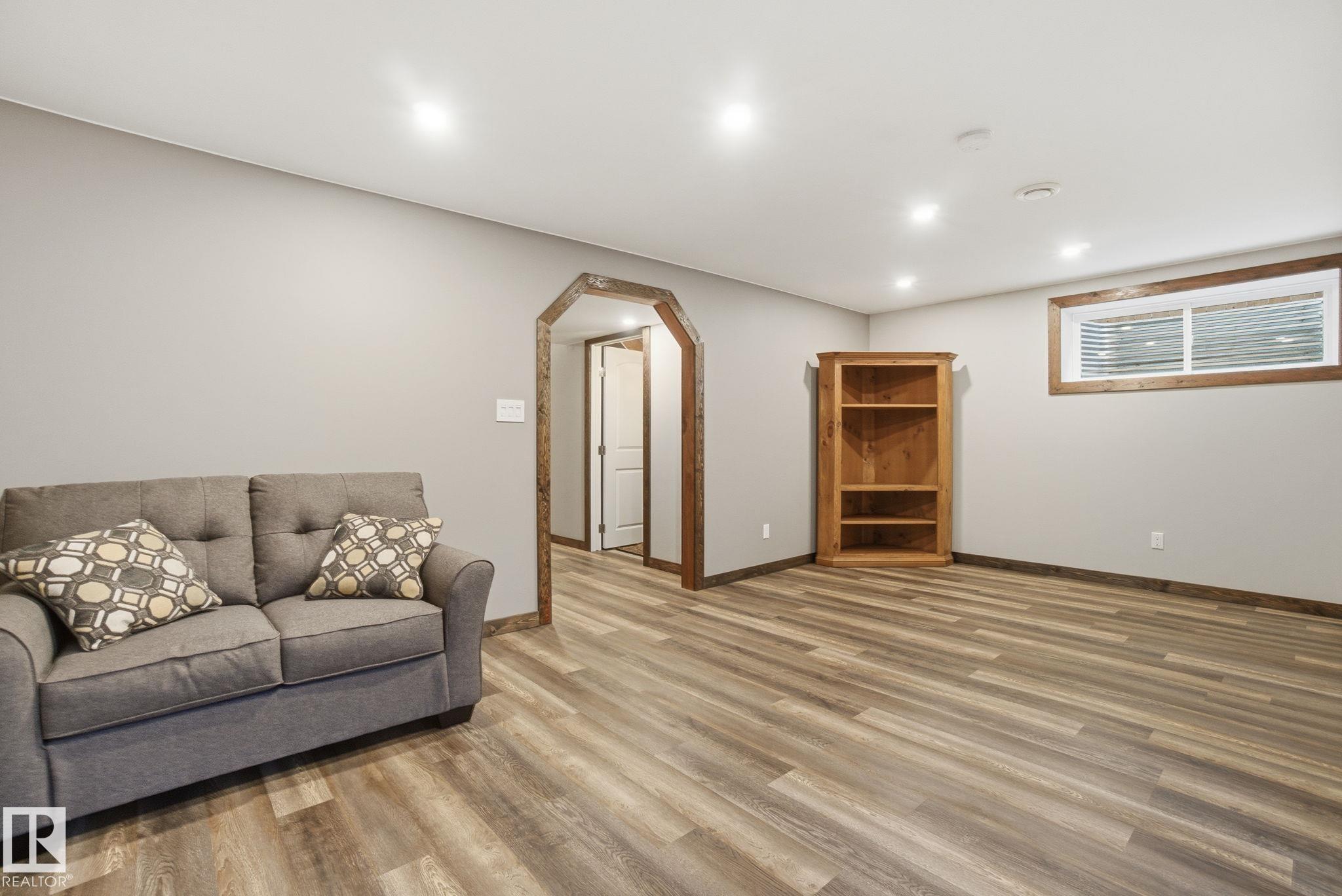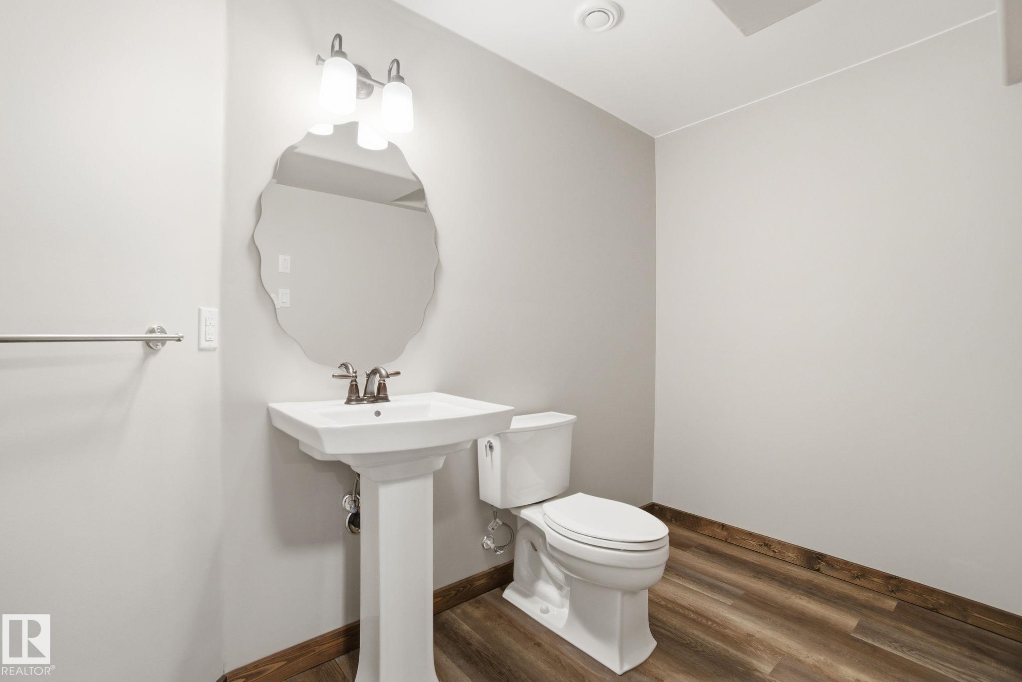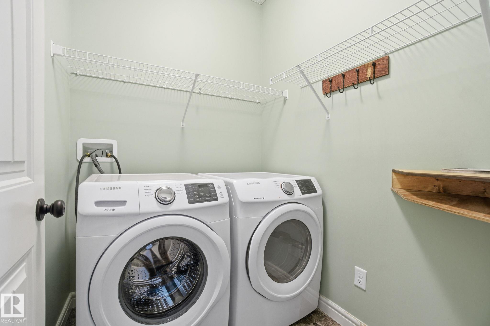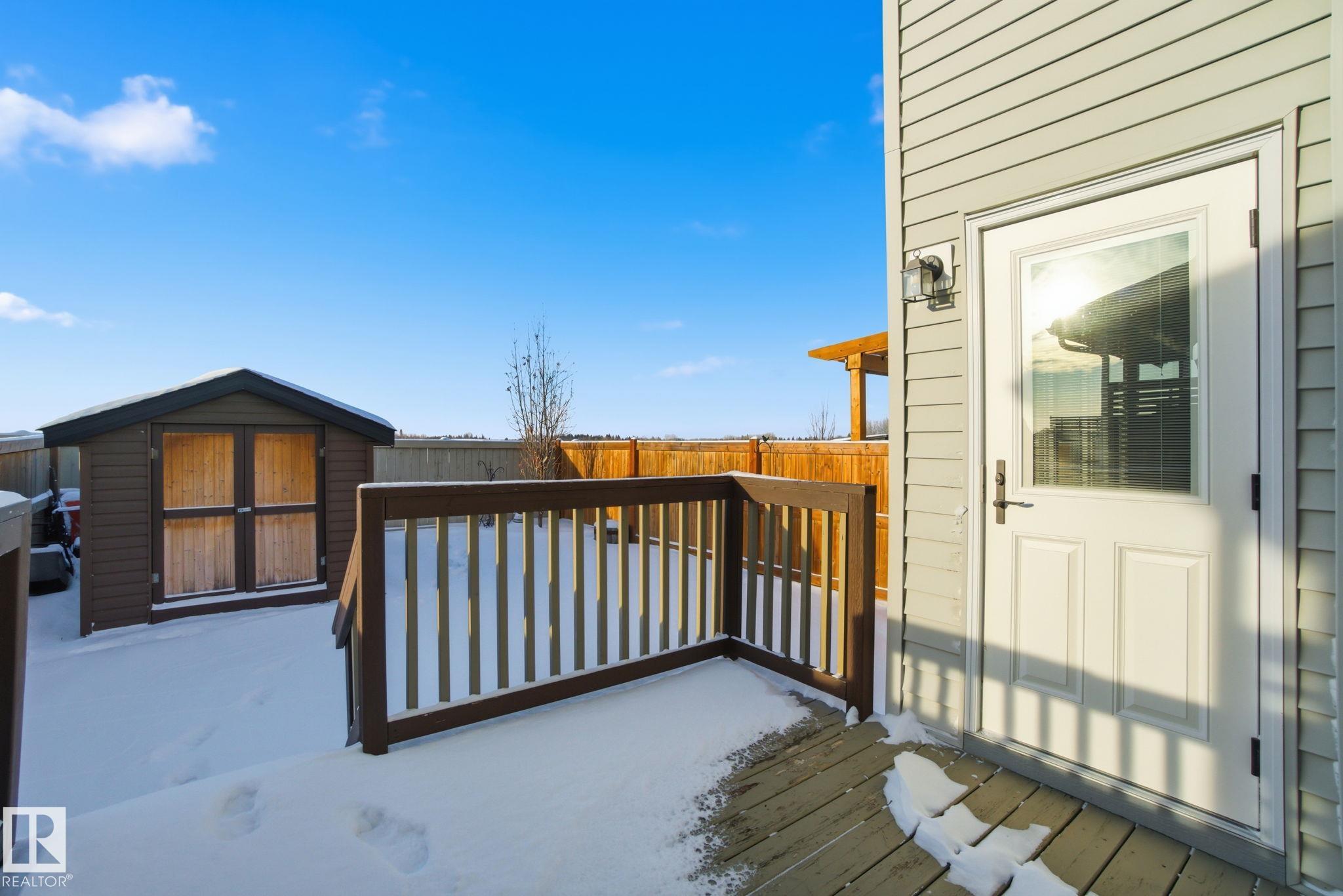 Feel at home the moment you walk in the door of this fully finished 2 storey in Stony Plain's Southcreek subdivision. NO REAR NEIGHBOURS! Large open floorplan with big living room with tons of natural light. Kitchen has a corner pantry and a nice island for people to congregate around. Dining area is perfect for hosting family and friends. MAIN FLOOR LAUNDRY! Head upstairs and you'll find a great bonus room; ideal for watching a movie! Large master suite with vaulted ceilings, a large walk in closet and 4pc ensuite. 2 more bedrooms are great for kids, guests or a home office. Basement is fully developed with a large rec room and another bathroom. Central A/C. Double attached garage keeps the snow off the vehicles! West facing backyard is fully landscaped and even has extra storage with a shed. Farm field behind gives you plenty of views. Quiet cul-de-sac with great neighbours!