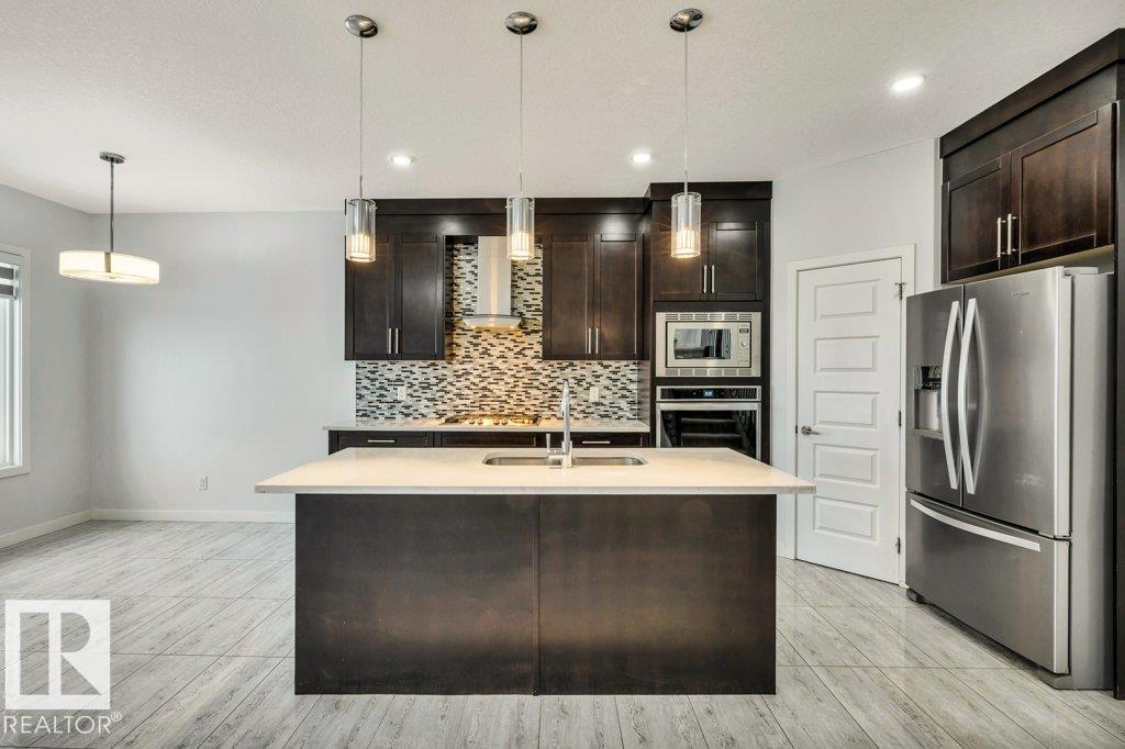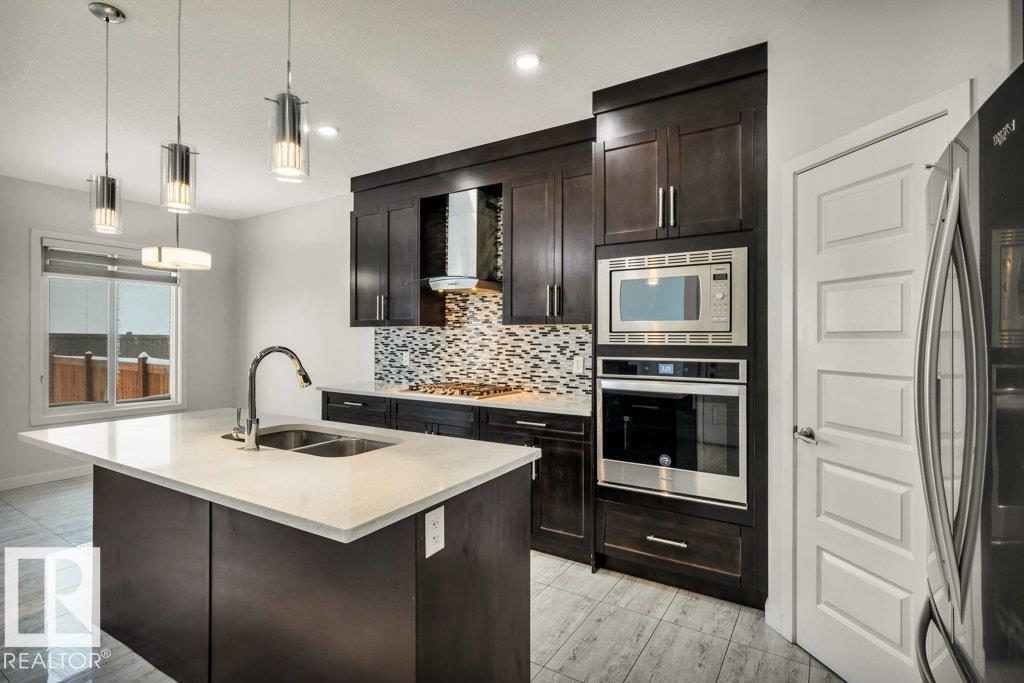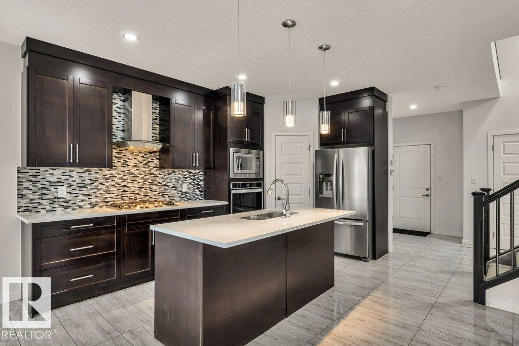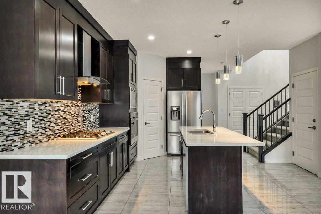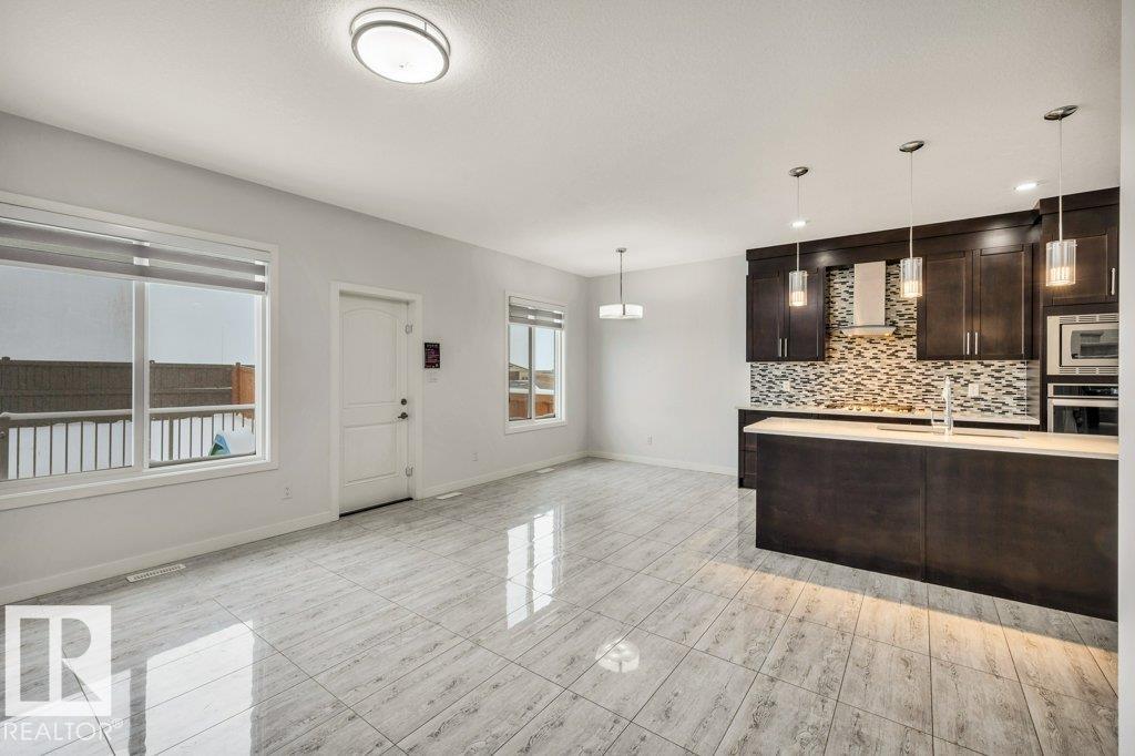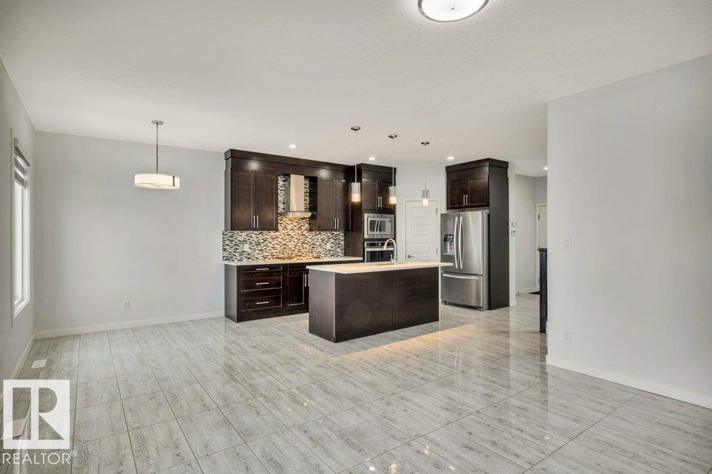 Welcome to Laurel! This beautiful half duplex offers over 2,348 sq. ft. of fully finished living space with 5 bedrooms and 3.5 bathrooms, making it ideal for families, first-time buyers, or investors. The main floor features a bright open-concept layout with a modern living room, electric fireplace, and access to the deck and fully fenced backyard. The chef?s kitchen is designed to impress with quartz countertops, elegant cabinetry, prep island, extended eating bar, ceramic tile backsplash, pantry, and a spacious breakfast nook. Upstairs you?ll find a large bonus room, a comfortable primary bedroom with walk-in closet and luxurious ensuite, plus two generously sized bedrooms sharing a full bathroom. The separate entrance leads to the legal basement suite complete with 2 bedrooms, full bath, second kitchen, and separate laundry. Close to schools, shopping, and all amenities?this turn-key property is a solid investment!