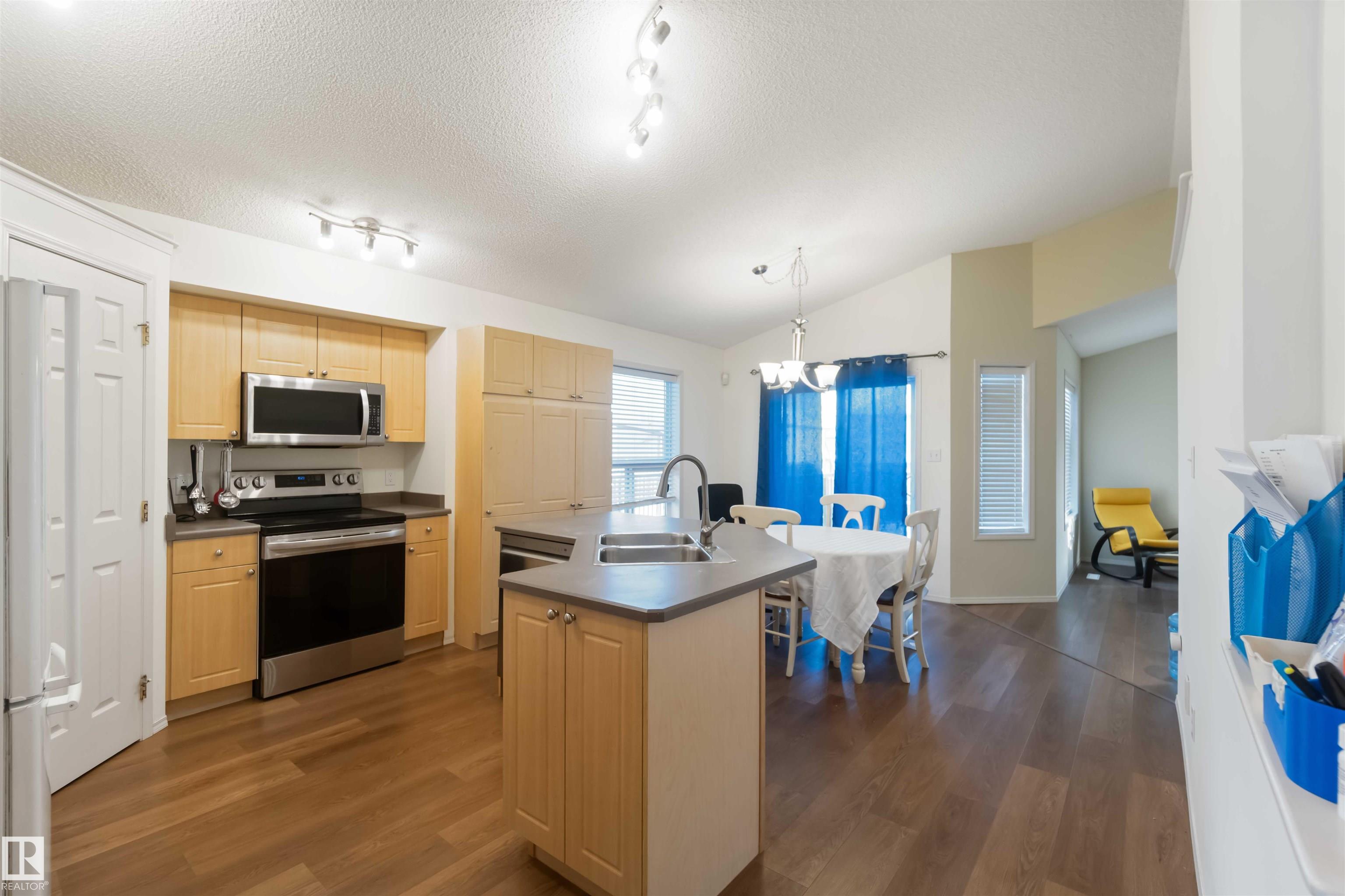 This well maintained, turn-key, bi-level checks all the boxes. The main level features vaulted ceilings thru-out offering an open, bright and spacious layout. The kitchen contains a corner pantry, plenty of cabinet space and an island with a breakfast bar. The living room and dining area have plenty of windows, offering tons of natural light. Two large bedrooms and a 4 pc. main bath complete this level. Upstairs, you'll find the private primary suite complete with a huge walk in closet, and 4 pc. ensuite. Downstairs there's a massive family room with a corner gas fireplace. The area off the family room could easily be converted to a 4th bedroom. There's a 4 pc. bath in the basement and plenty of storage space. All the major upgrades have been done, including; new furnace, A/C and HWT (2025), New vinyl plank floors in the living room, kitchen, hall, entry and on the entry stairs (2024), shingles (2022), and a brand new deck with teleposts (2018). Close to plenty of greenspace incl. the off-leash dog park.
