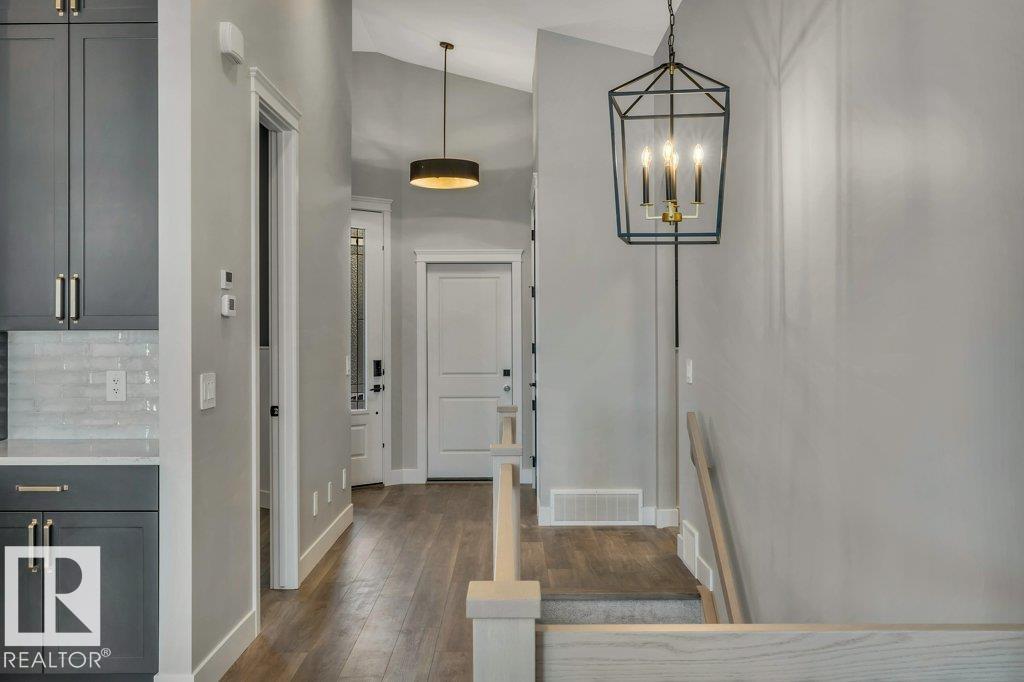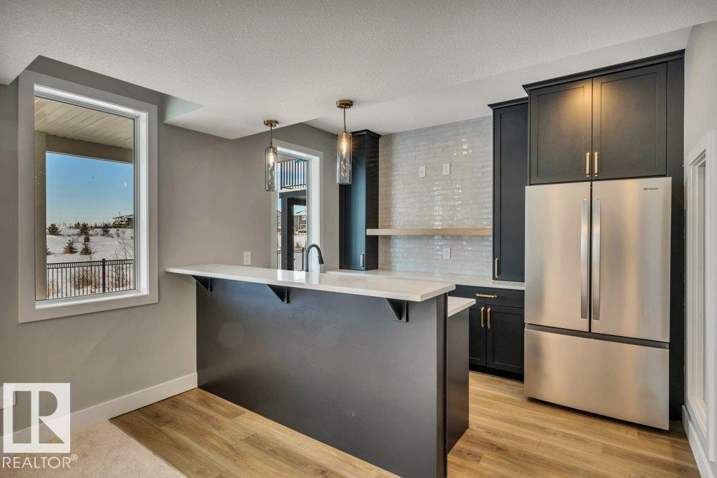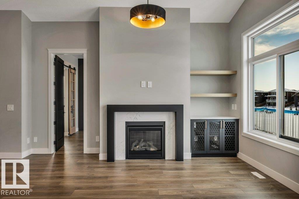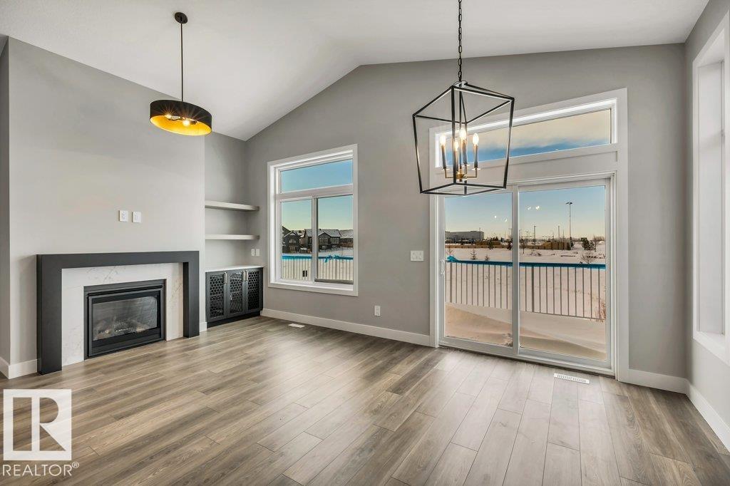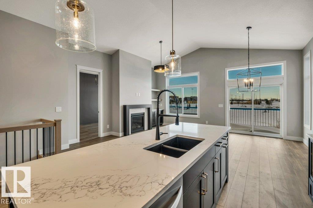 Luxury awaits in this walkout bungalow by Homexx Corporation, featuring the sought-after Peridot floor plan. A striking entry and breathtaking vaulted ceilings set the tone for this open-concept design, ideal for entertaining. The chef-inspired kitchen overlooks the living area with a cozy gas fireplace. The primary suite offers a spacious walk-through closet and a five-piece ensuite with separate tub and shower. A second main-floor bedroom?perfect as a home office?along with a full bathroom and convenient laundry room complete the upper level. The staircase leads to a bright lower level featuring a large family room, stunning wet bar with wine room, two additional bedrooms, a four-piece bathroom, and ample storage. Finished with quartz countertops, custom cabinetry, beautiful lighting, 200 amp service, a charming front porch, and great curb appeal. Enjoy outdoor living on the large west-facing deck overlooking a serene pond.