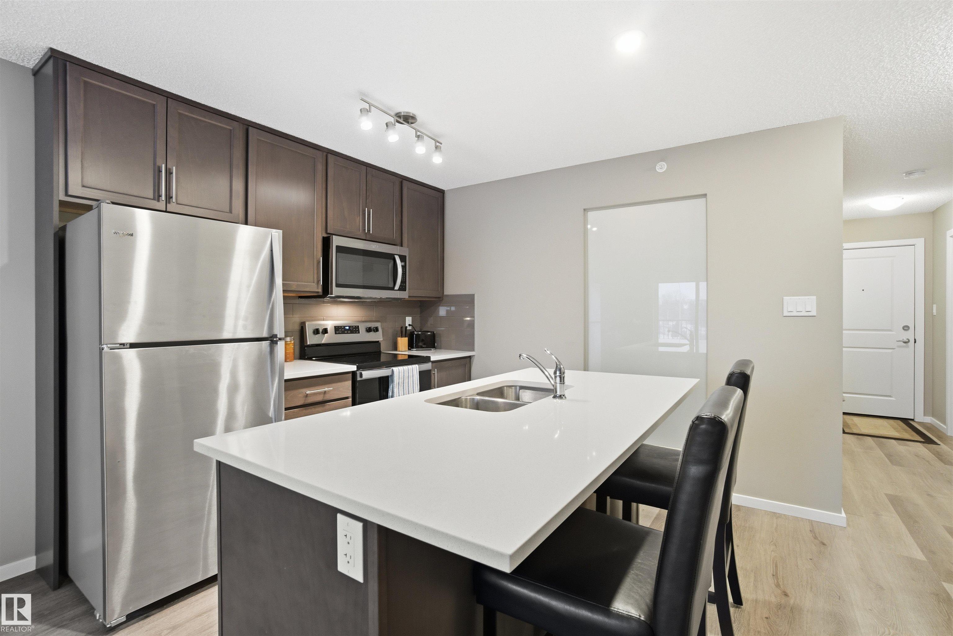 Welcome to this bright and well-maintained top-floor condo located in the desirable Ebbers community. This unit features 2 spacious bedrooms, 2 full washrooms, and a private balcony, offering comfort and privacy with no neighbors above. The open-concept layout includes a modern kitchen and a sun-filled living area, while the primary bedroom comes with its own ensuite washroom and the second bedroom is perfect for family, guests, or a home office. Conveniently located within walking distance to a park, playground, and bus stop, and close to all major amenities including shopping, schools, and easy access to main roadways, this condo is ideal for first-time buyers, professionals, or investors seeking a great location and low-maintenance living.