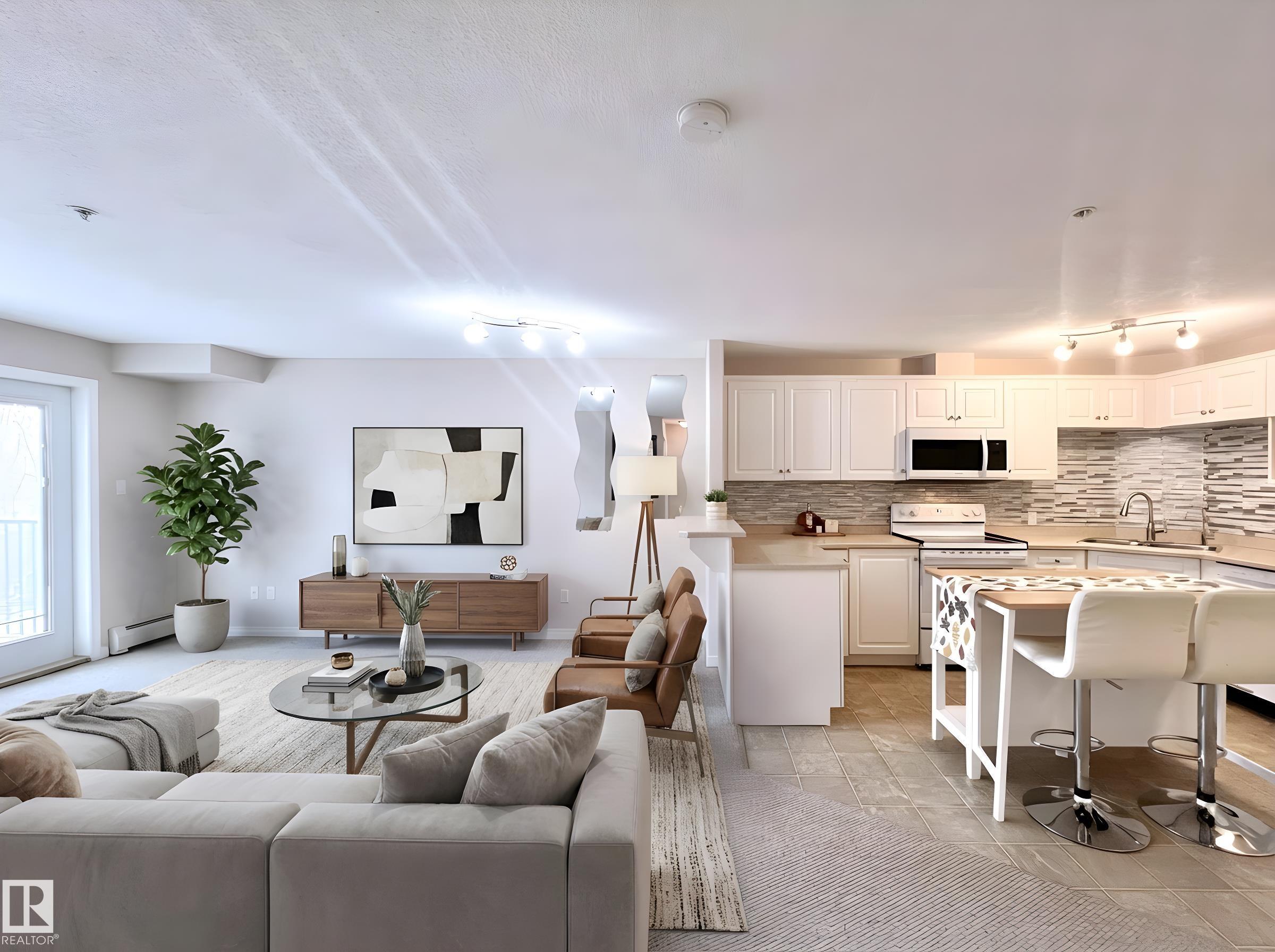 Welcome to Park Place Ellerslie Court in Ellerslie. This bright and comfortable 1-bdrm condominium is quietly situated within the complex. The unit features a modern open-concept layout that feels spacious and airy. Upon entry, you are welcomed by a well-proportioned kitchen seamlessly connected to the living area. The living room is equipped with air conditioning, providing comfort during the summer, while the large window facing the balcony fills the space with abundant natural light. The bdrm and a full 4pc bath are located to the left of the living area, offering a comfortable and functional layout. Additional highlights include in-suite laundry and a convenient parking stall near the building?s side entrance. Previously owner-occupied, the unit has been very well maintained. Close to public transit, shoppings and parks, with quick access to highways. Combined with low condo fees, this property is an excellent opportunity for both owner-occupiers and investors. Some photos are virtually staged.