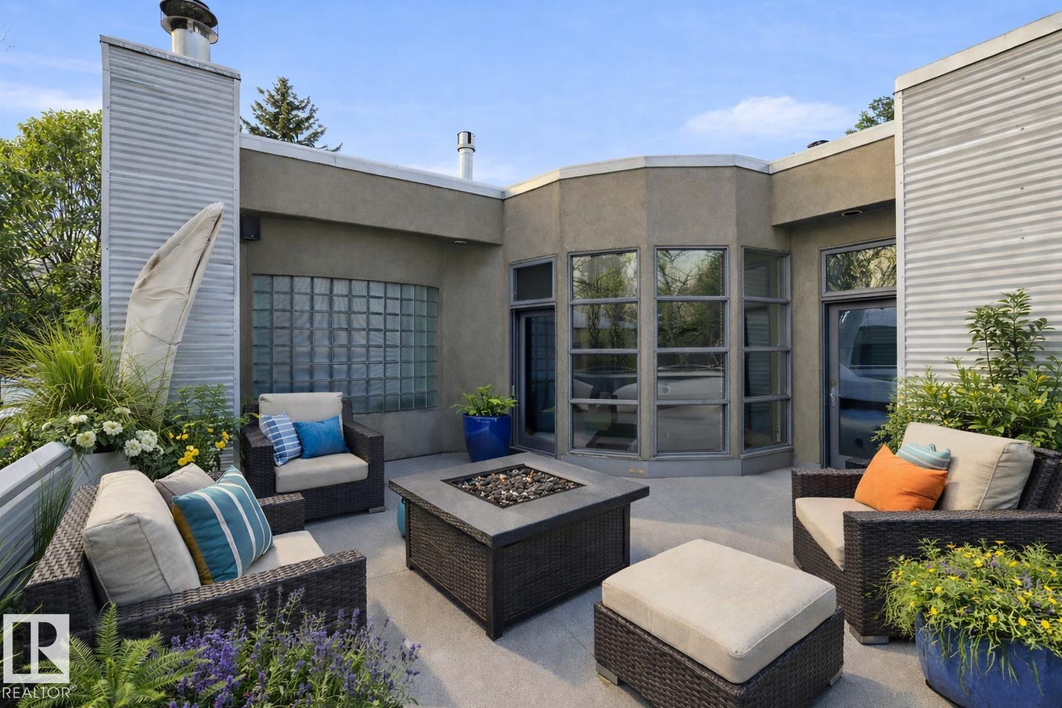Modern, Architecturally designed two-storey home, ideally located within steps to Mill Creek Ravine. This impeccably built residence offers 2 bedrooms and 2.5 baths, with 10' ceilings on the main level and striking concrete and steel accents throughout. Features include triple-glazed windows, in-floor heating, custom cabinetry, central A/C, and luxurious finishes. The main floor showcases an open-concept w. light-filled spaces. The chef?s kitchen has custom cabinetry, granite countertops, a massive island, and top-of-the-line appliances, including a built-in Miele coffee machine. The great room features a f/p and patio doors opening to the yard, complemented by a large dining area and stunning south- and east-facing windows. The upper level is an executive retreat, highlighted by an expansive primary bedroom with custom cabinetry, a fireplace, and a spa-inspired ensuite. Garden doors lead to a private rooftop. Bsmt. w. bedroom, full bathroom. Under-drive dble garage w. heated driveway.